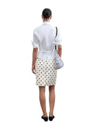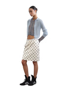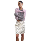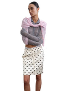 This women's midi skirt features a classic polka dot pattern on a light-toned base, offering a playful yet refined look. Designed with a comfortable drawstring waist, it blends style and ease, making it an ideal choice for casual outings or relaxed social gatherings. Pair it with a semi-sheer blouse or light knitwear for a chic, effortless ensemble.
