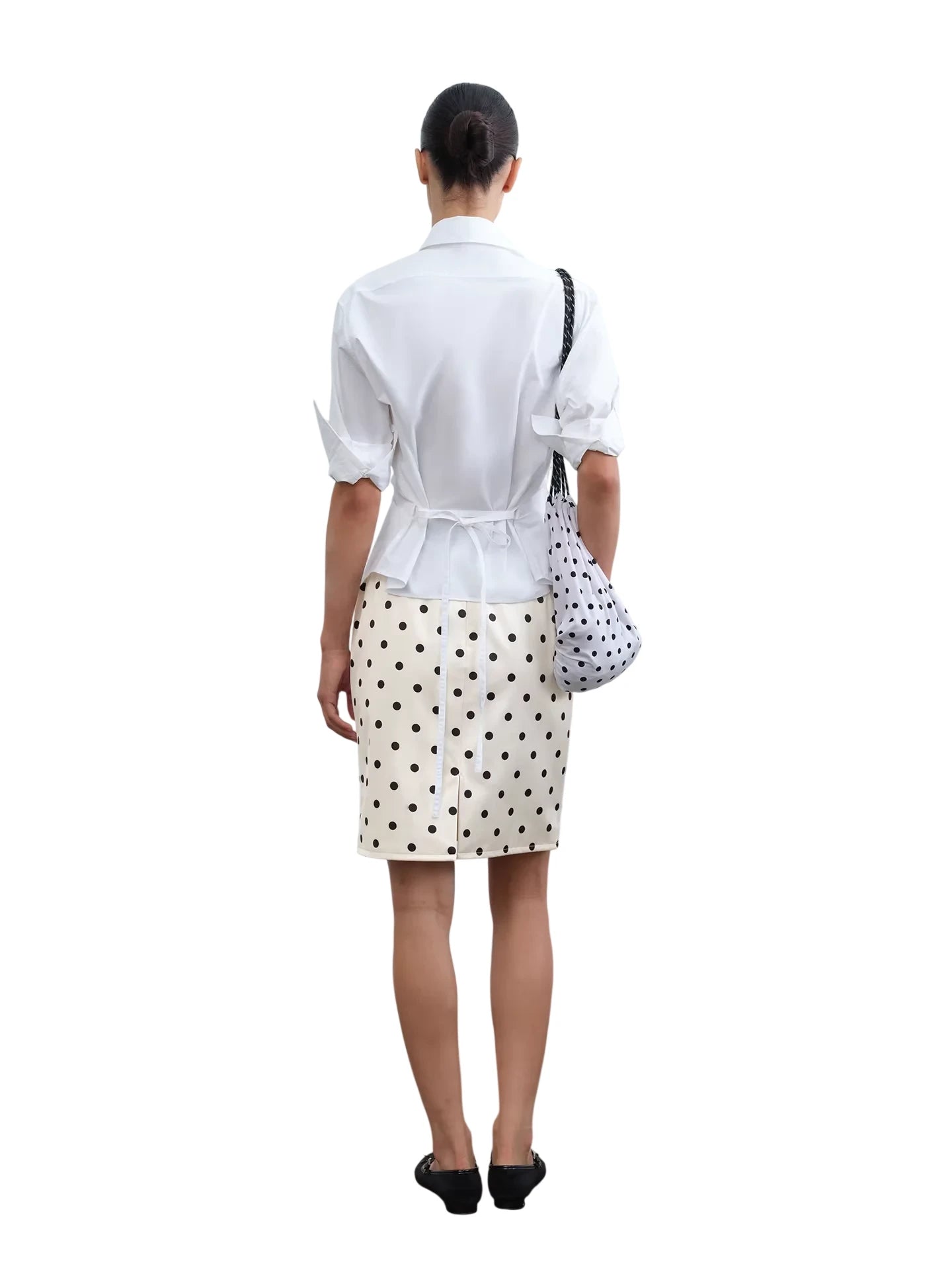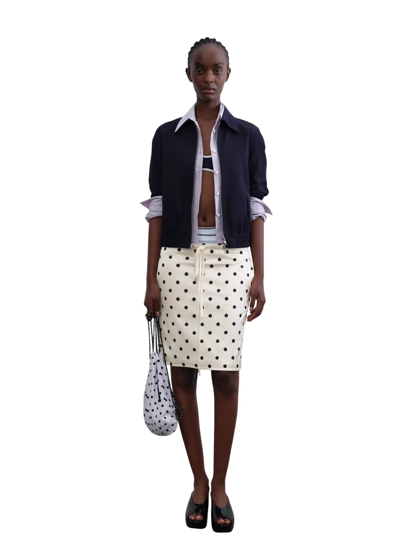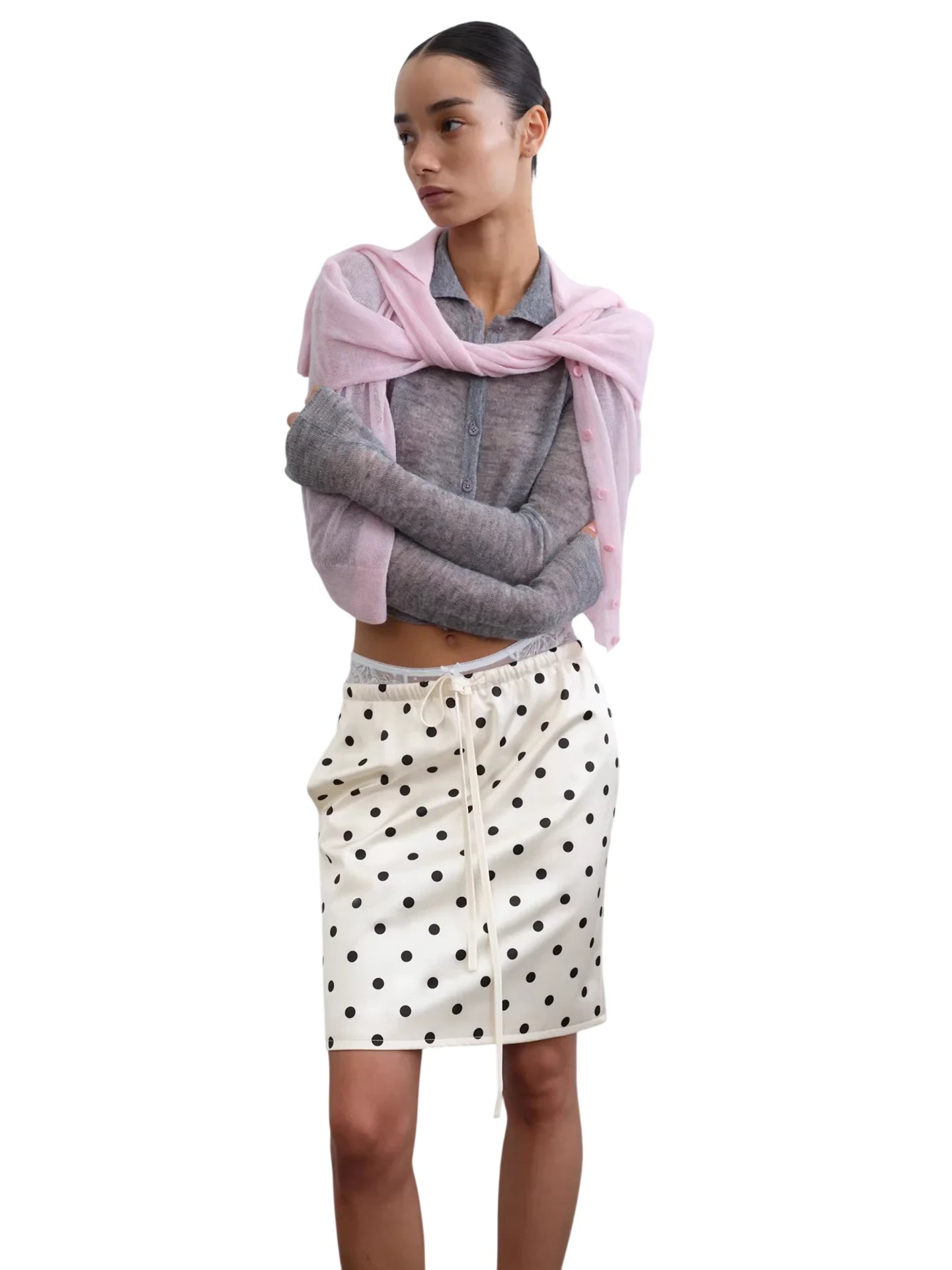 RARELY ALIKE Polka Dot Drawstring Midi Skirt