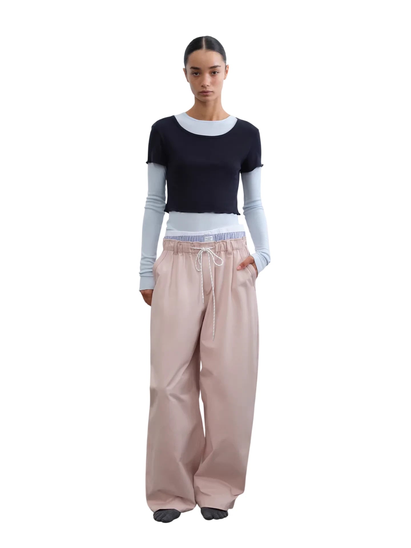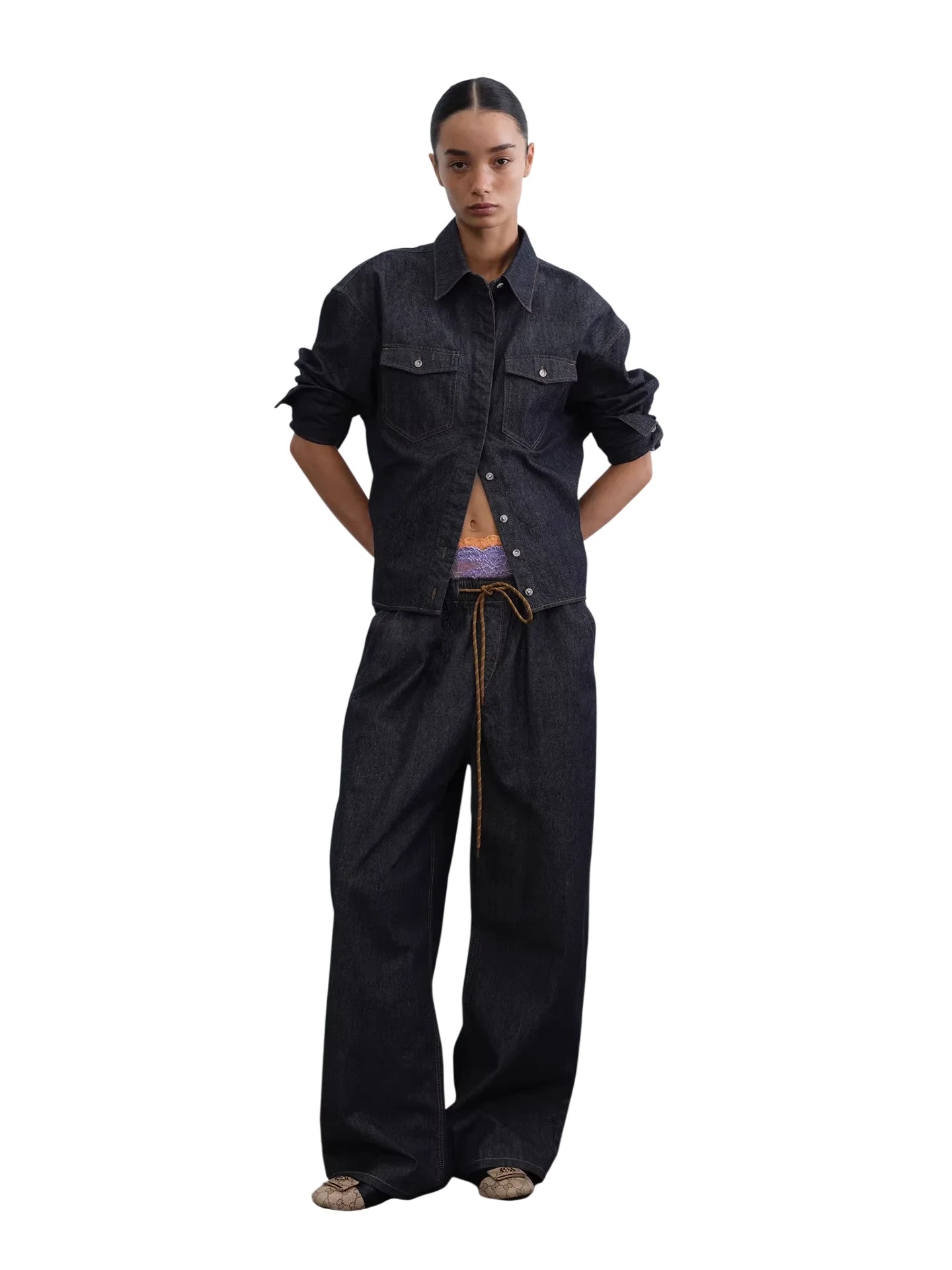 RARELY ALIKE Relaxed Wide-Leg Drawstring Denim Pants