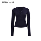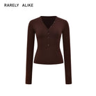 RARELY ALIKE Slim Fit V-Neck Button Knit Top