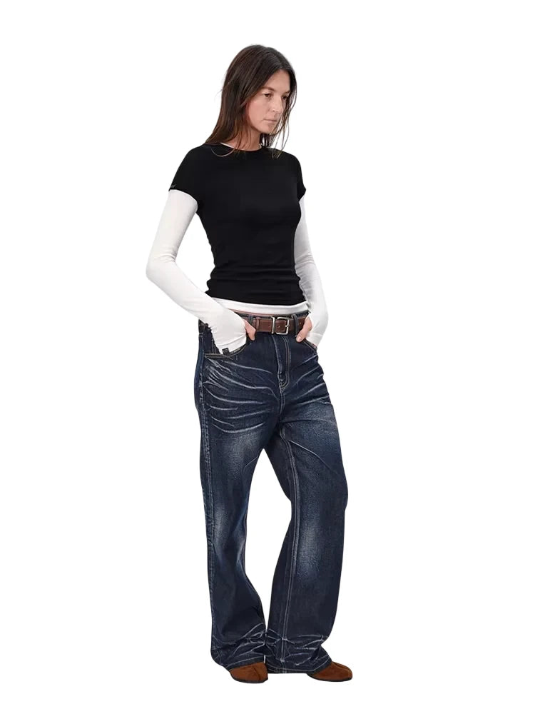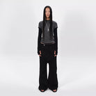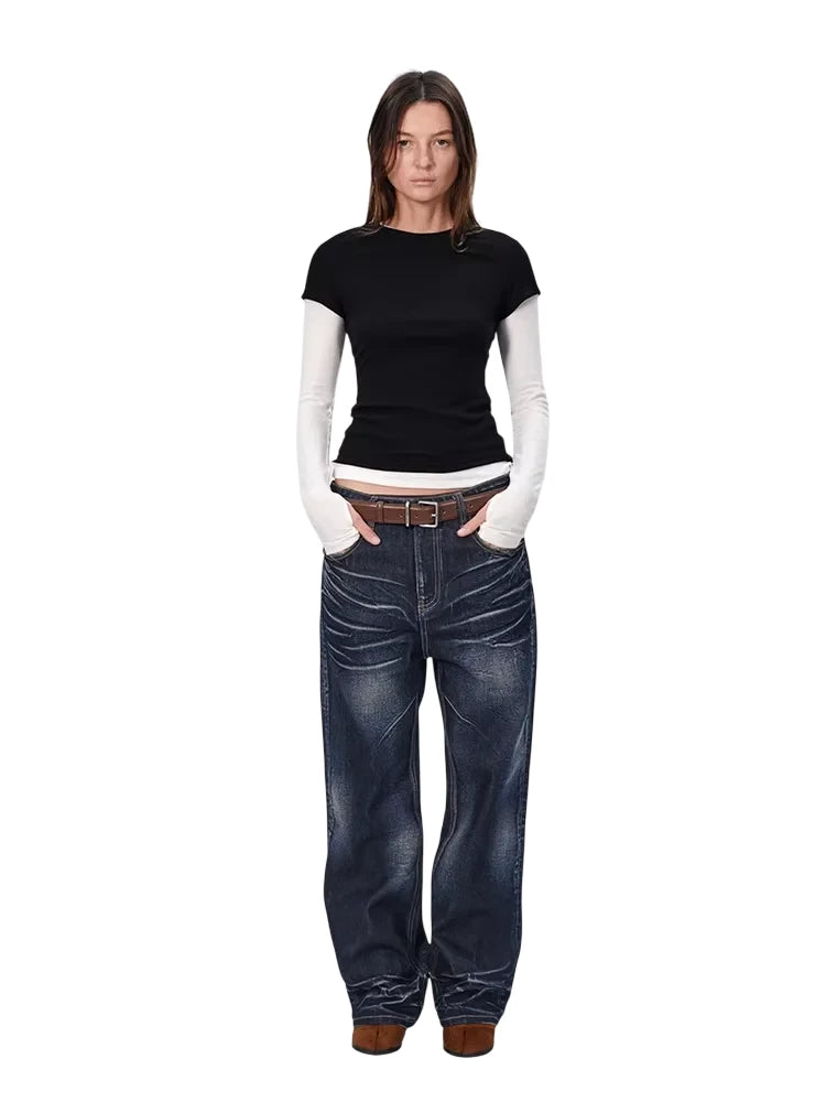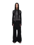 This women's stretch slim fit knit top is crafted from a premium Tencel-wool blend, offering a soft, breathable feel with a structured silhouette. Designed with a refined fit, it features short sleeves, making it ideal for versatile layering. Styled here in dark gray over a black long-sleeve thumbhole undershirt, the look is both modern and edgy, perfect for contemporary streetwear. Available in black, white, and dark gray, this piece delivers minimalist elegance for everyday wear.