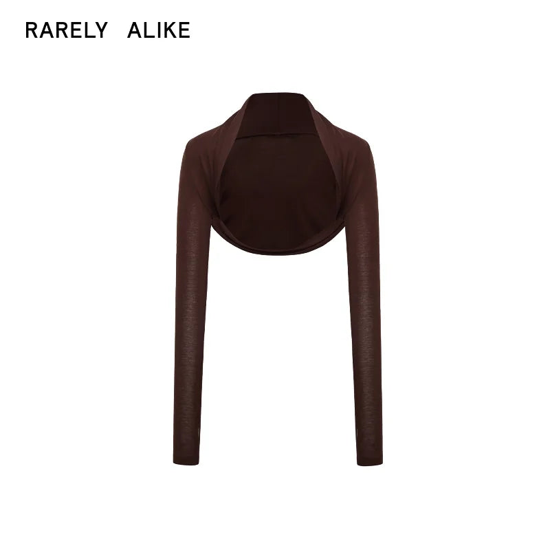 RARELY ALIKE Tencel Wool Slim Fit Knitted Arm Sleeves - Brown/Light Heather Gray