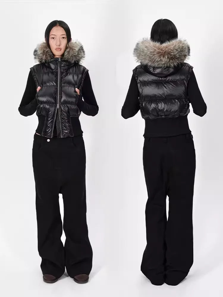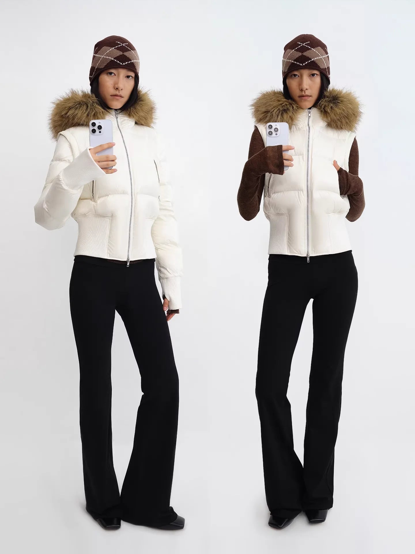 RARELY ALIKE Women's Short Down Jacket with Detachable Sleeves and Fur Collar