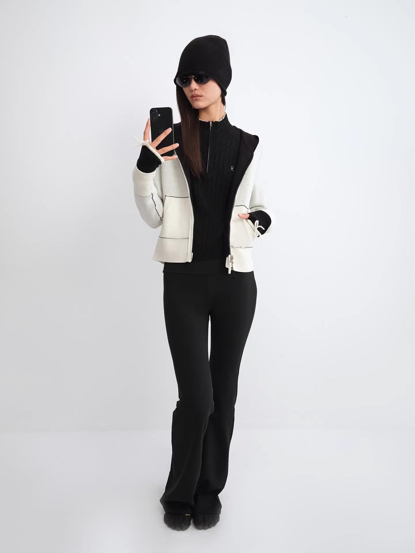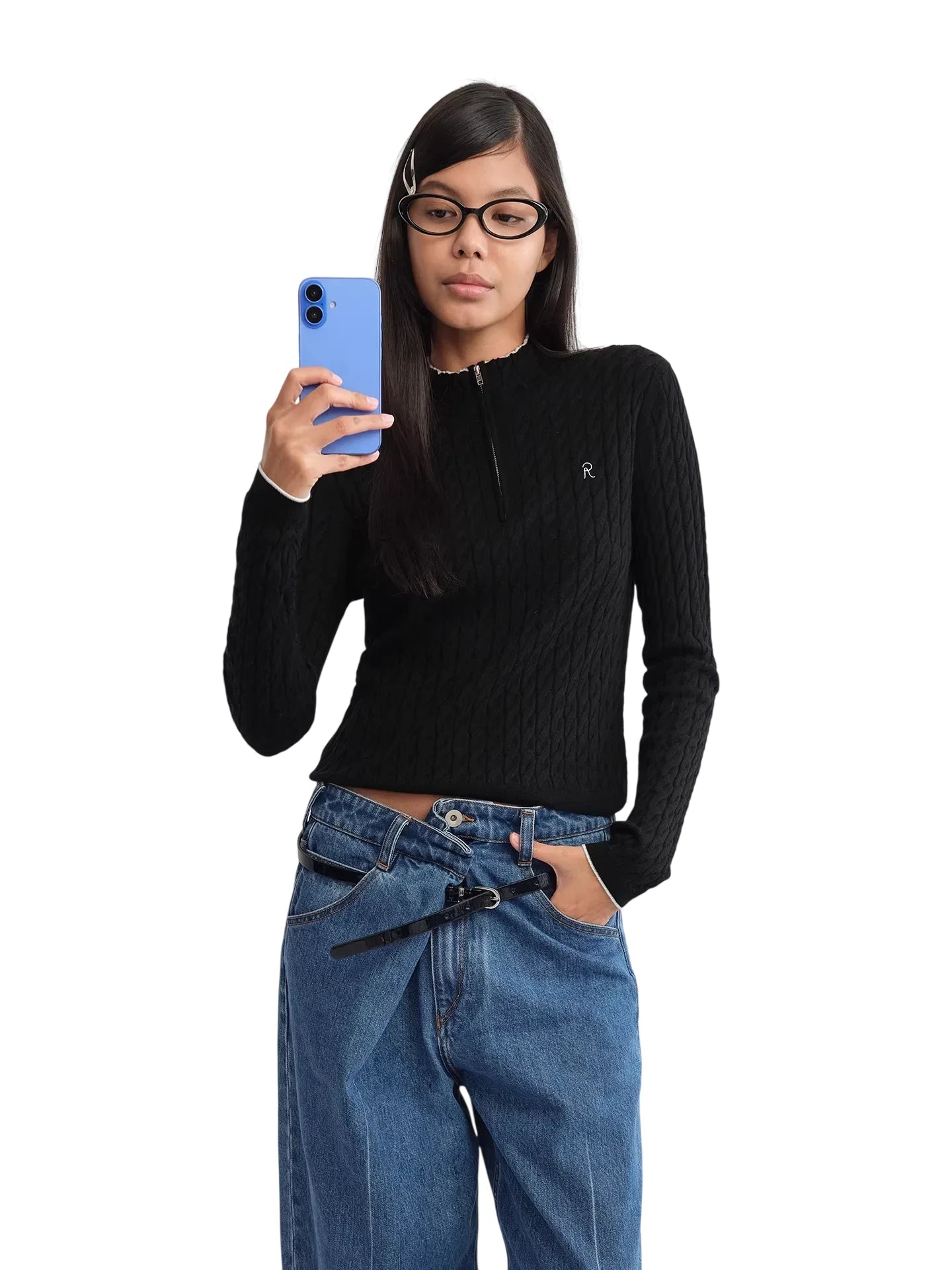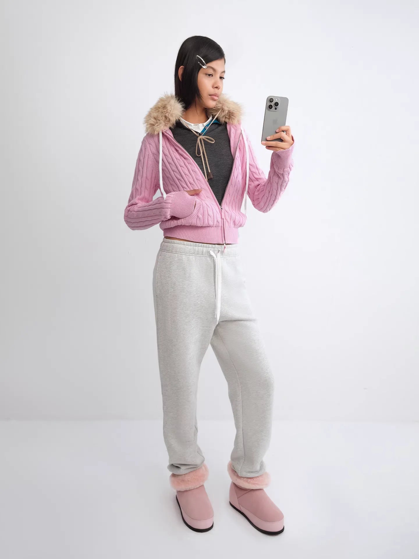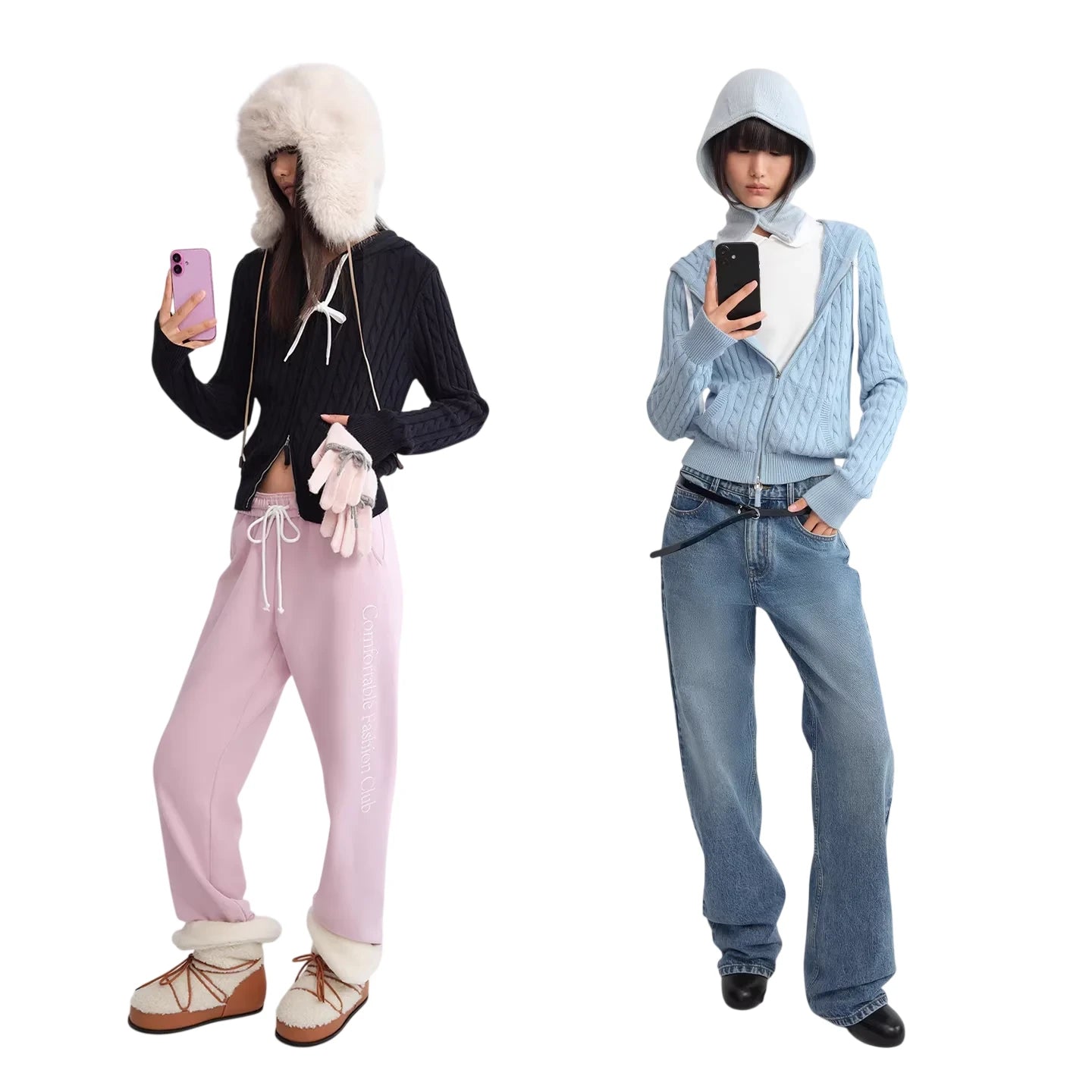 RARELY ALIKE Hooded Cable Knit Zip-Up Cardigan