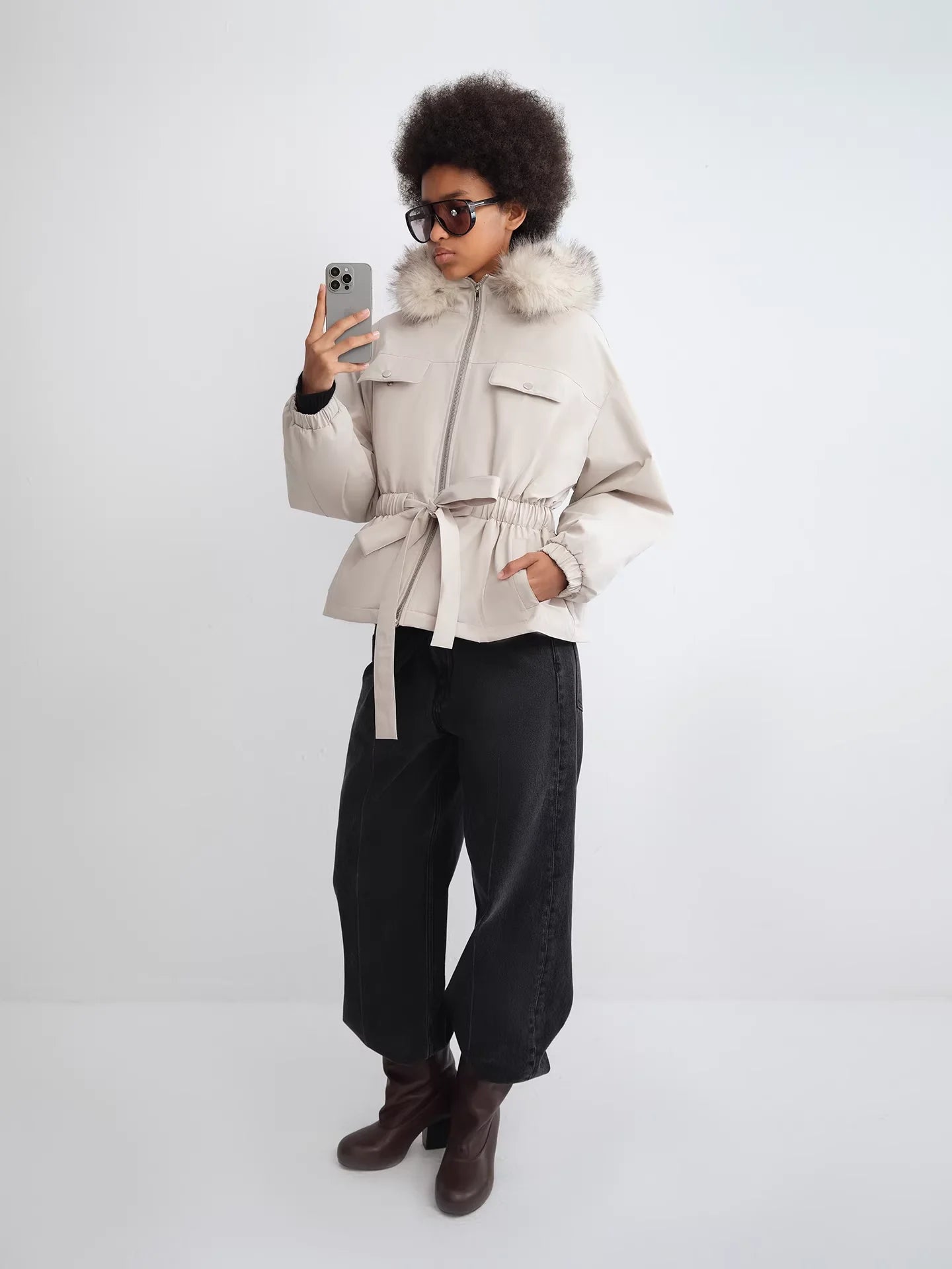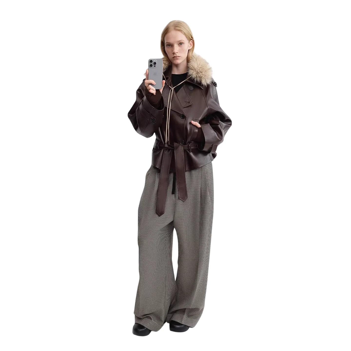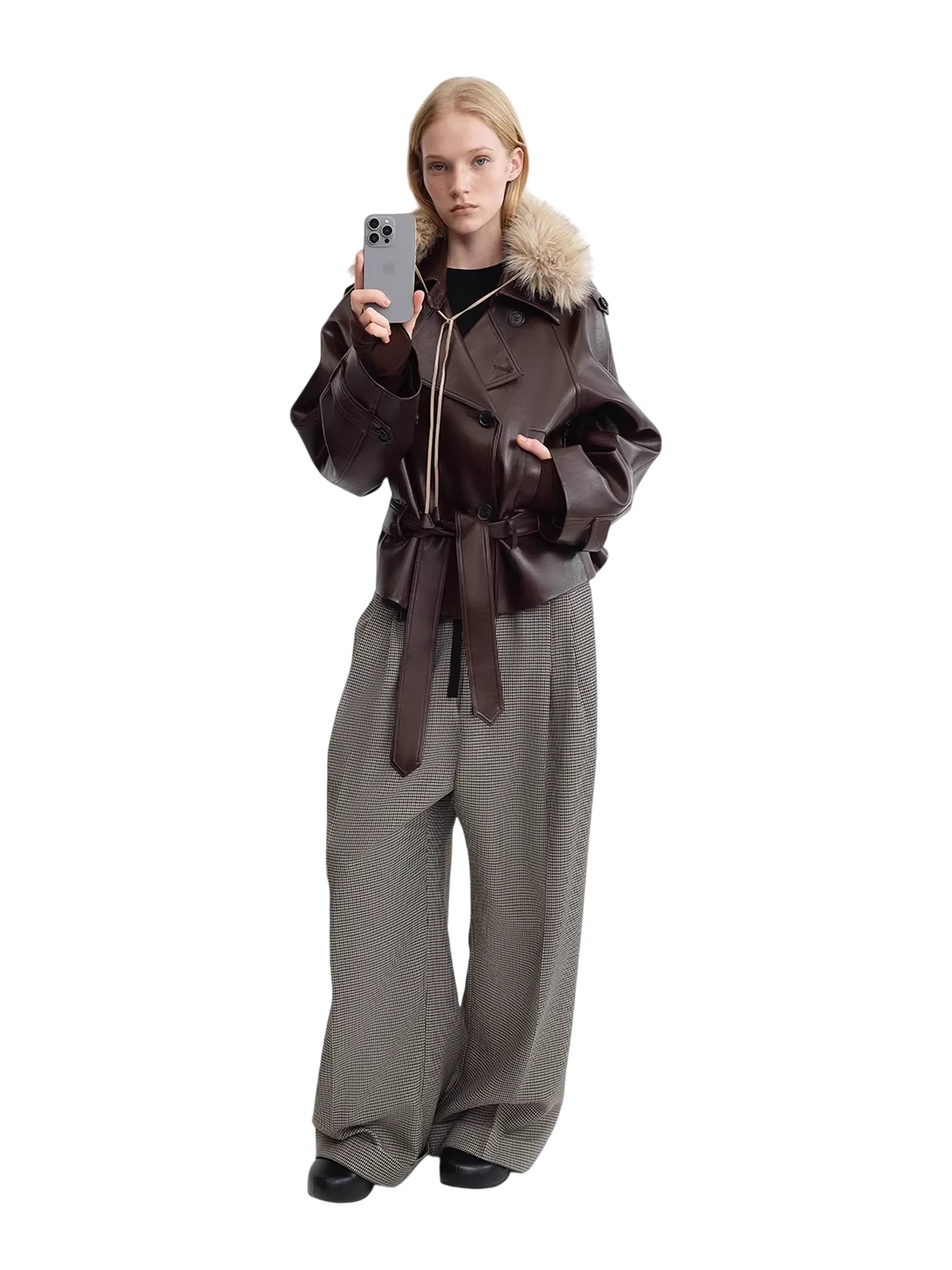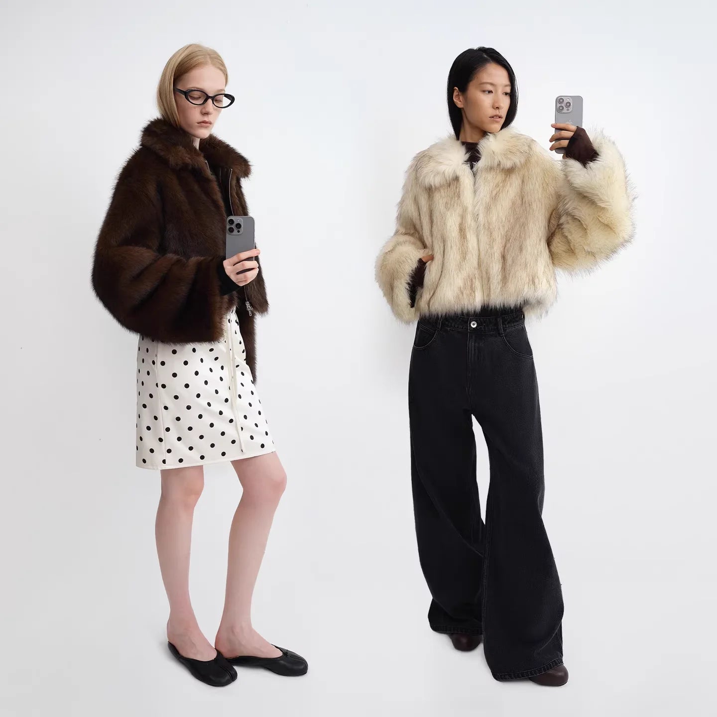 RARELY ALIKE Short Faux Fur Jacket with Suede Lining in Dark Coffee and White