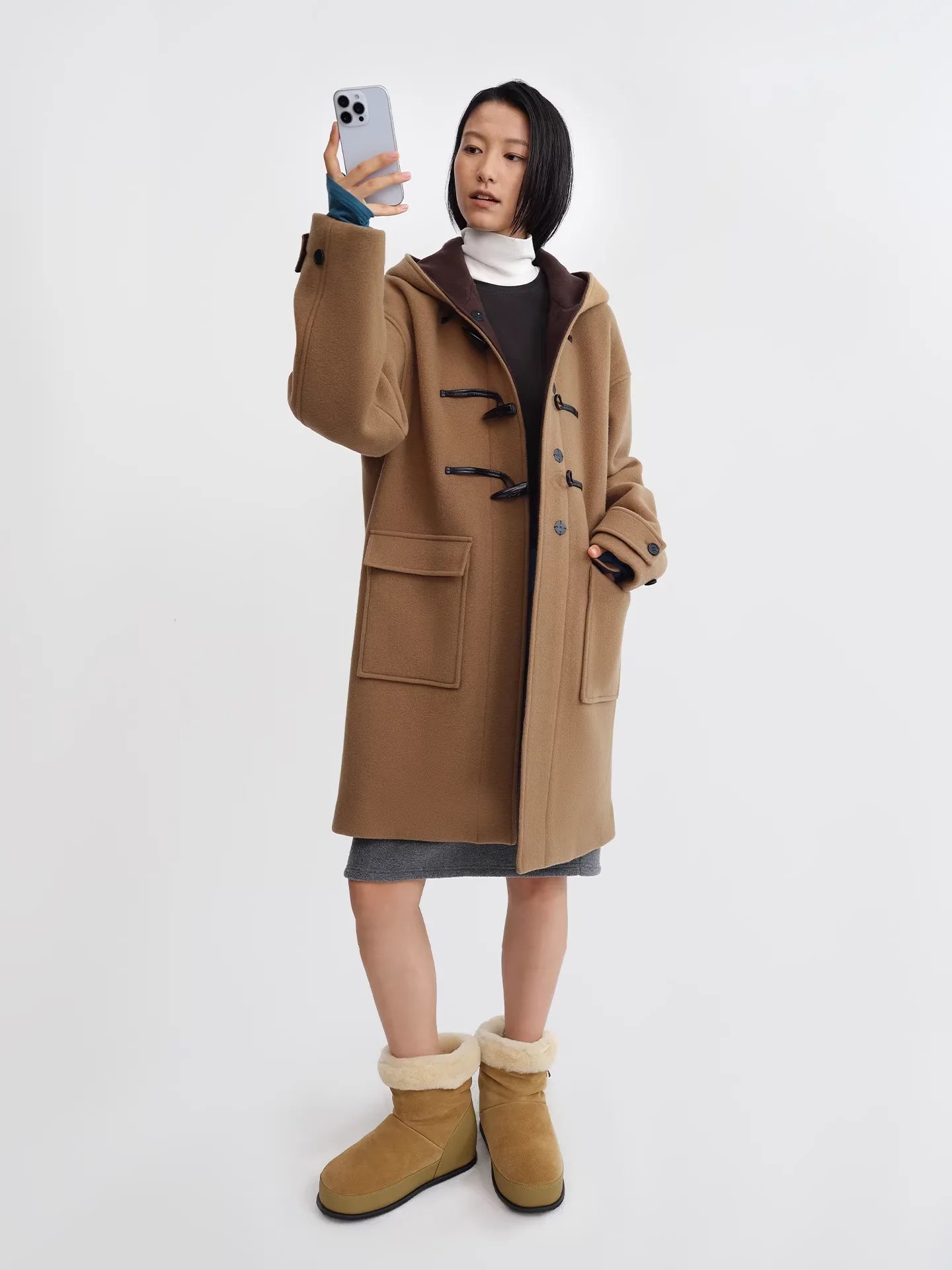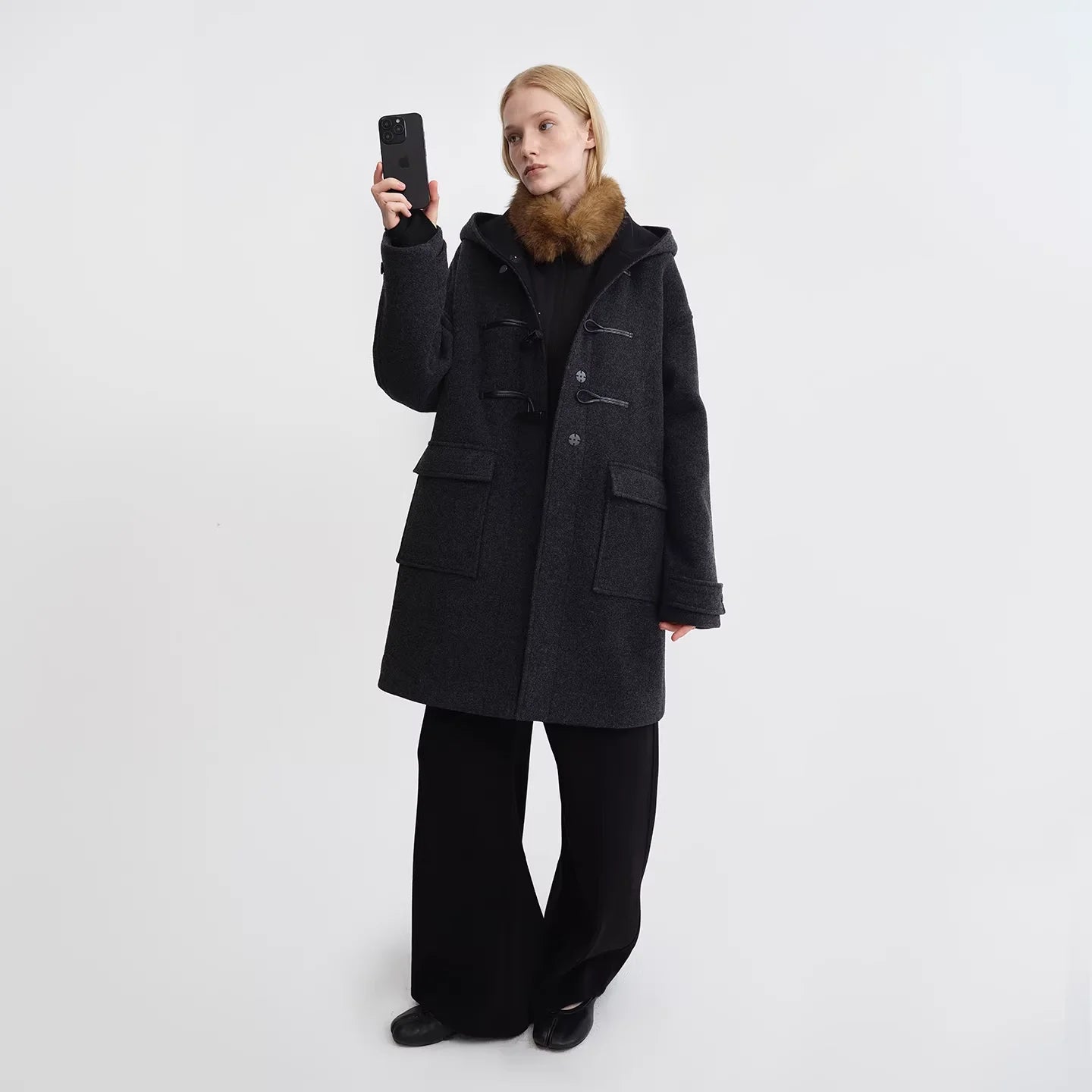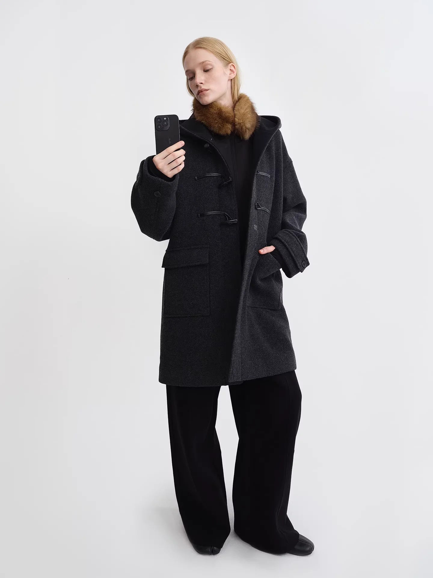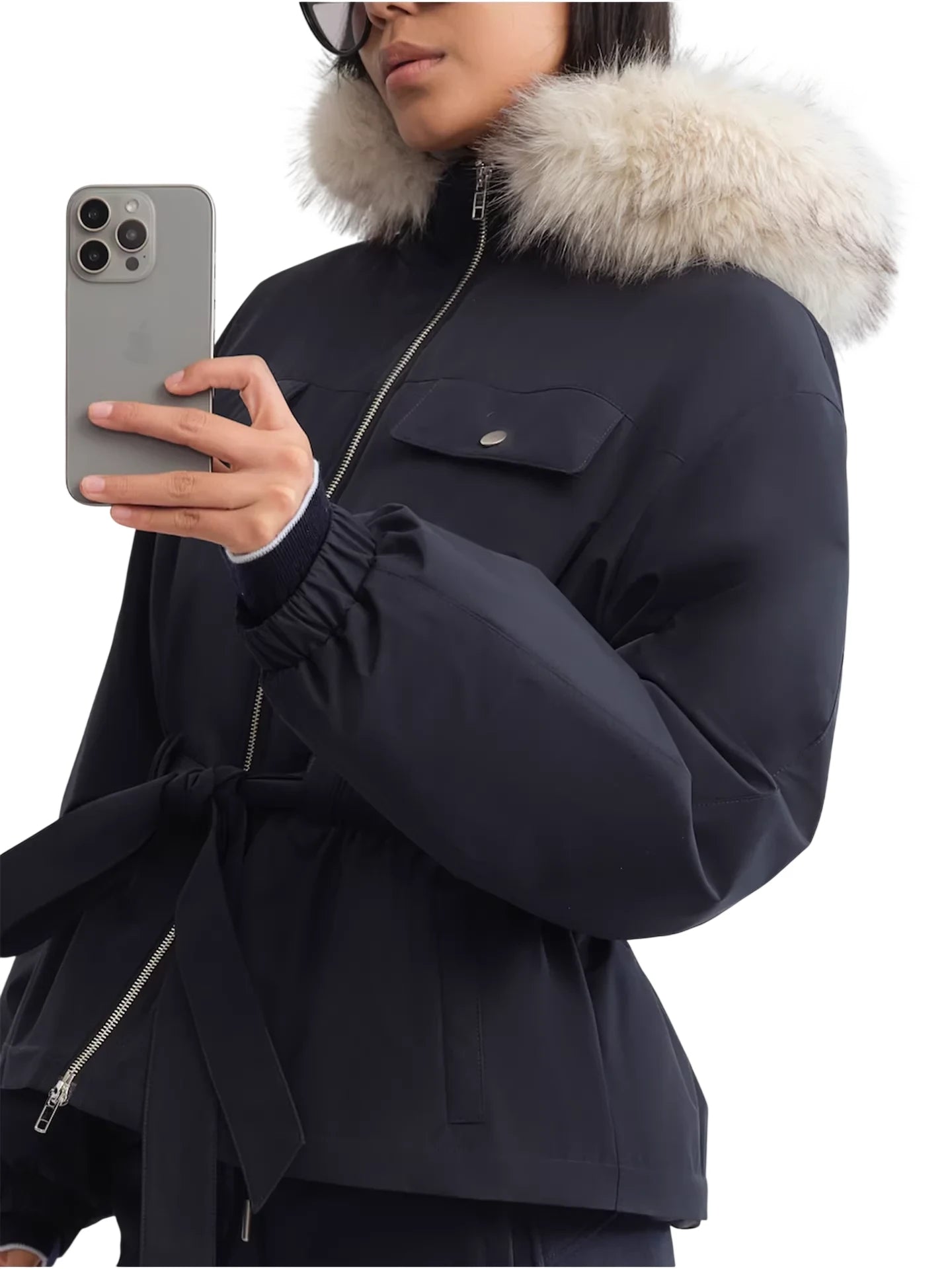 RARELY ALIKE Short Faux Fur Jacket with Suede Lining in Dark Coffee and White