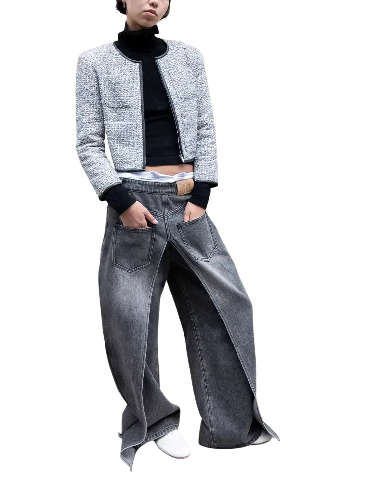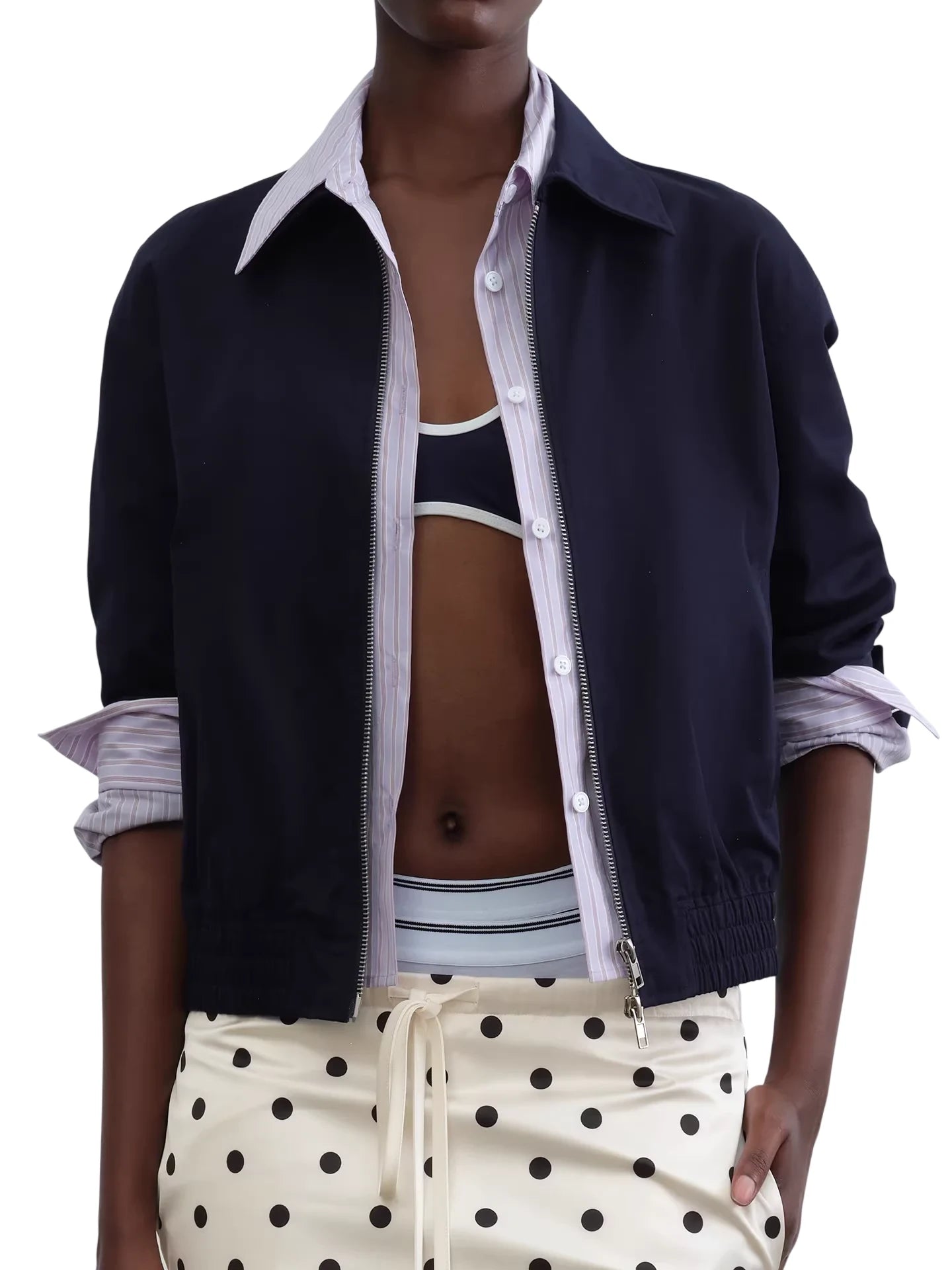 RARELY ALIKE Colorblock Striped Short Jacket