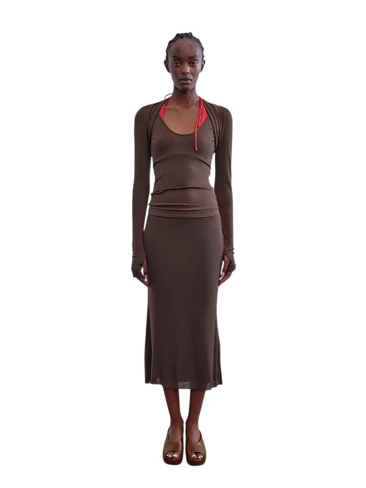RARELY ALIKE Layered Knit Tube Top with Detachable Sleeves