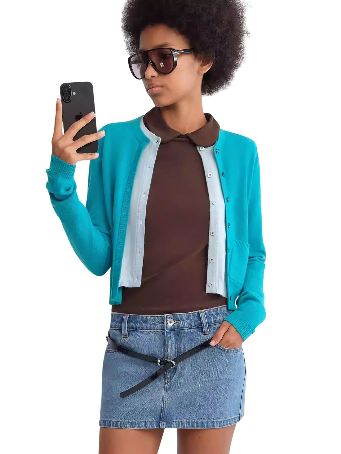 RARELY ALIKE Layered Contrast Button Cardigan Set