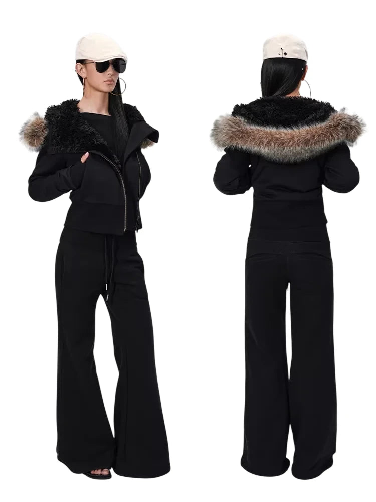 RARELY ALIKE Women's Hooded Cotton Coat with Fur Collar and Plush Lining