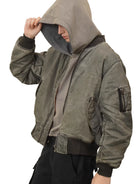 Elevate your outerwear collection with this men's vintage-style MA-1 bomber jacket, designed for autumn and winter wear. Featuring a garment-dyed olive green finish, this reversible jacket blends rugged utility with timeless style. It includes a zip-up front, ribbed cuffs and hem for a secure fit, angled flap pockets with button closures, and a zippered utility pocket on the sleeve. Layer it over hoodies or tees for a streetwear-inspired look that combines comfort and functionality.