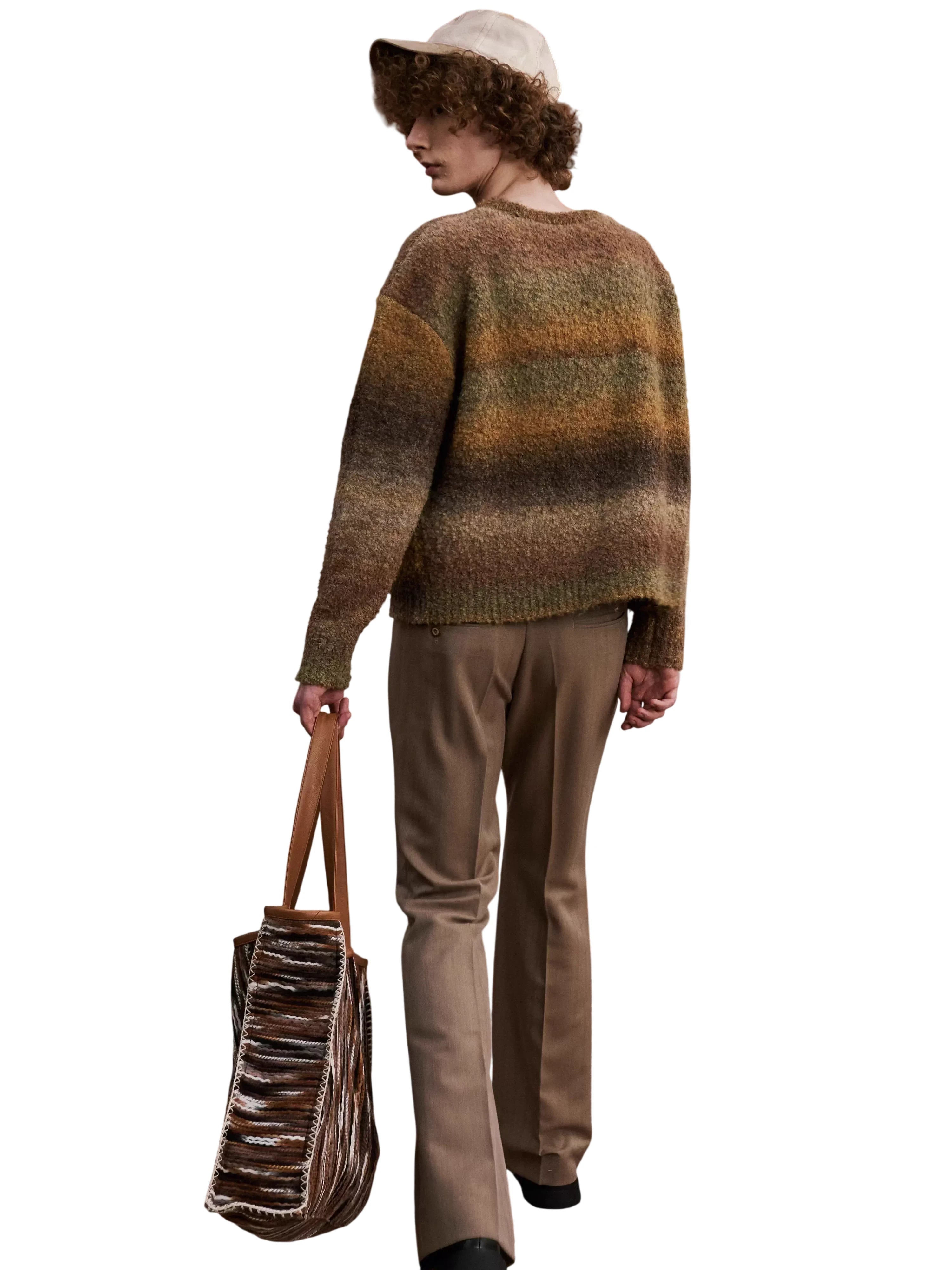 Retro 21 Gradient Wool Knit Sweater – Loose Fit, Warm, Earth Tone Stripes