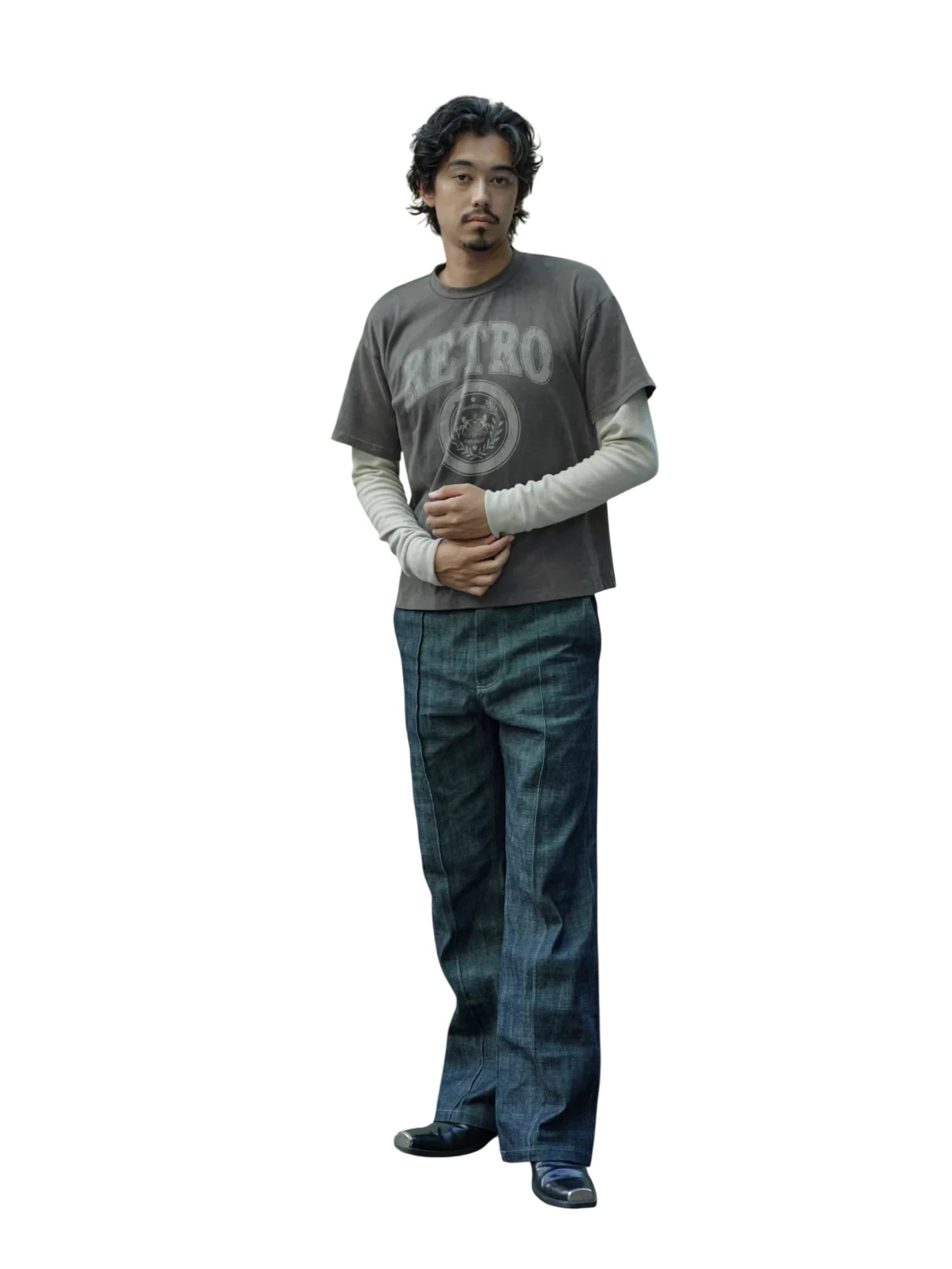 Retro 21 Layered Waffle Long Sleeve Tee with University Graphic