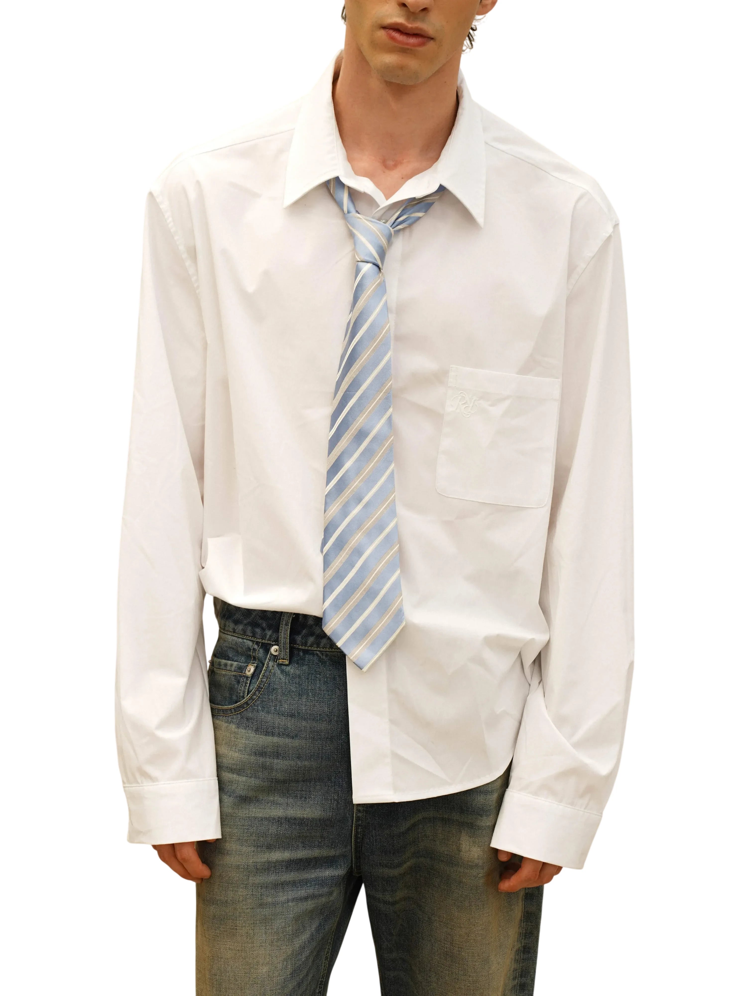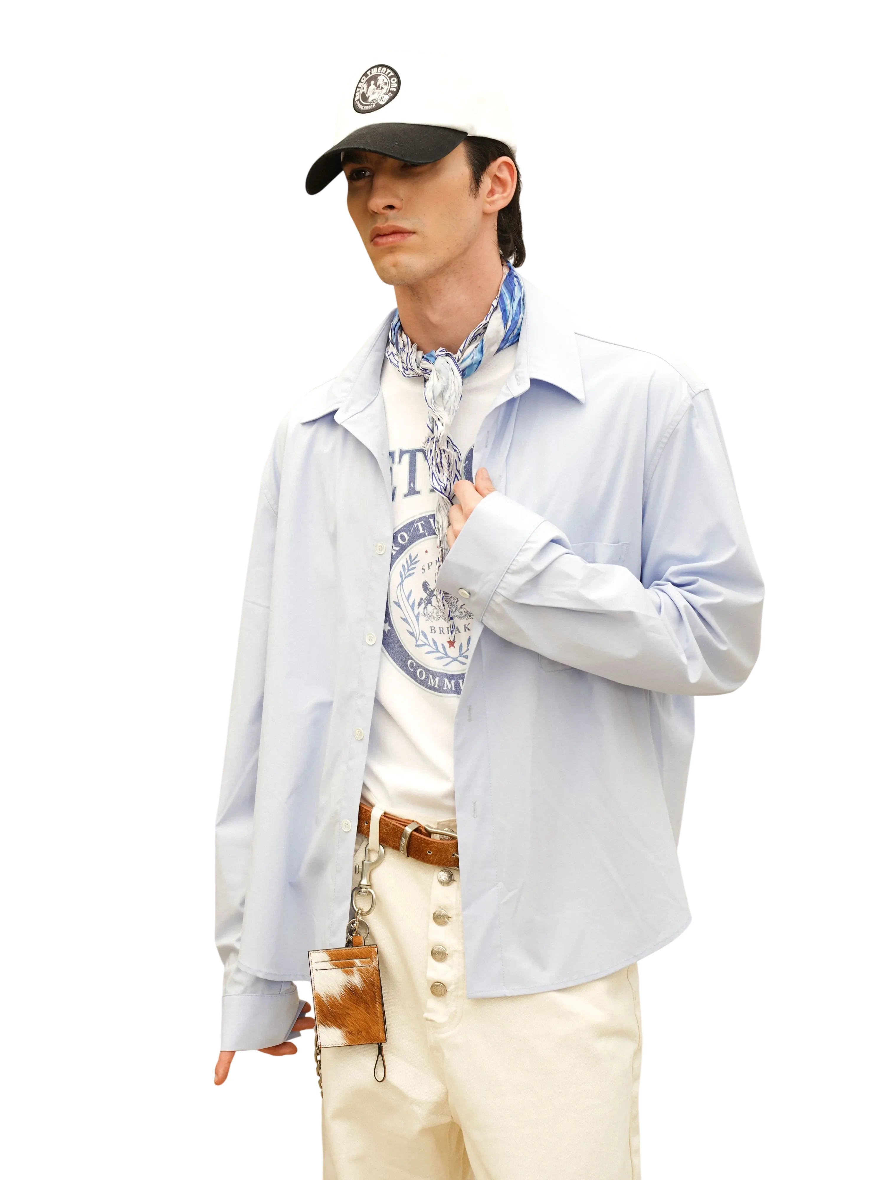 Crafted from breathable bamboo fiber, this men's long-sleeve shirt combines casual comfort with refined style. Featuring a two-tone design and a single chest pocket, the shirt offers a modern take on a classic look. The relaxed fit, drop shoulder construction, and subtle embroidered details make it perfect for versatile, everyday wear.