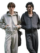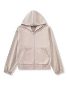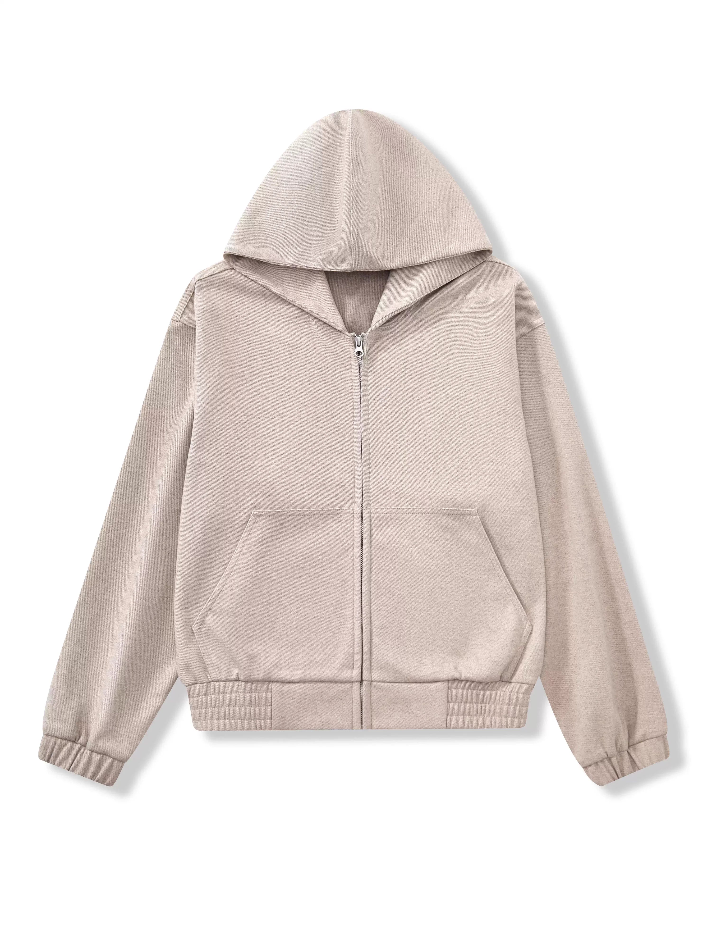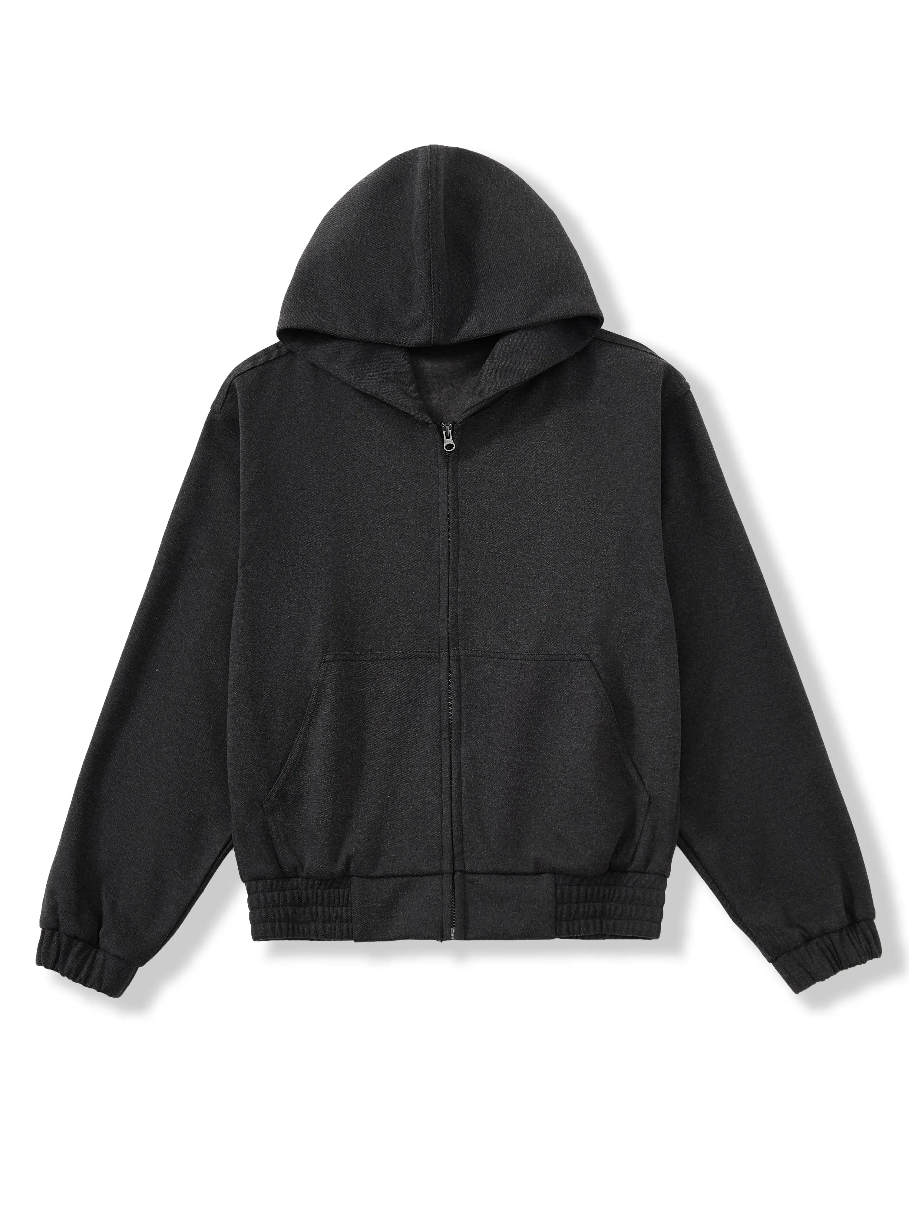 Stay comfortable and stylish with this men's zip-up hoodie, crafted from soft brushed fleece fabric for warmth and flexibility. Featuring a full front zipper, kangaroo pockets, and elasticized cuffs and waistband, this hoodie is perfect for casual, cool-weather wear. Its minimalist design and neutral color options make it a versatile addition to any wardrobe.