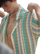 Retro 21 Men's Striped Crochet Knit Short Sleeve Shirt