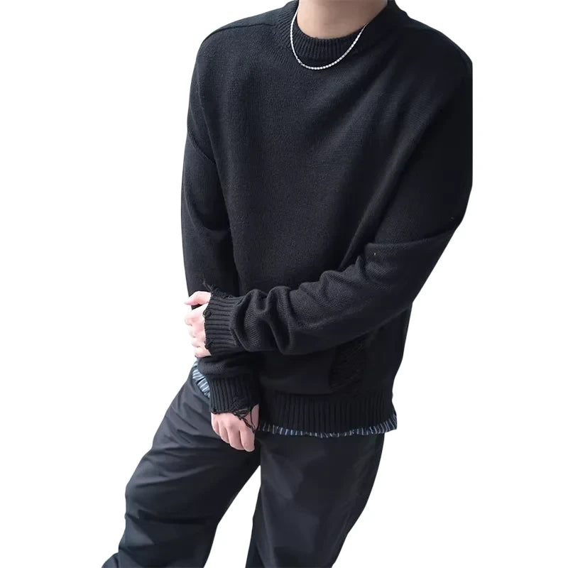 Roolrren homme Faux Two-Piece Wool Blend Pullover Sweater