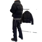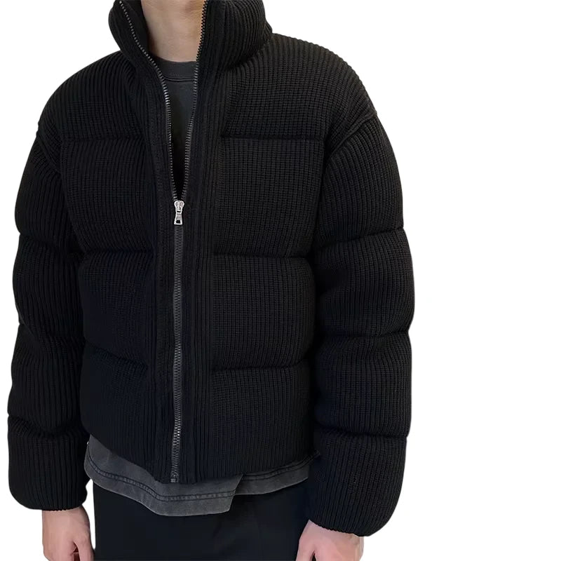 Stay warm and stylish with this heavyweight goose down jacket, crafted with a textured knit shell for a unique and refined look. Designed with thick horizontal quilting and a stand collar, it offers both insulation and modern appeal. The puffer-style silhouette ensures reliable warmth, making it an essential piece for cold weather.