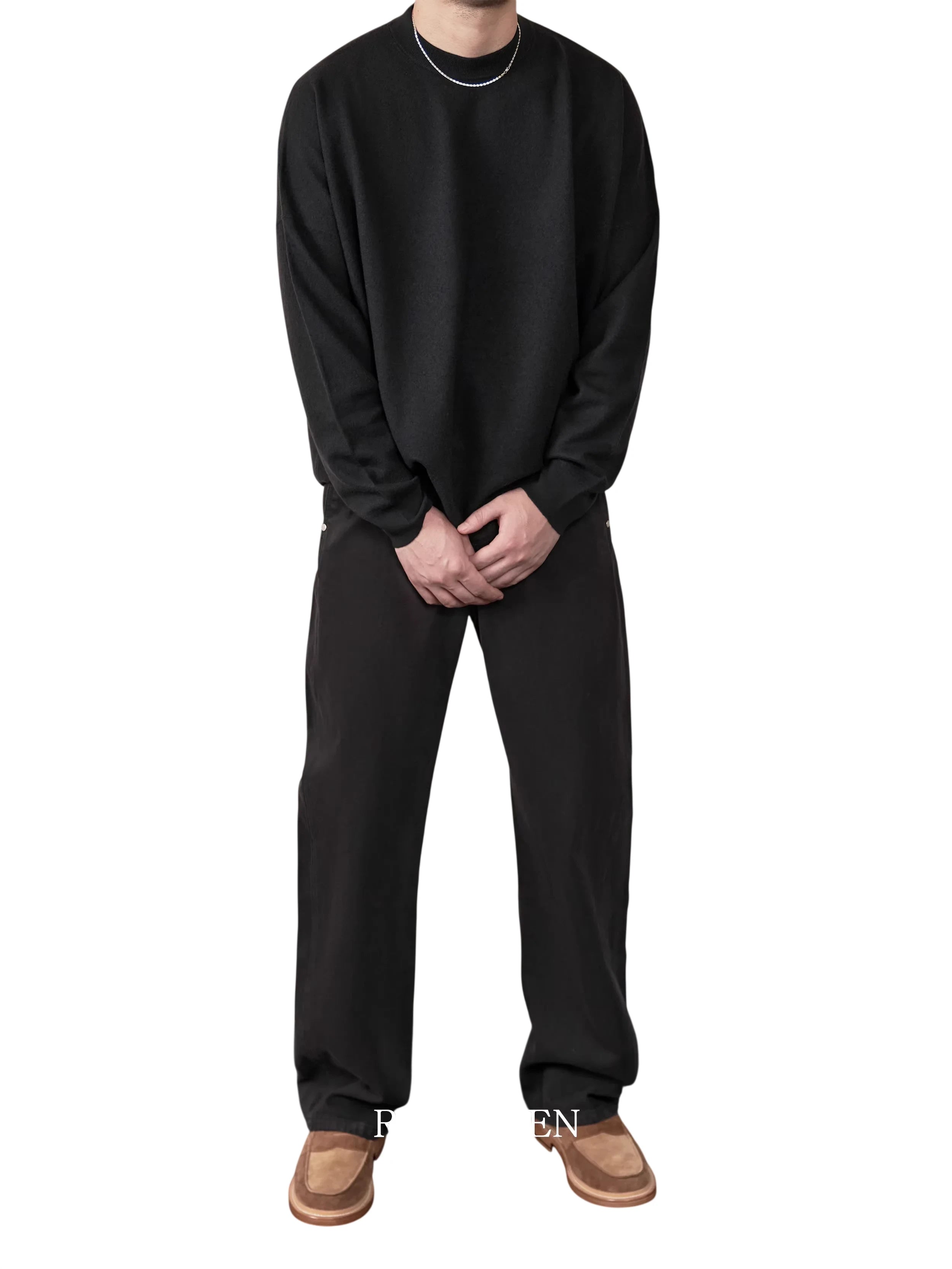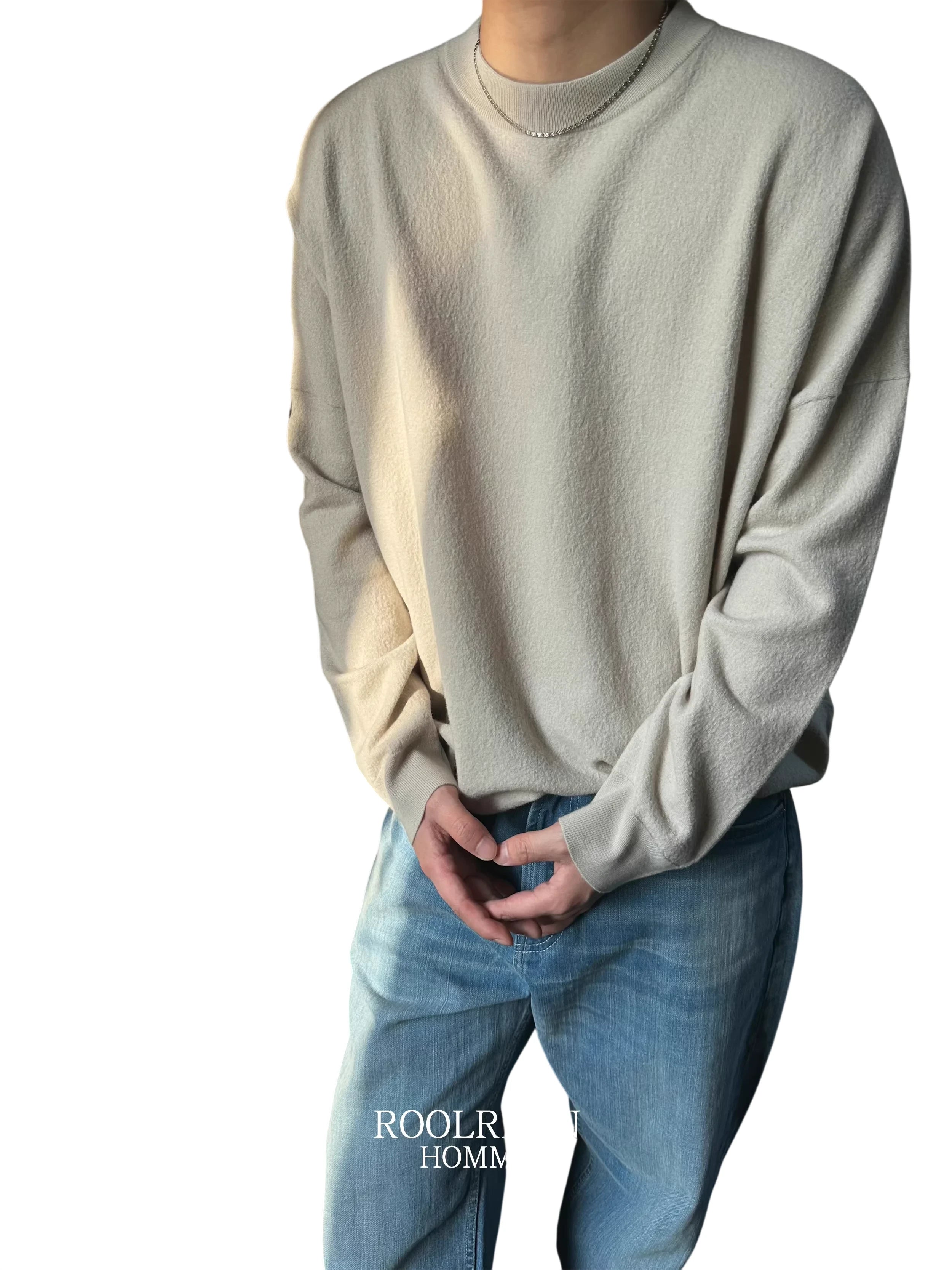 This men's crew neck sweater is expertly handmade from high-quality full wool, offering exceptional softness and skin-friendly comfort. The textured knit provides both warmth and a refined appearance, ideal for everyday wear during cooler months. Available in versatile black and light beige colors, it combines timeless style with cozy functionality.