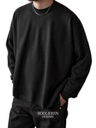Roolrren homme Men's Full Wool Handmade Crew Neck Sweater