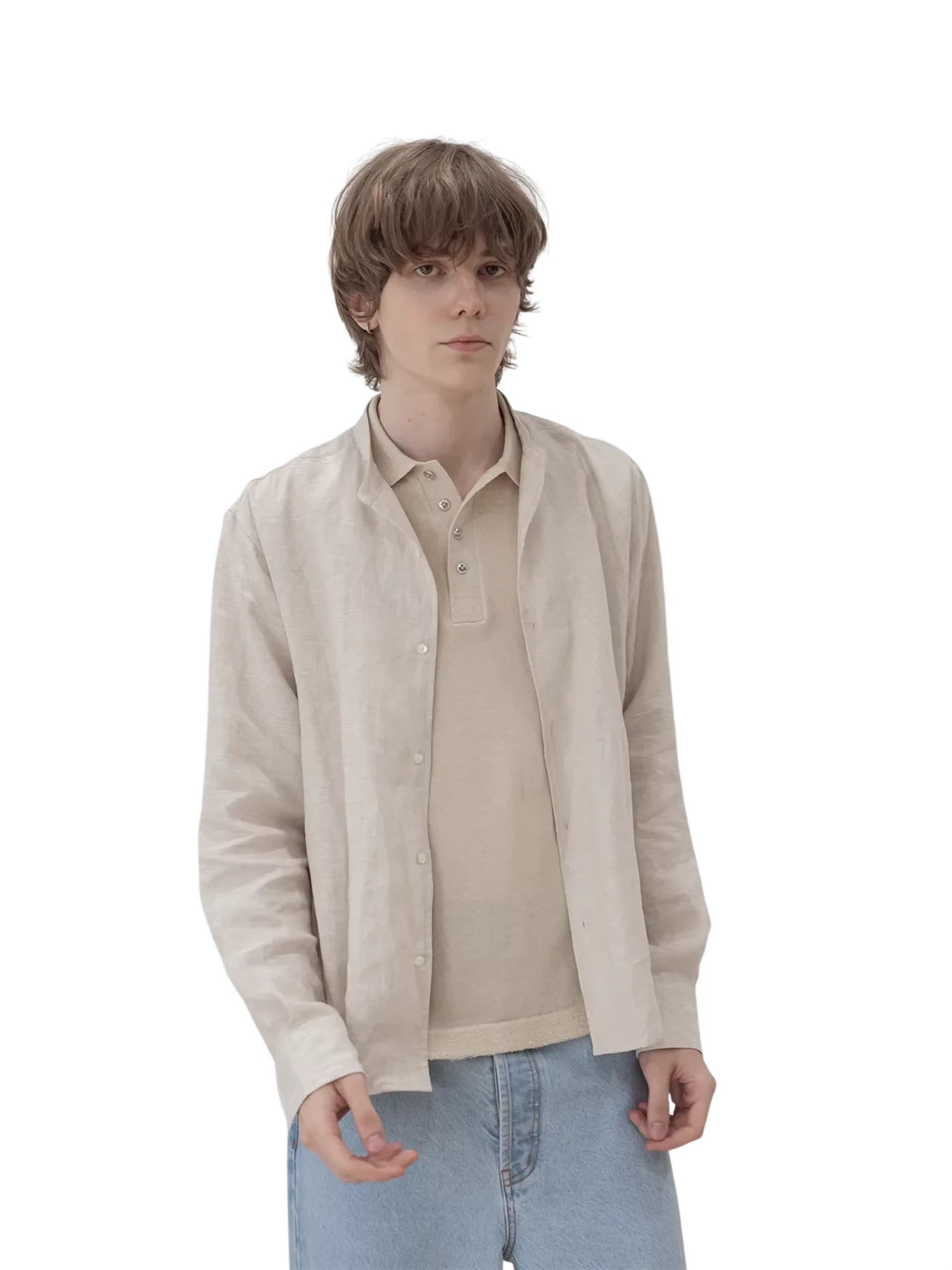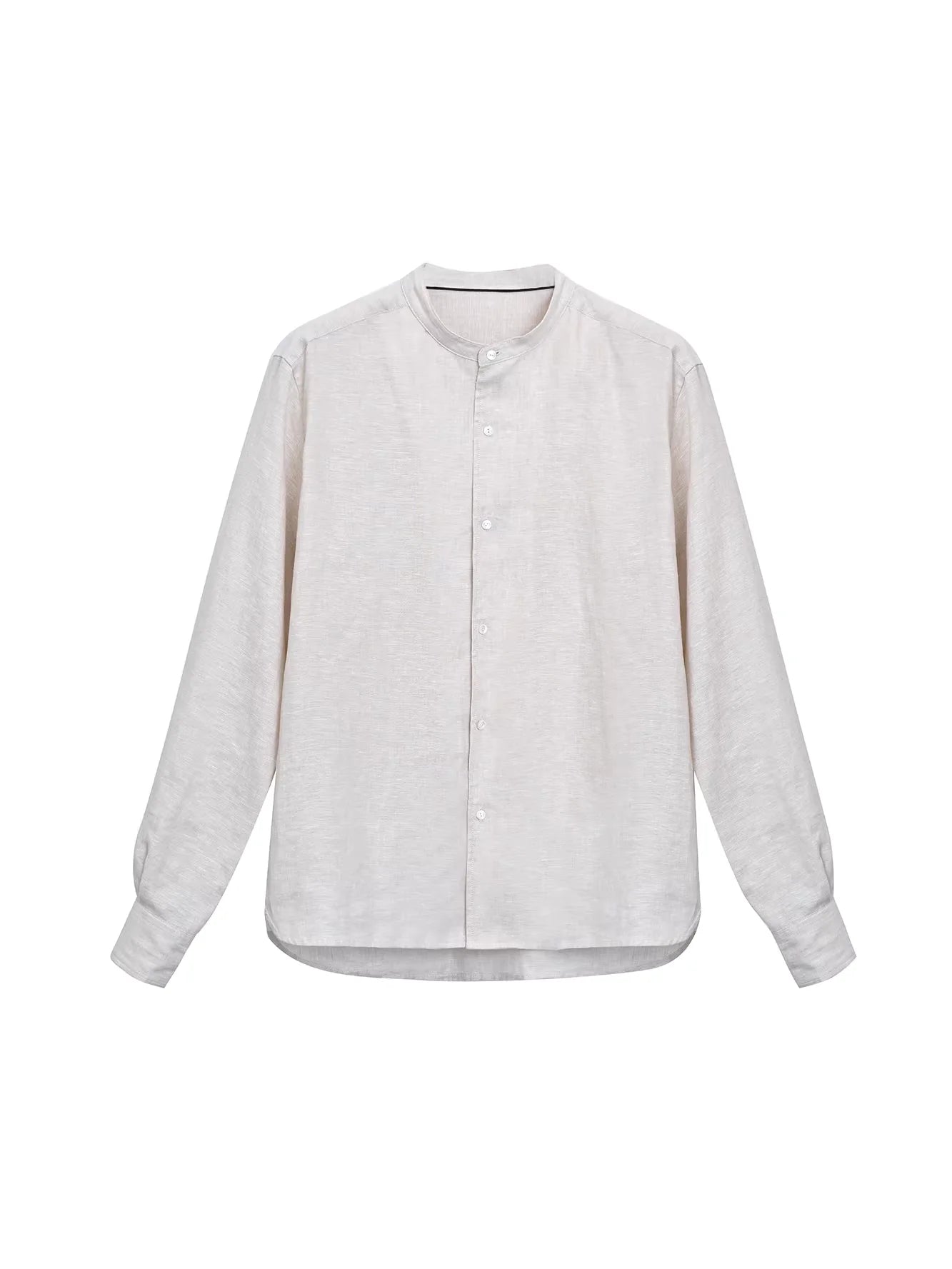 Elevate your casual or semi-formal wardrobe with this men's long sleeve shirt crafted from pure linen. Featuring a relaxed fit, this lightweight shirt is designed for comfort and style. The mandarin collar and button-down front provide a minimalist and modern look, while the semi-sheer, flowy fabric adds an elegant touch. Ideal for warm-weather wear, this shirt effortlessly combines sophistication with breezy comfort.
