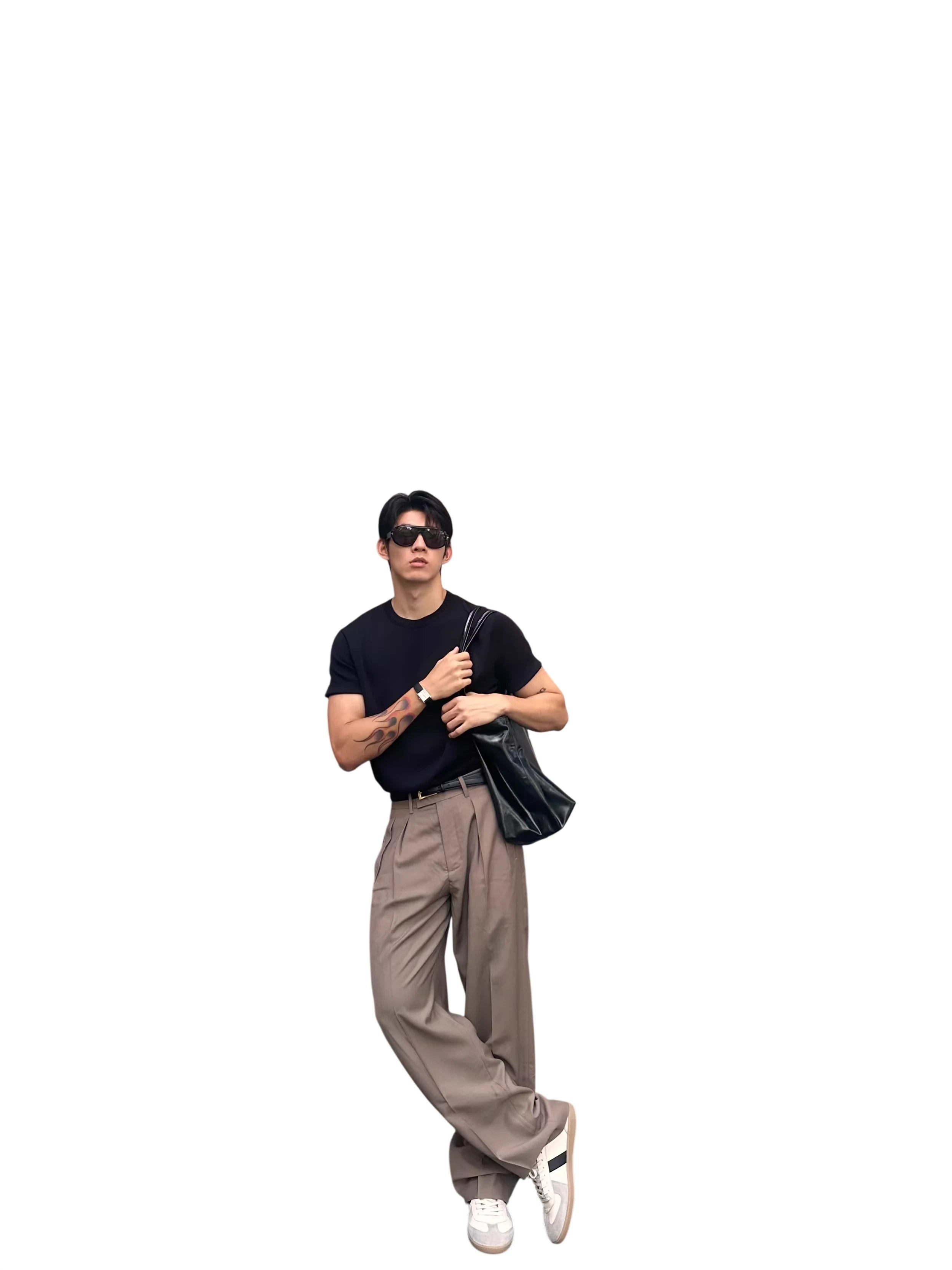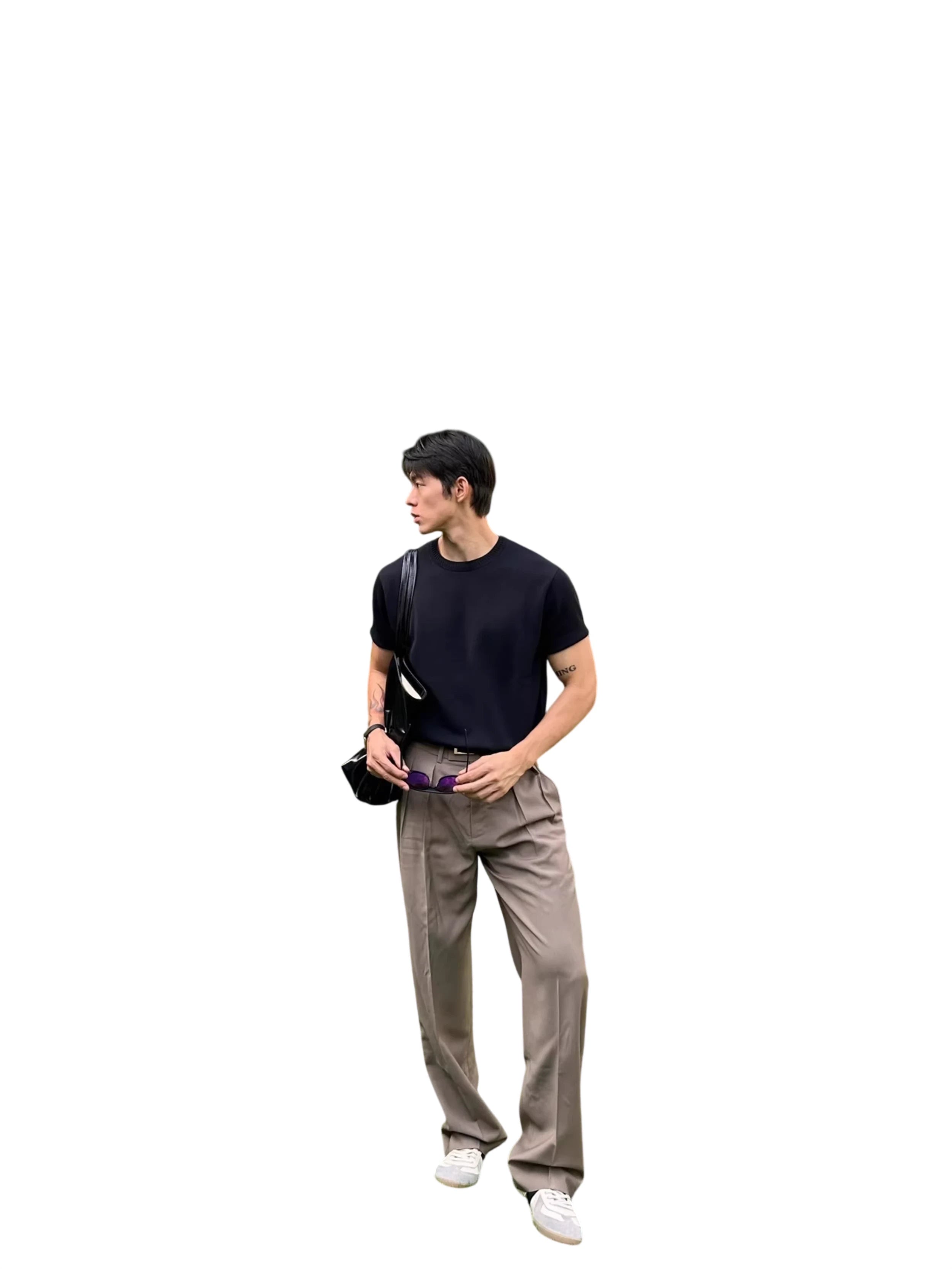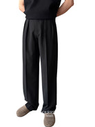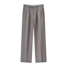 Refined and sophisticated, these men's relaxed fit trousers are crafted from premium imported Merino wool for superior comfort and breathability. Featuring a pleated front, clean tailored finish, and a smooth mid-brown shade, they offer a modern yet classic look. Functional details include vertical slit side pockets, belt loops, and a secure clasp and zipper closure, while the inner white lining showcases meticulous stitching for lasting quality. Ideal for formal or business attire.