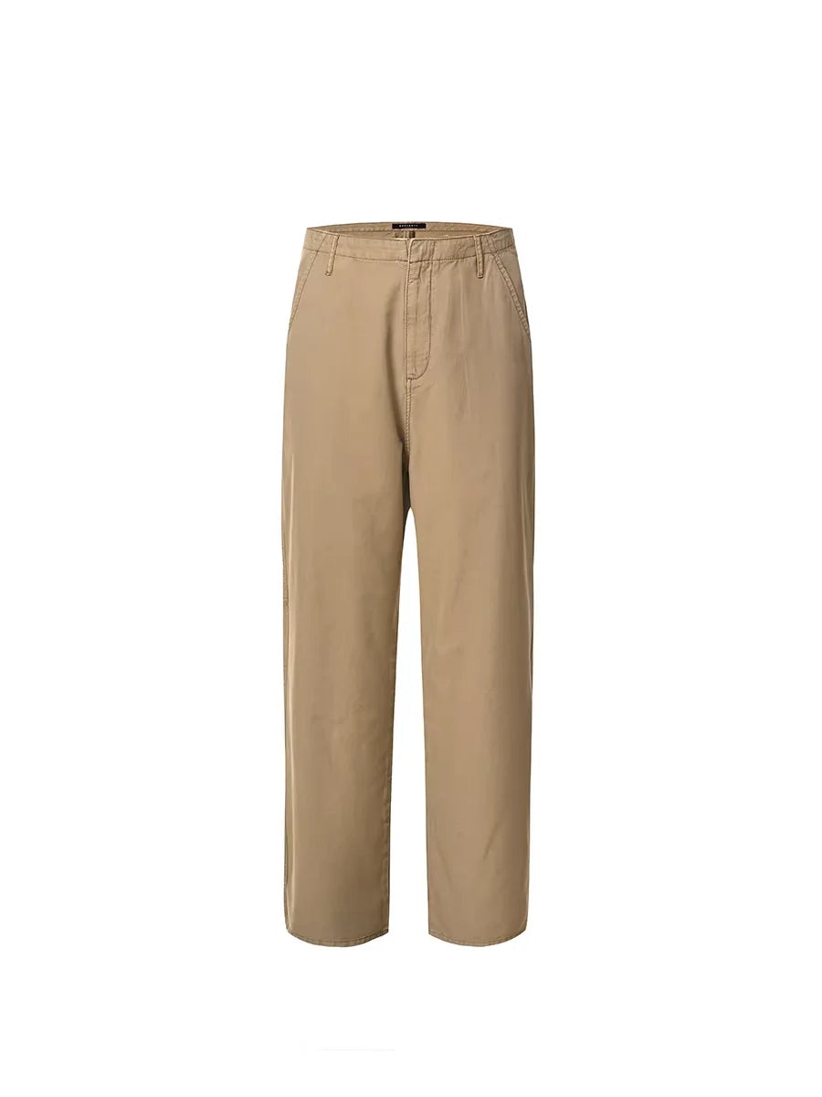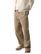 These men's relaxed fit khaki pants offer a comfortable and versatile style, featuring a straight-leg cut ideal for casual or semi-formal occasions. Designed with practical front side pockets, belt loops, and a concealed fly closure, they provide a clean and minimalist look. Made from a medium-weight cotton or cotton-blend fabric, these pants deliver breathable wear for everyday comfort.