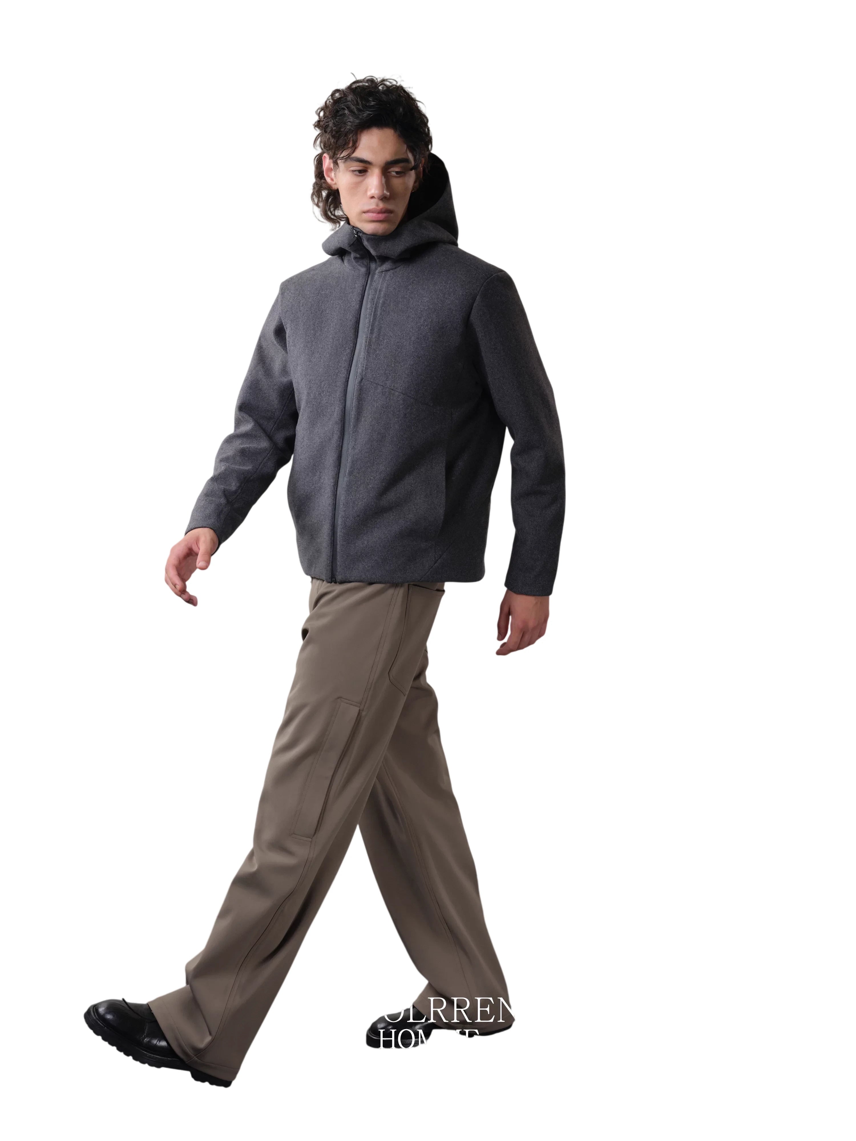 Designed for the modern commuter, this men's softshell jacket offers a refined blend of function and style. Crafted from waterproof and windproof wool material, it features a structured fit with a sleek, minimalist silhouette.