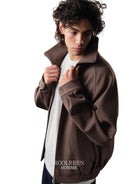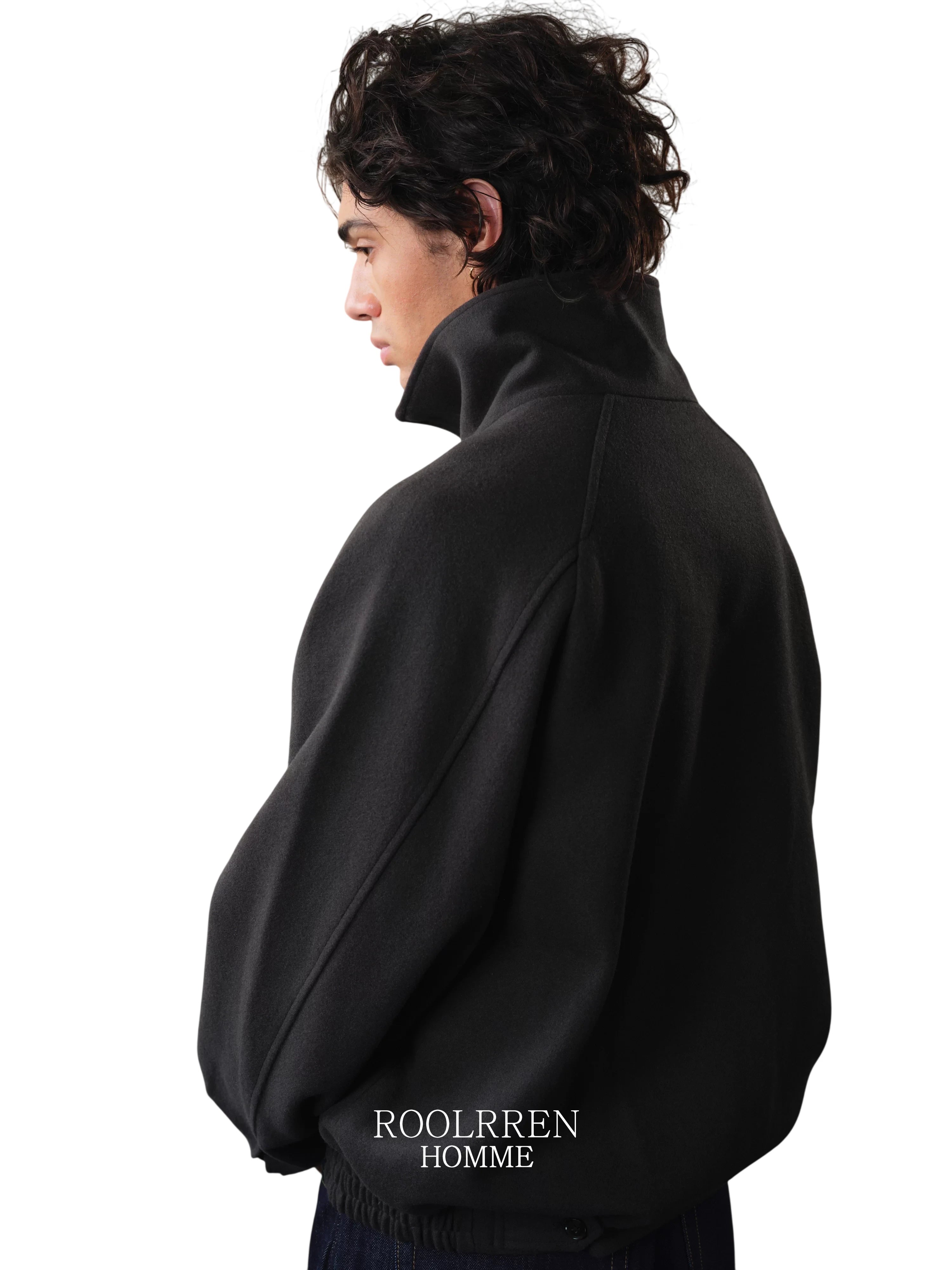 Roolrren homme Men's Wool Blend Stand Collar Toggle Jacket