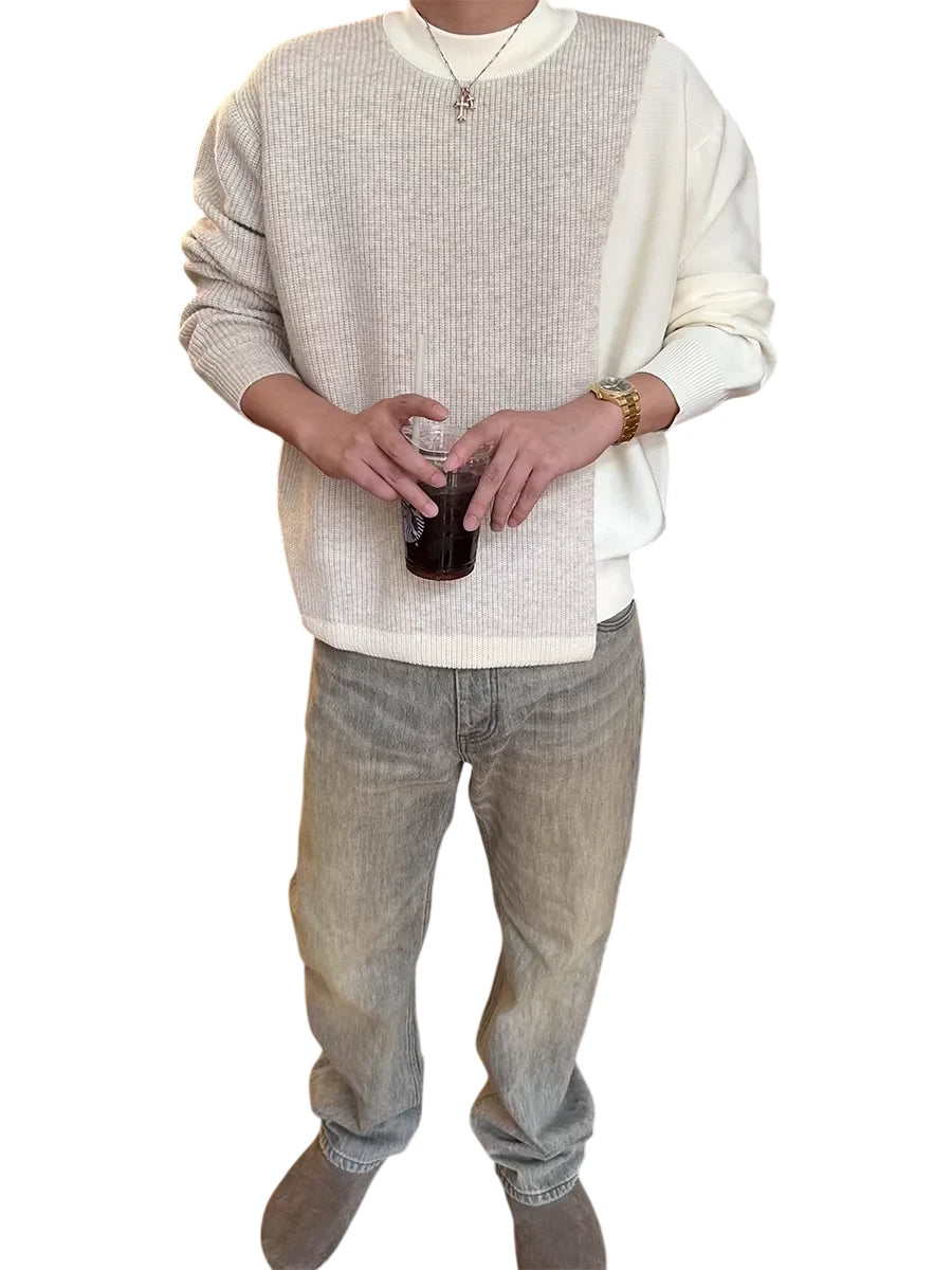 Roolrren homme Minimalist Layered Wool Knit Pullover Sweater