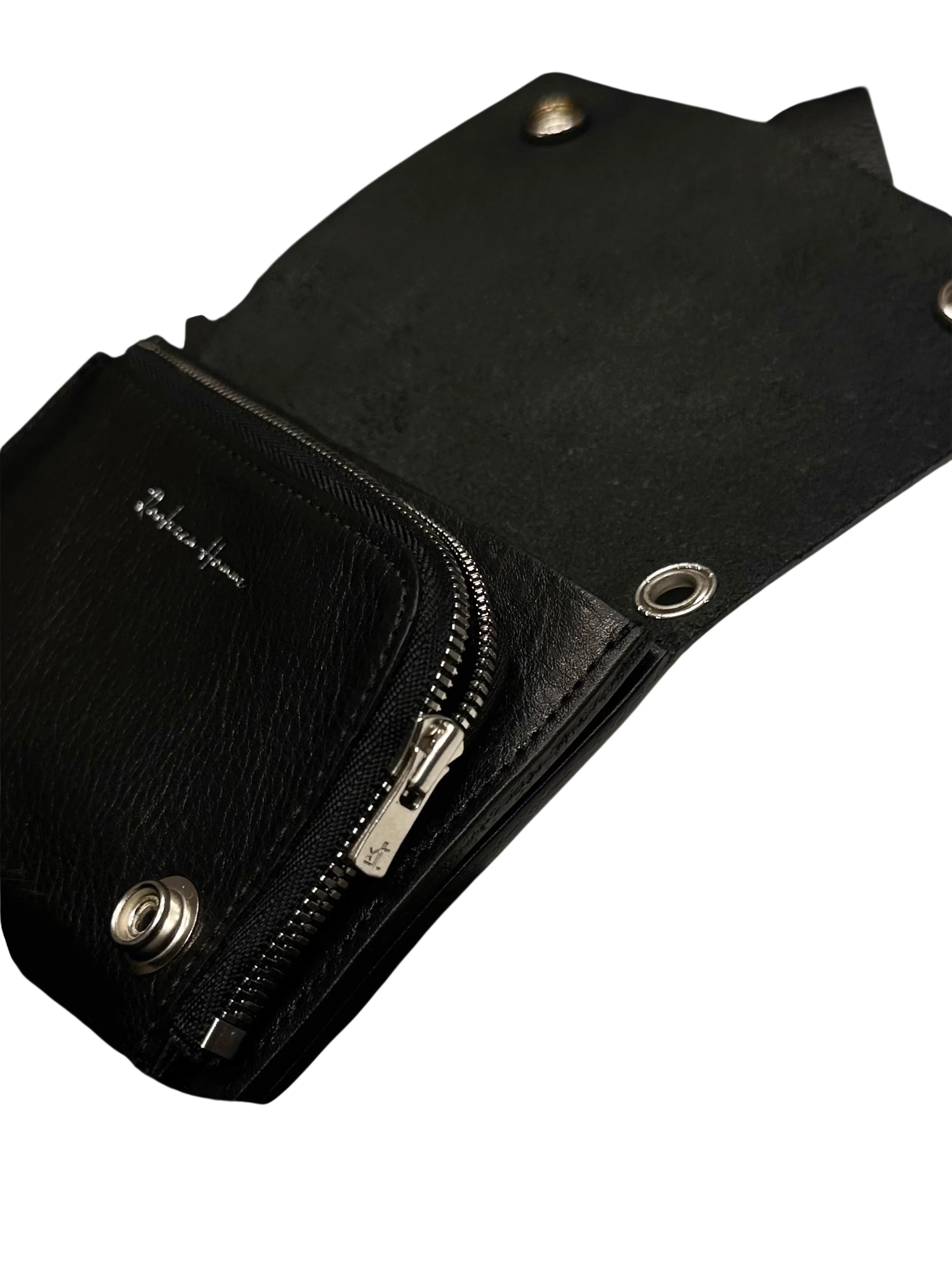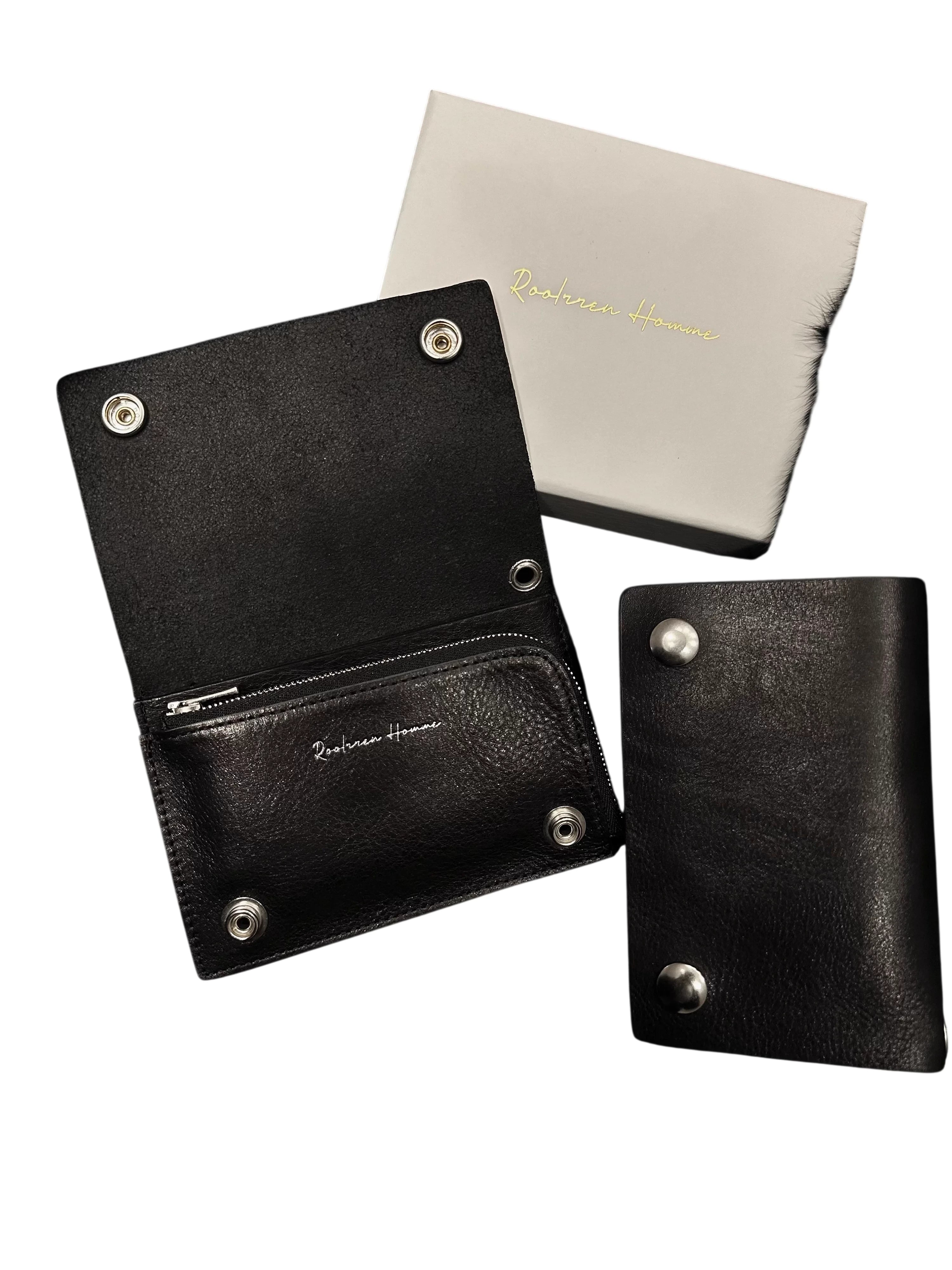 This sleek and compact men's wallet is crafted from top grain vegetable tanned leather, offering a refined vintage appearance. Designed for daily utility, it features a central zippered coin pocket, multiple card slots, and secure metallic snap buttons. The interior showcases a subtle embossed logo for a touch of sophistication, making it a stylish and functional choice for men.