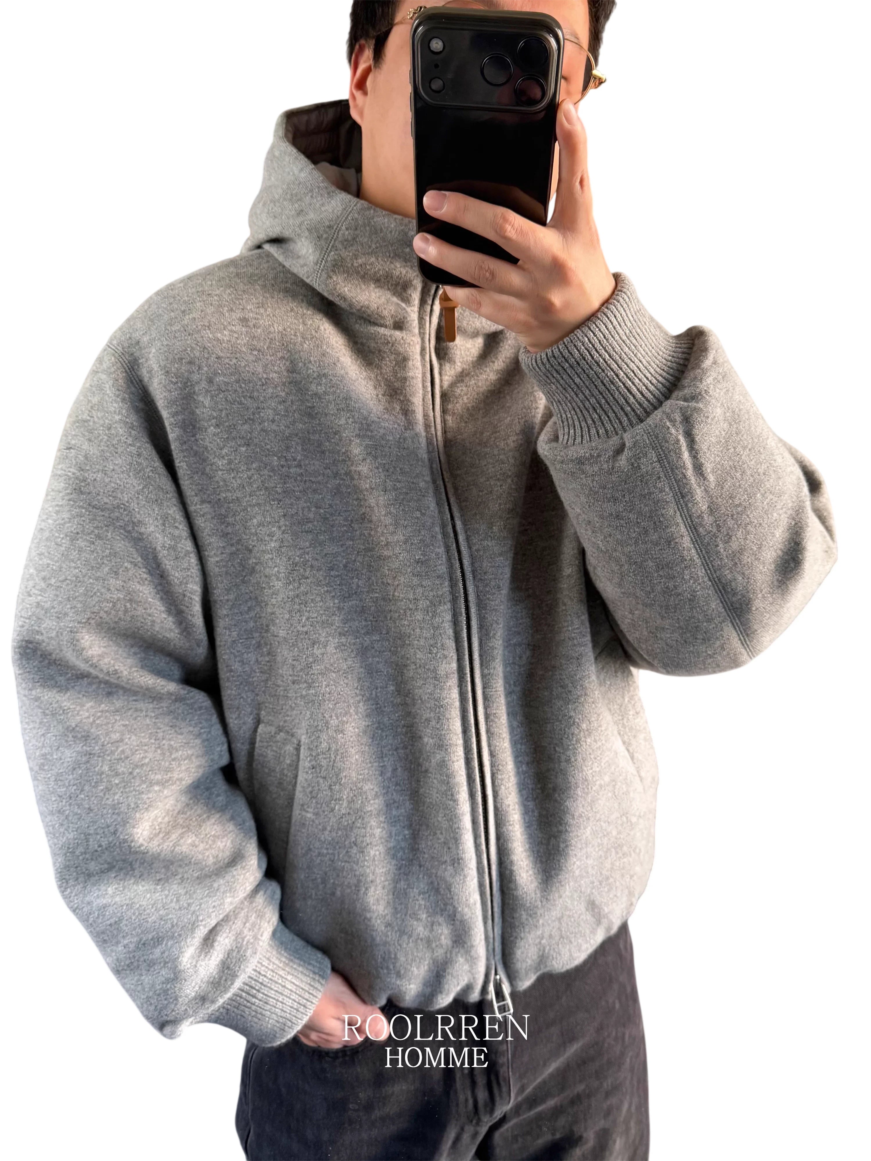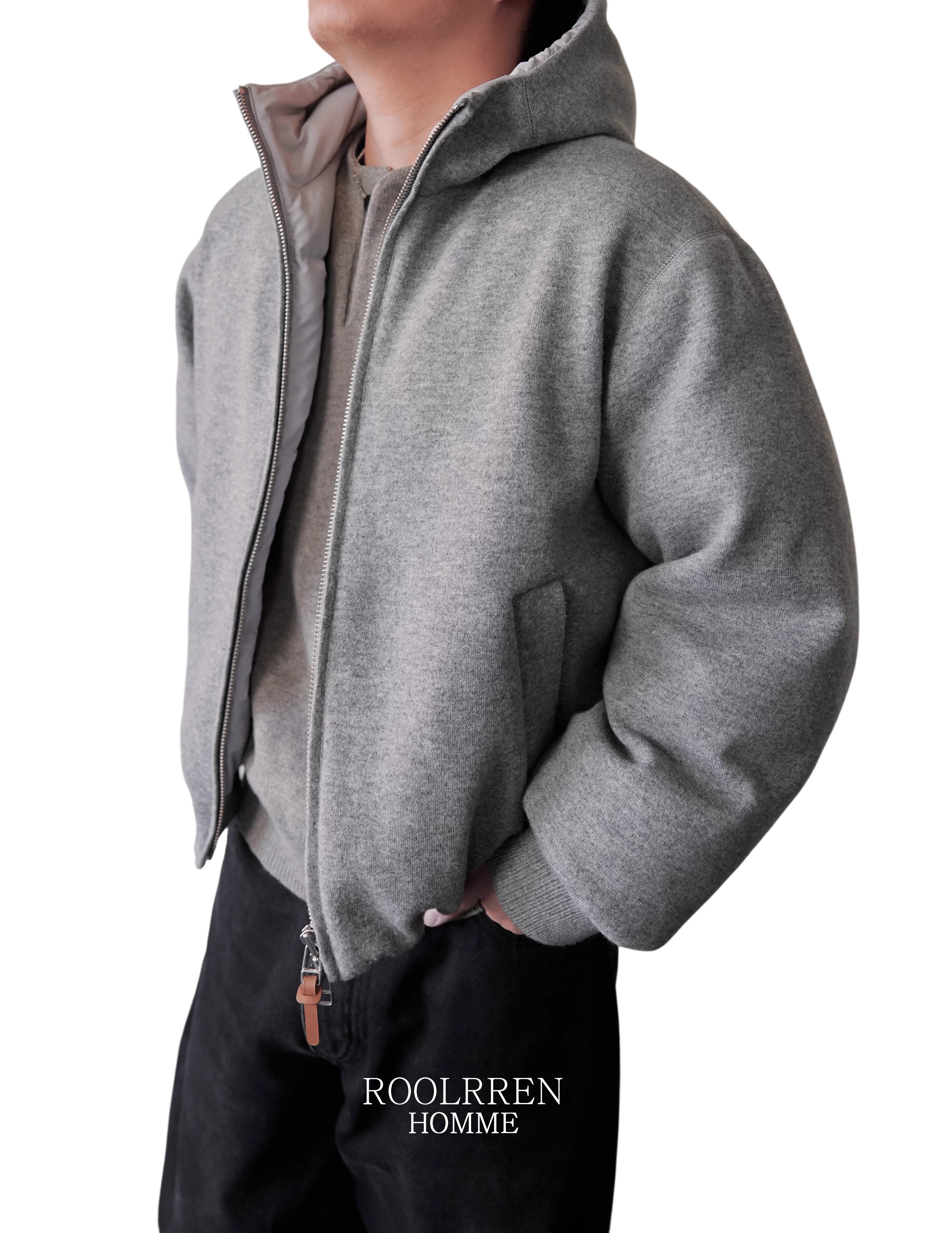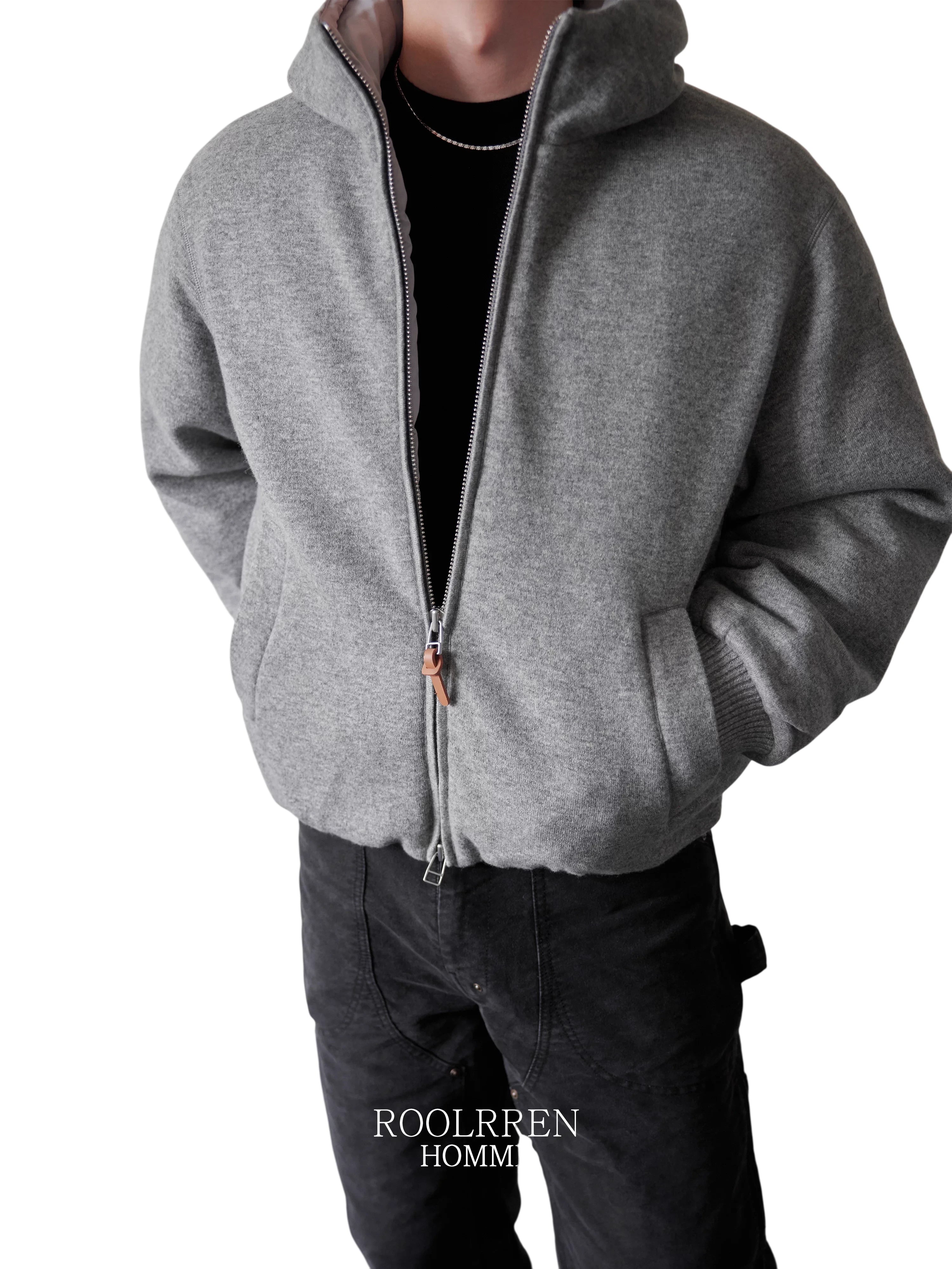 Roolrren homme Men's Extra Fine Wool Button-Up Henley Cardigan