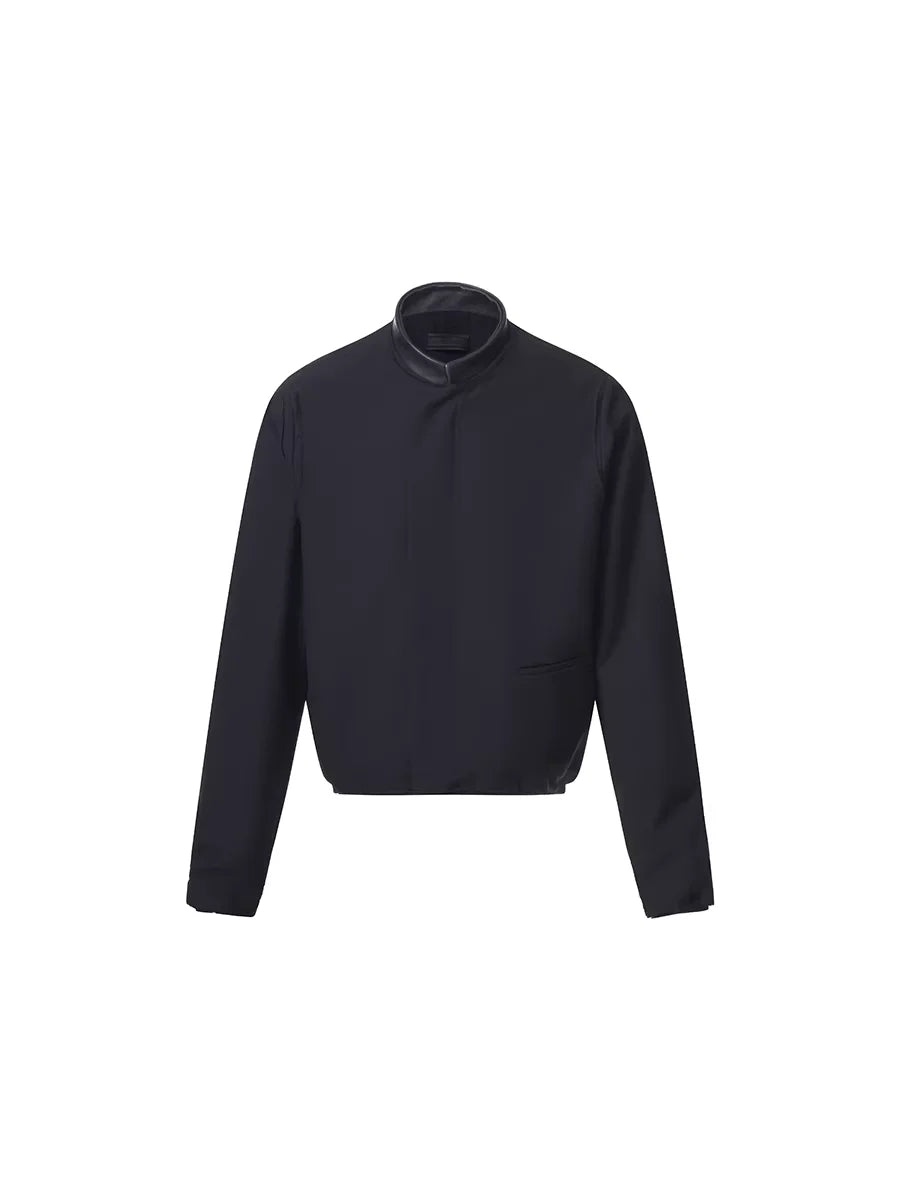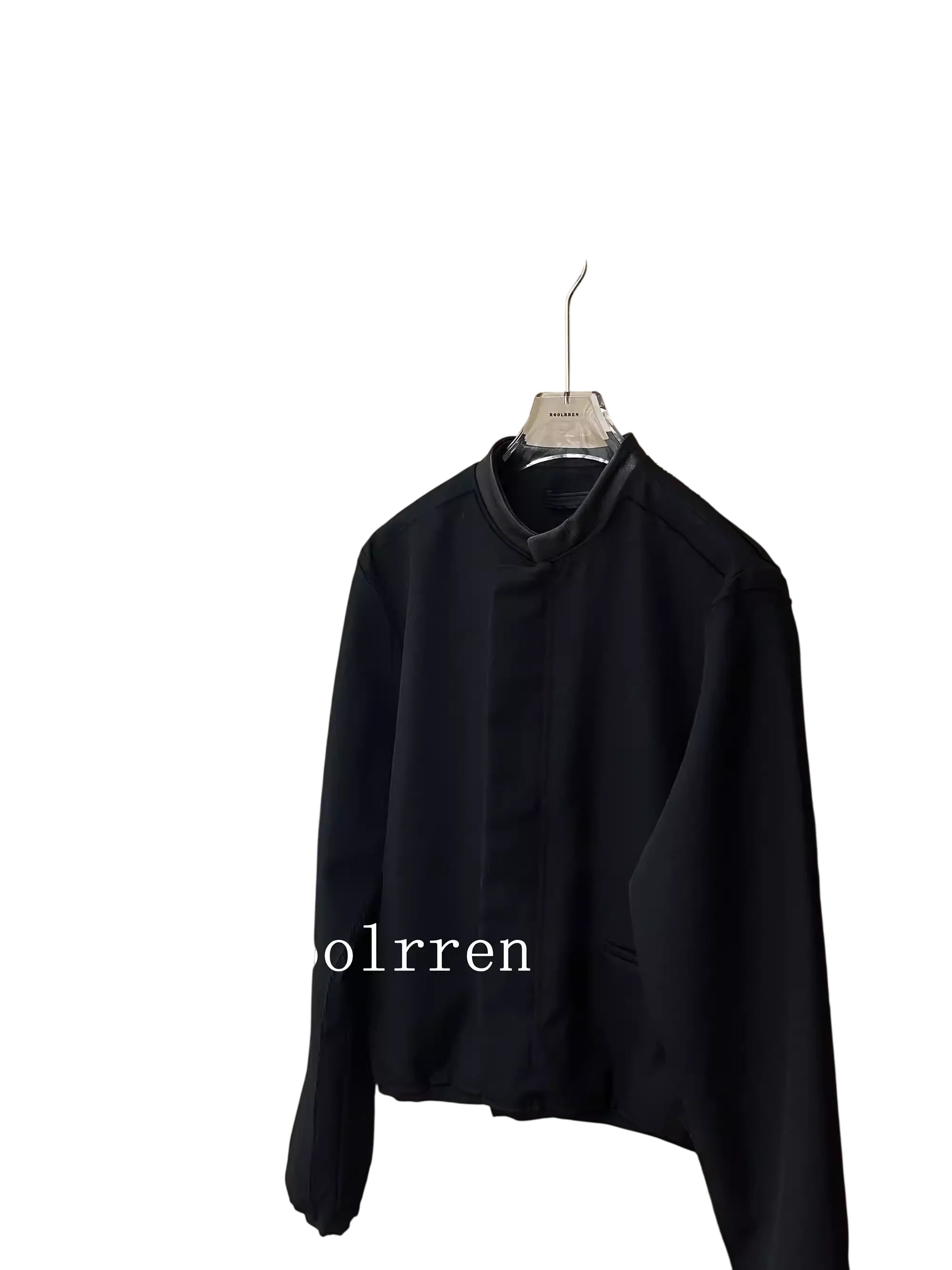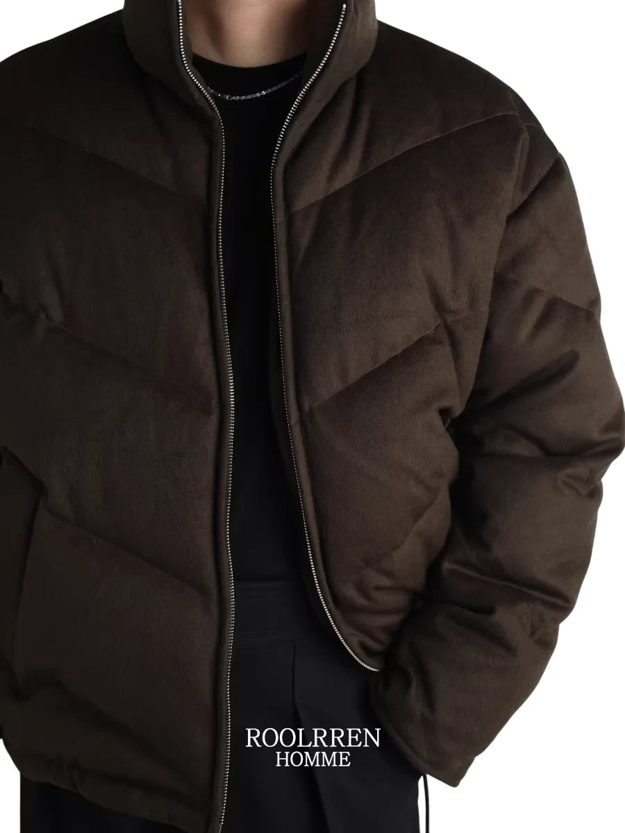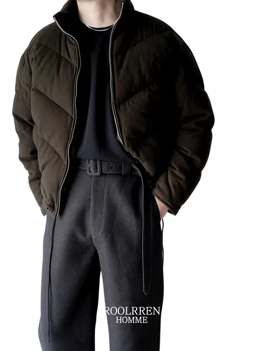 Roolrren homme Men's Sheepskin Leather Jacket with Wool Lining and Turn-Down Collar