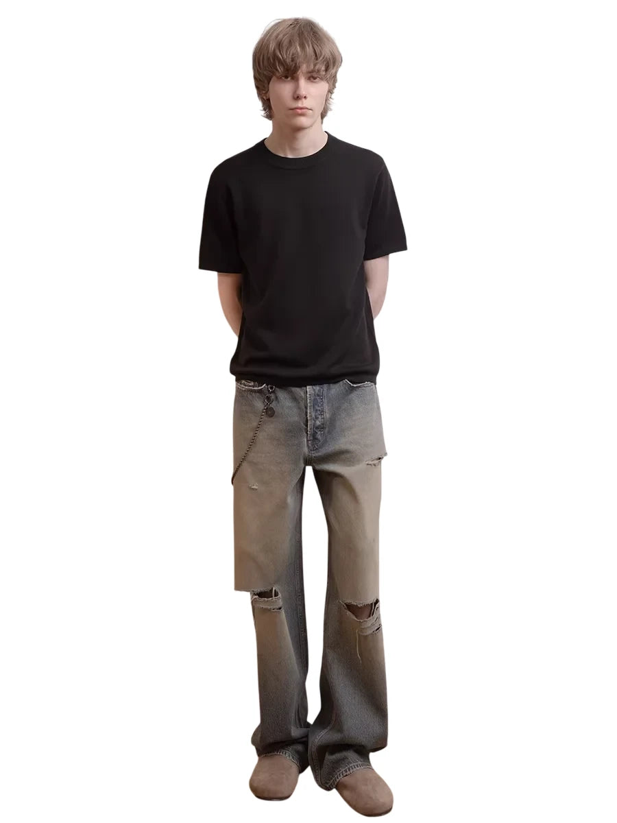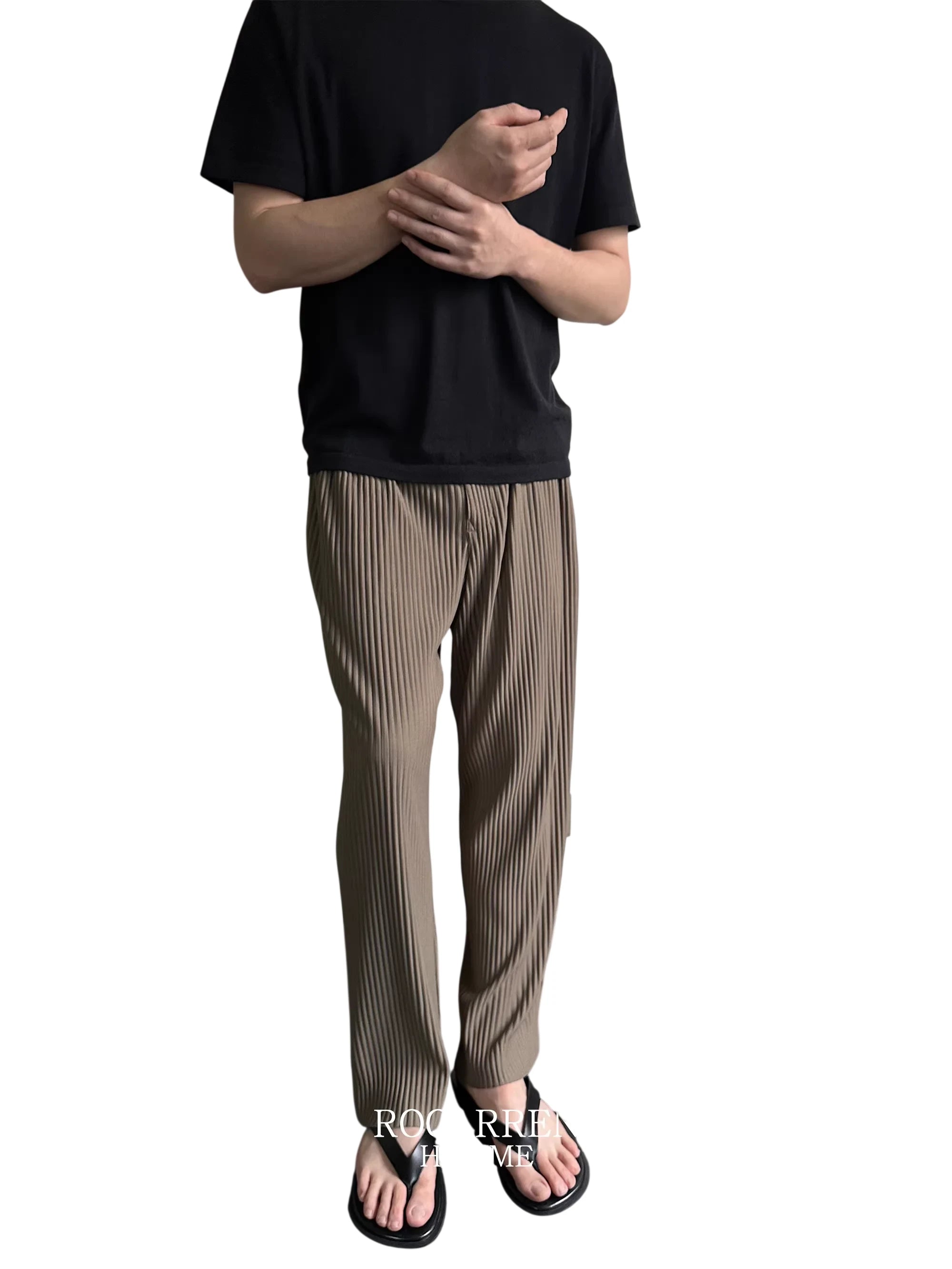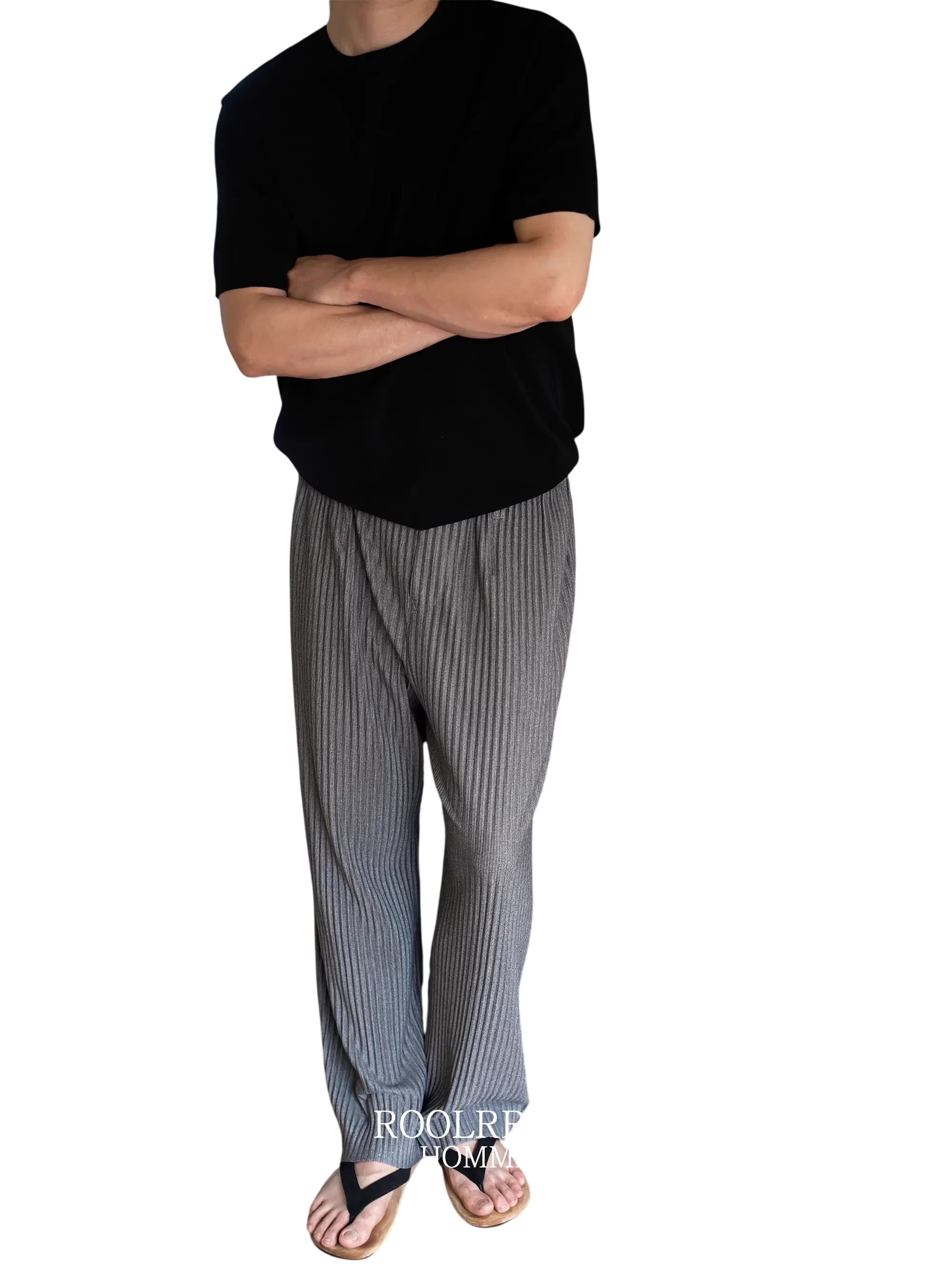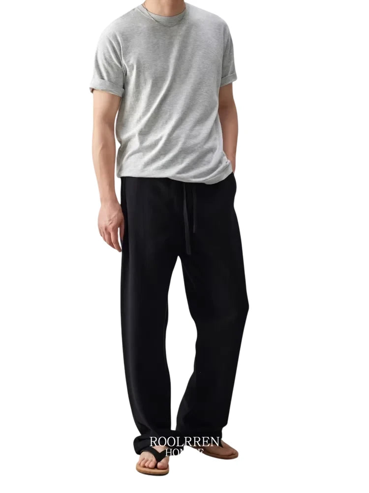 Roolrren homme Men's Pleated Flowing Straight-Leg Pants
