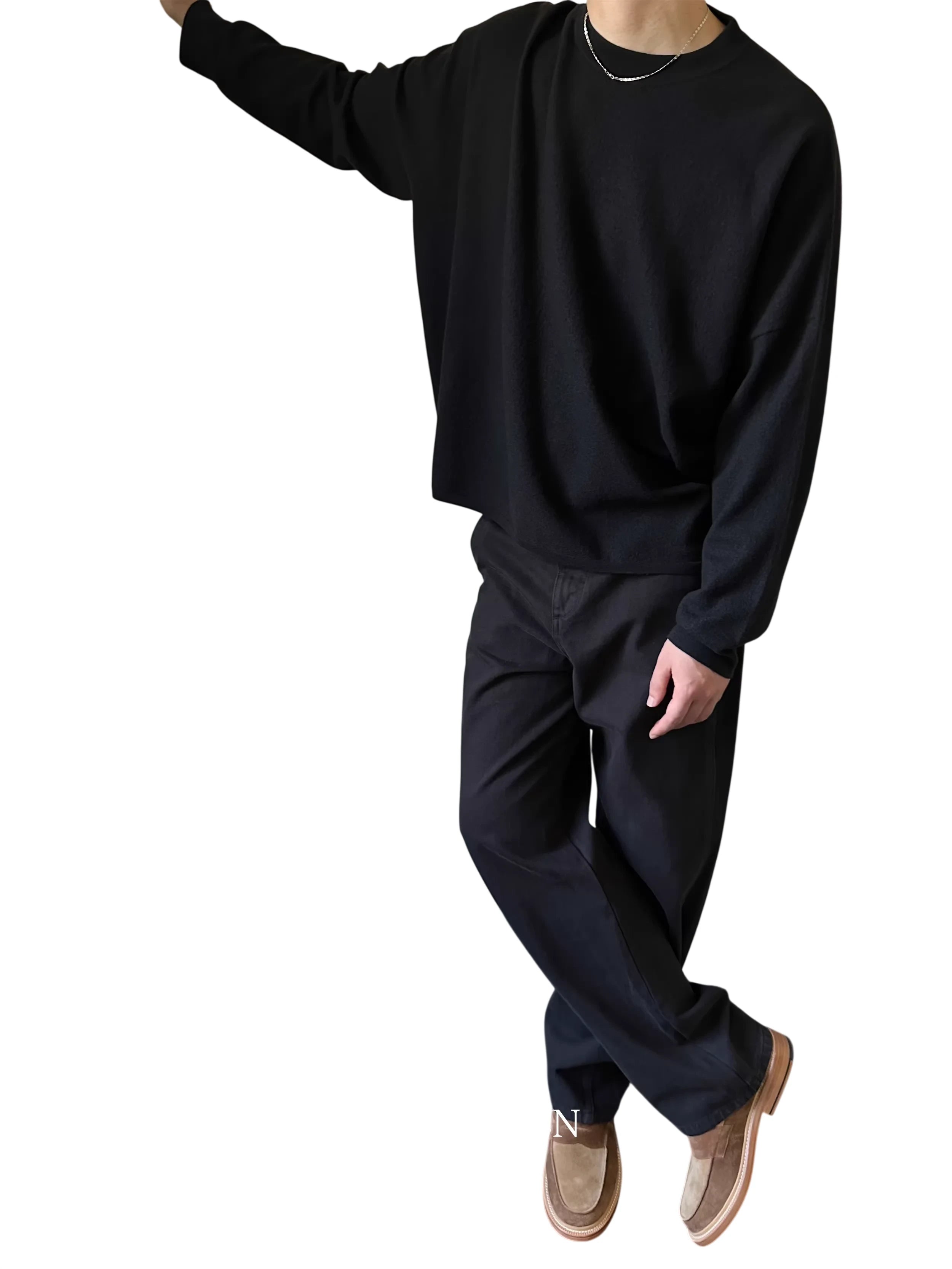 Roolrren homme Men's 100% Wool One-Button Boxy Fit Sweater