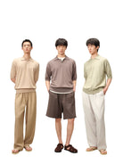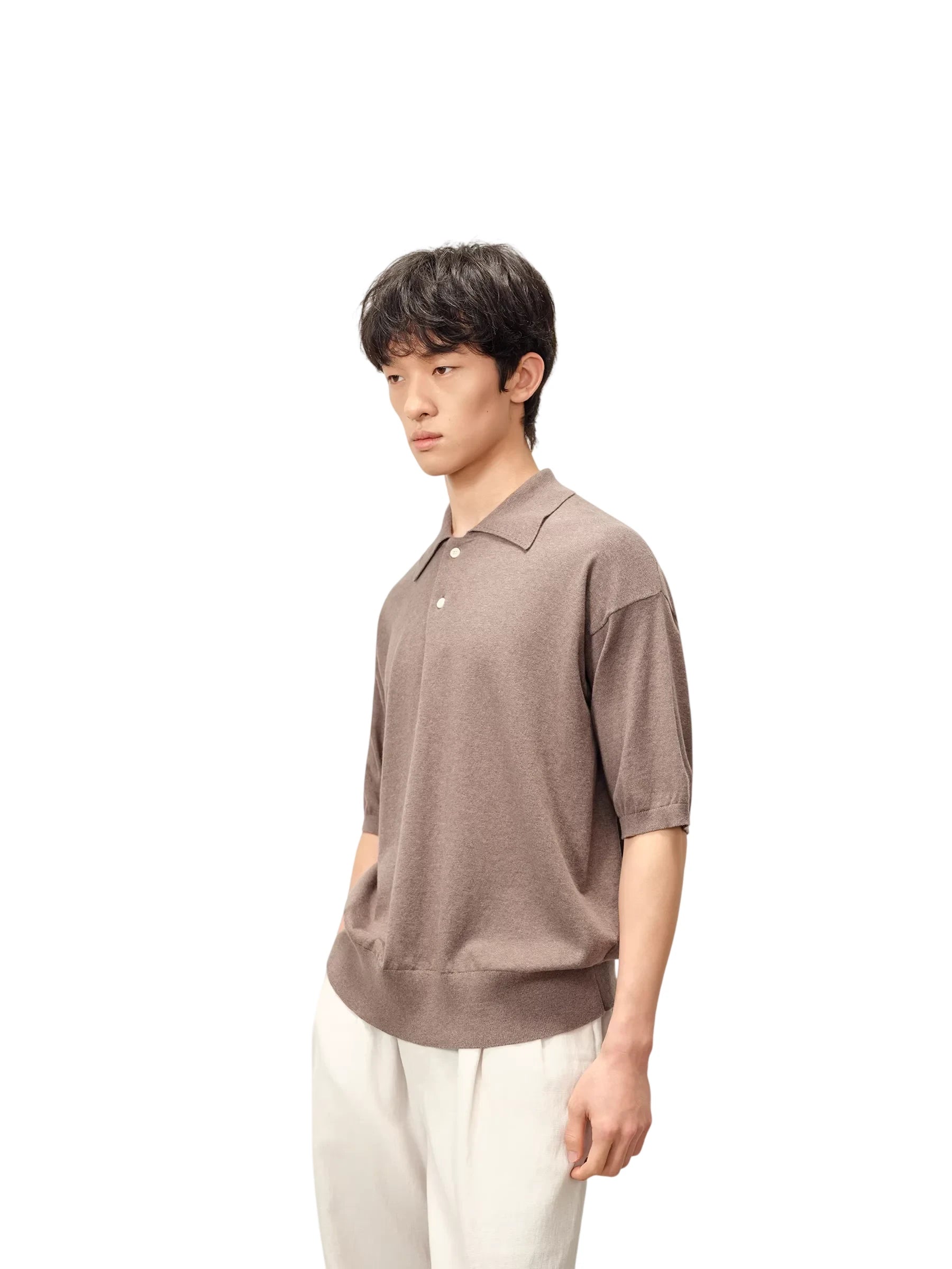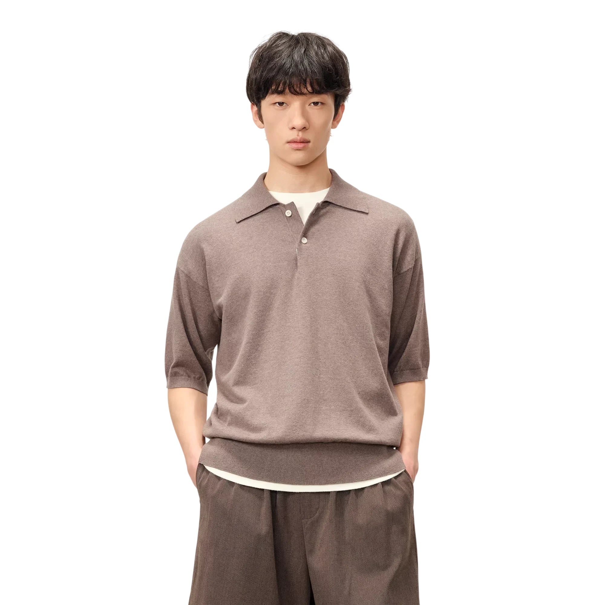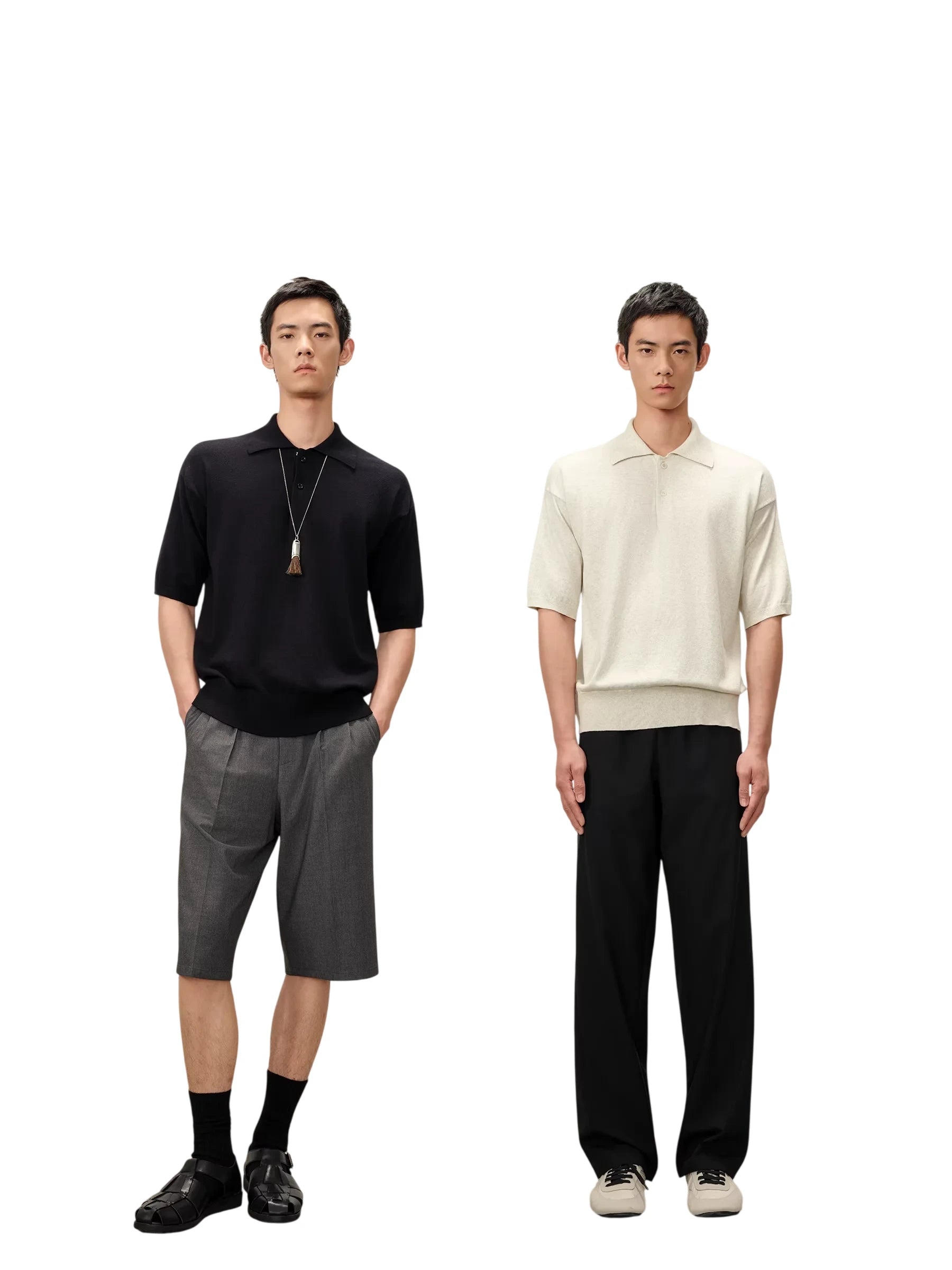 This men's short sleeve polo sweater is crafted from a luxurious cashmere and cotton blend, offering both comfort and style. Featuring a relaxed, loose fit, classic collar, and a three-button placket, it delivers a timeless yet modern look. Ideal for casual wear, it pairs seamlessly with wide-leg trousers or jeans for an effortlessly refined outfit.