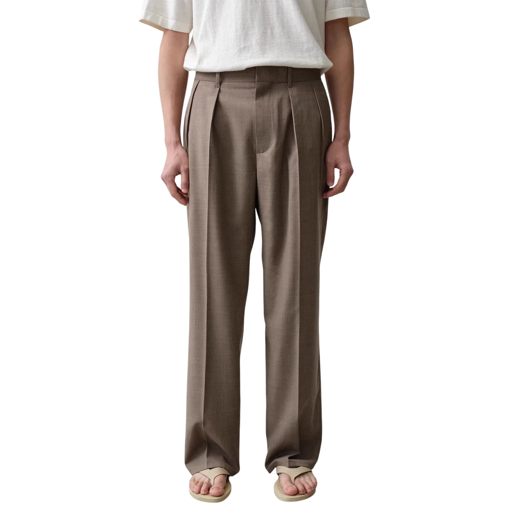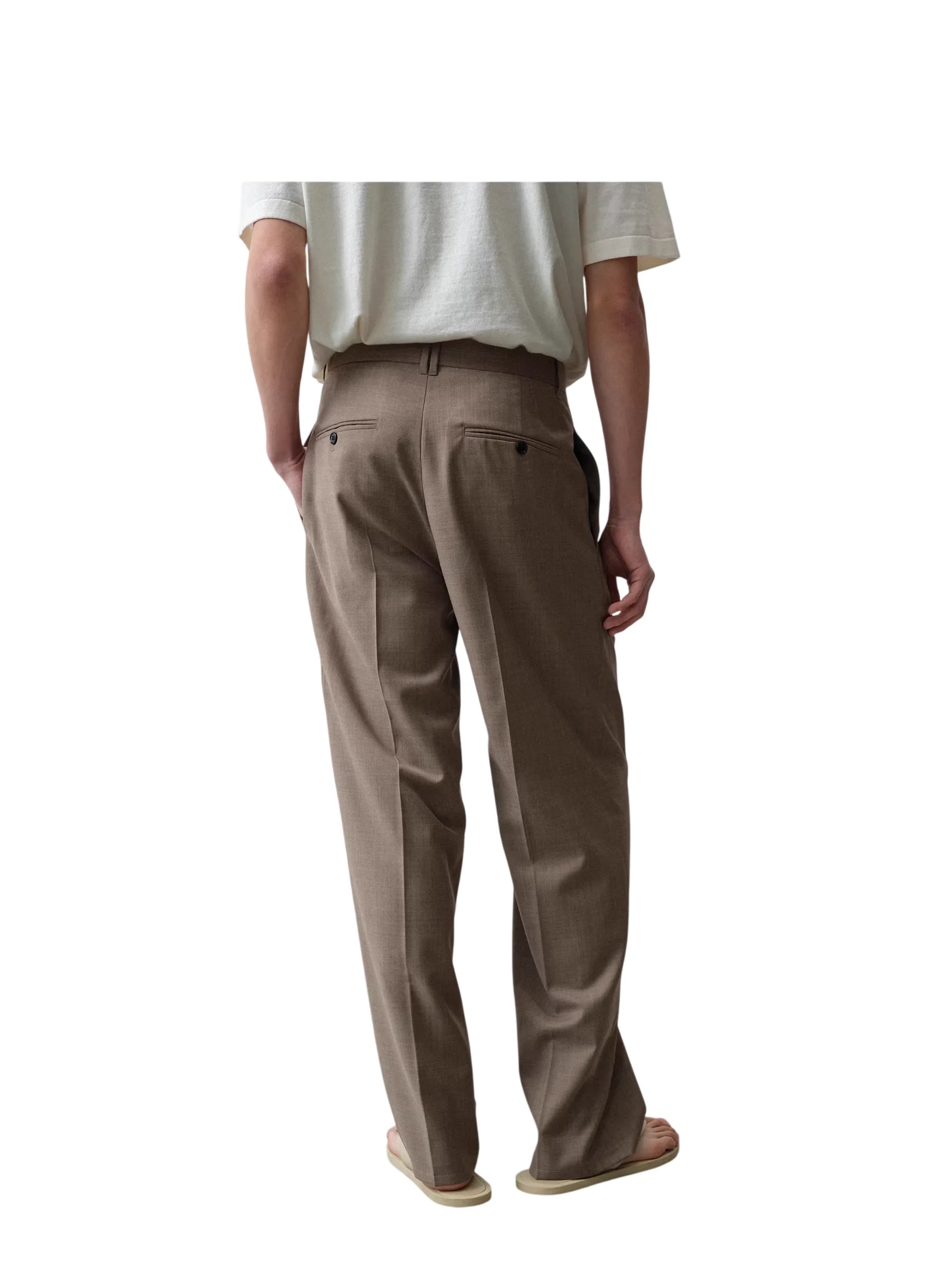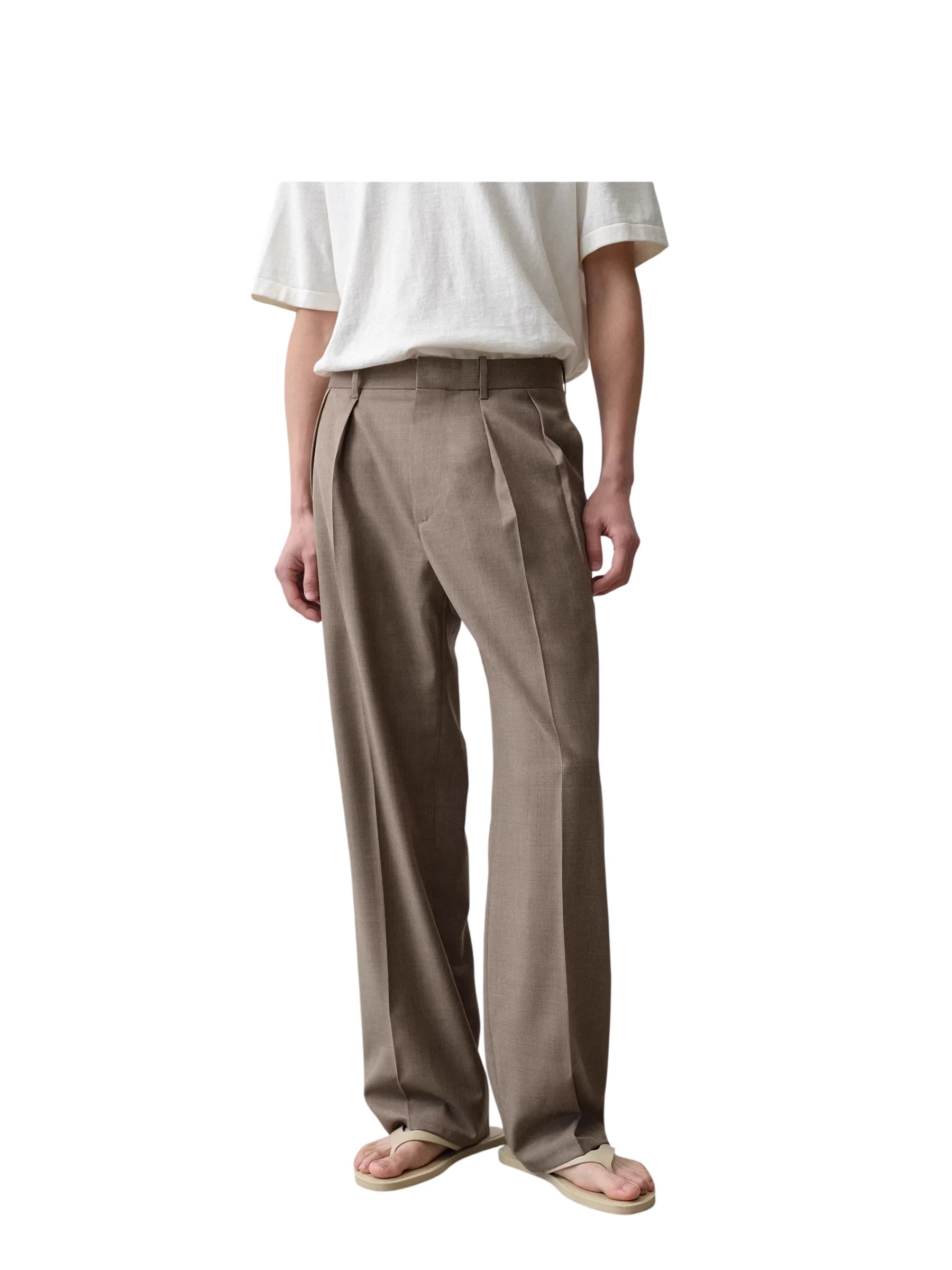 Modeled on a male figure and styled with a tucked-in t-shirt, these trousers balance sophistication and ease, making them a versatile addition to any wardrobe.
