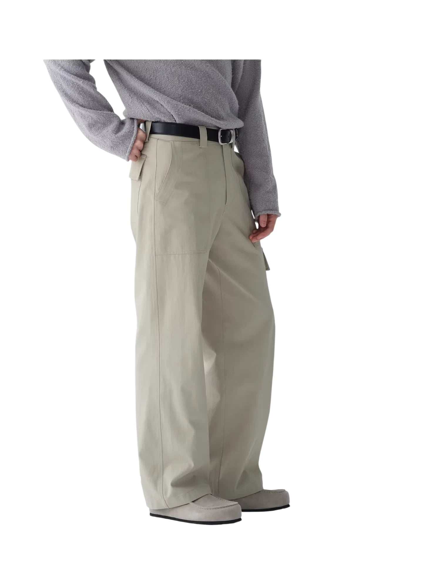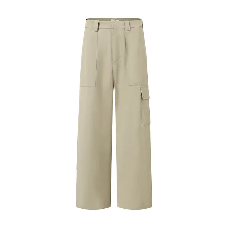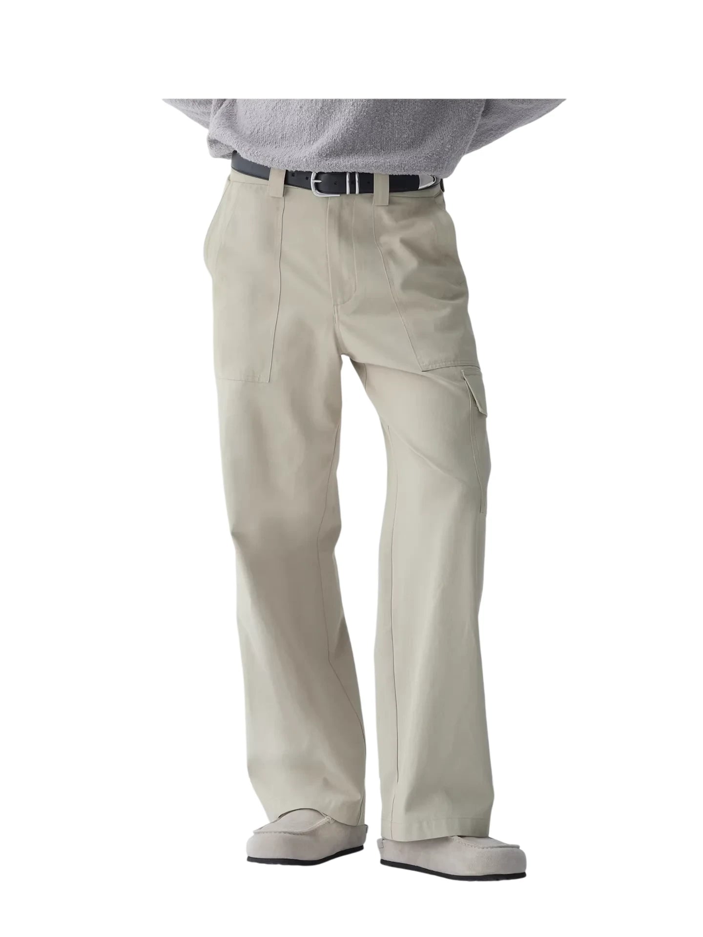Designed for comfort and durability, these men's cargo pants feature a high-twist blend of Xinjiang long-staple cotton and rayon. The straight-leg silhouette, visible stitched paneling, and structured side cargo pocket offer a utilitarian aesthetic ideal for casual or workwear settings. With a relaxed fit, belt loops, and a clean beige tone, these trousers deliver both functionality and style.