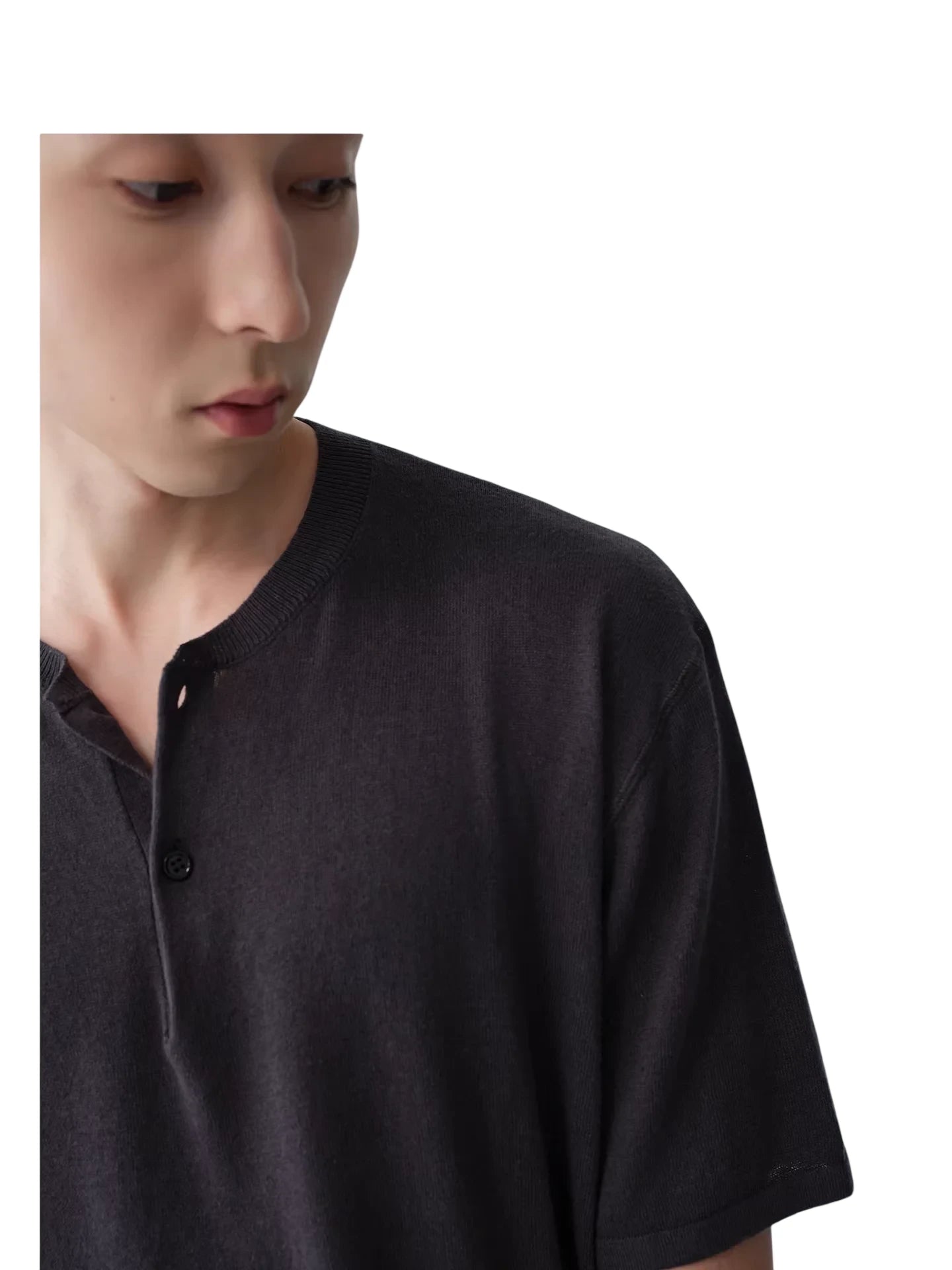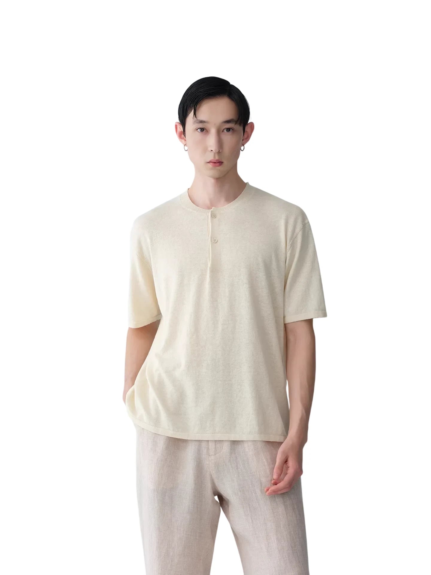 Embrace understated elegance with this men's short sleeve Henley shirt, crafted from a breathable linen-cotton blend. Designed with a soft, textured knit and featuring a classic round neckline and two-button placket, this shirt offers lightweight comfort ideal for warm weather. The relaxed style pairs effortlessly with casual trousers, evoking a southern French coastal vibe with every wear.