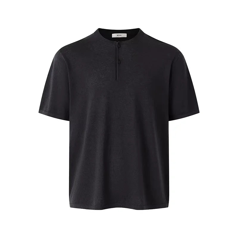 ROYA Linen Cotton Henley Short Sleeve Shirt