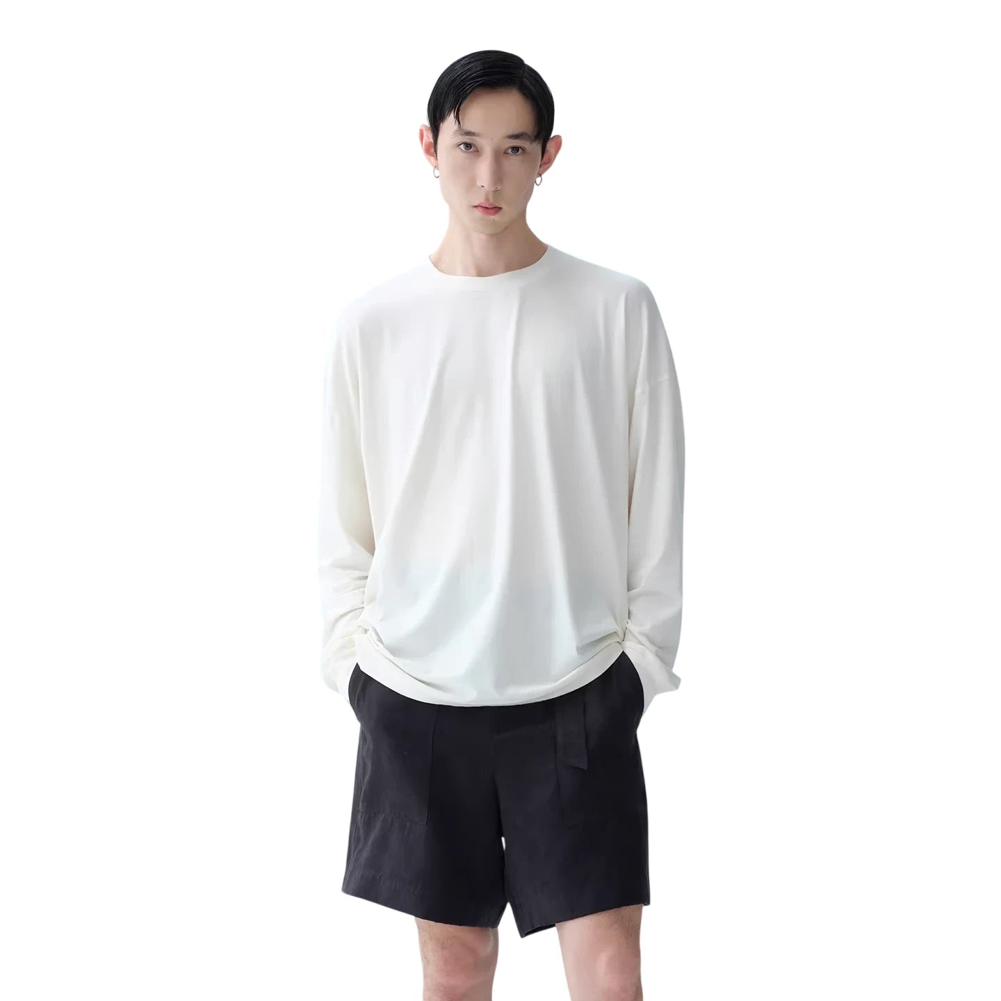 Experience exceptional comfort and breathability with this men's long sleeve base layer shirt. Crafted from a premium blend of Austrian imported Lenzing Tencel Modal and Xinjiang long-staple cotton, this shirt offers a soft, lightweight feel ideal for everyday wear. The clean round neckline and relaxed fit provide a minimalist look that seamlessly complements casual wardrobes.