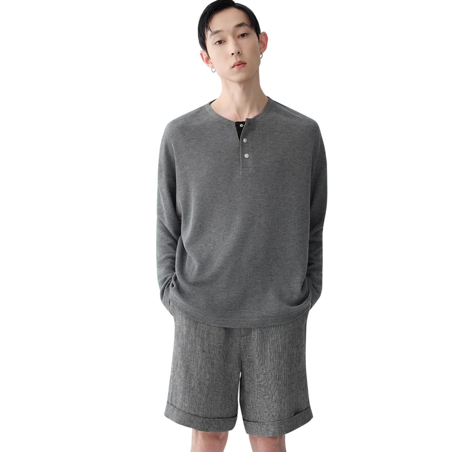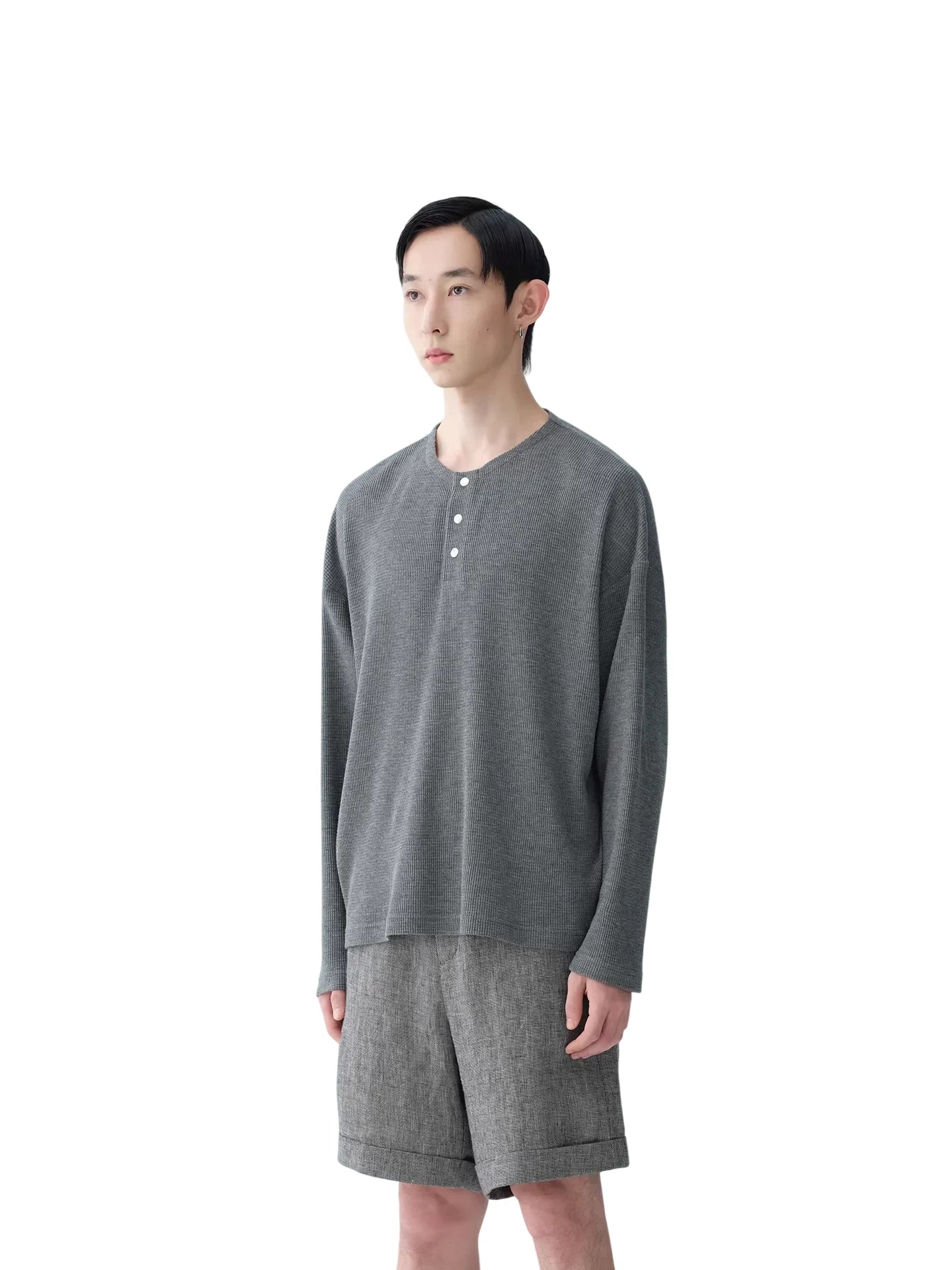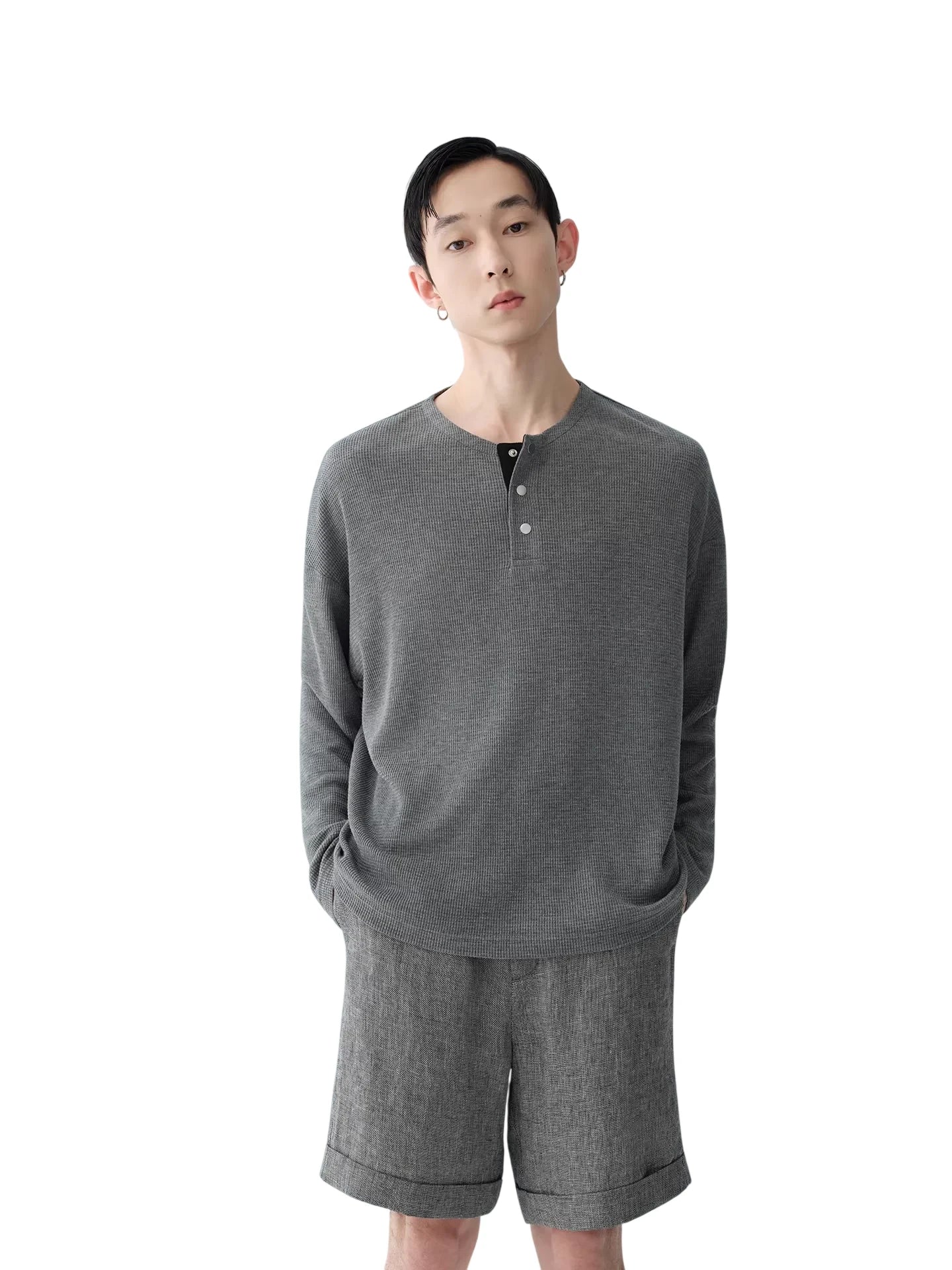 ROYA Men's Tencel Wool Waffle-Knit Henley Long Sleeve