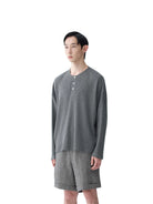 Experience elevated comfort with this men's long sleeve Henley, crafted from a premium blend of Austrian Tencel and Australian wool. Featuring a soft waffle-knit texture and a classic three-button neckline, this top is designed for casual lounging or laid-back days. The relaxed fit and breathable fabric provide all-day ease, making it a versatile addition to your wardrobe.