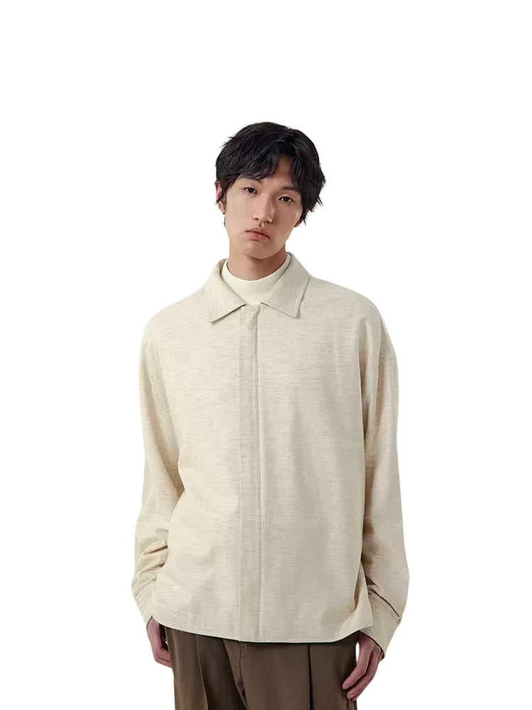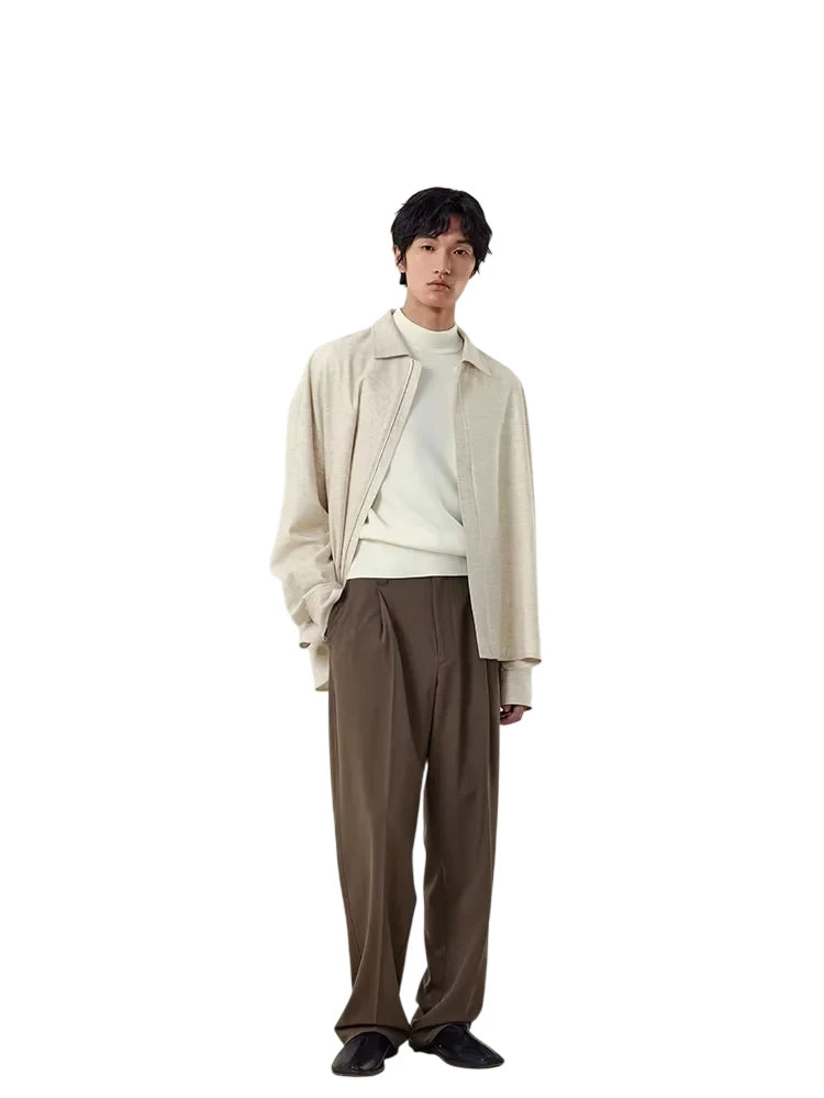 This men's oversized shirt jacket is crafted from a soft blend of linen, cotton, and viscose, offering both comfort and breathability. Featuring a minimalist design with a pointed collar and front zipper, it provides a modern and relaxed silhouette. Ideal as a light outer layer, this piece pairs effortlessly with casual or smart-casual ensembles for a clean, contemporary look.