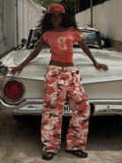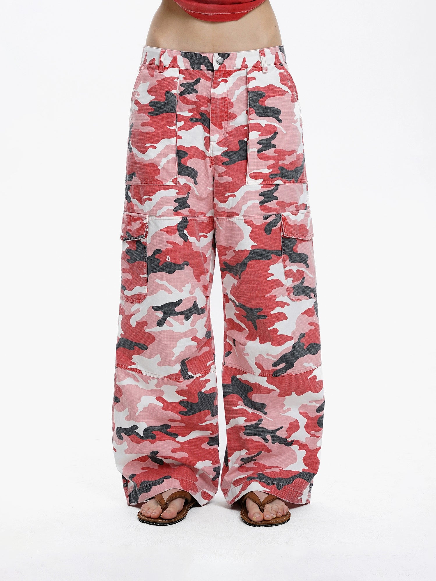 Crafted from 100% cotton, these trousers feature a striking red camouflage pattern that stands out while ensuring breathability for all-day wear.
