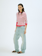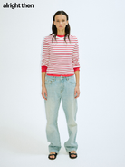 Step into style with the Alright Then 1025L Light Blue Bare Ear Jeans, crafted with vintage fabric for a classic yet trendy look. These jeans feature a low rise and straight-leg design, offering a flattering fit that complements any outfit.