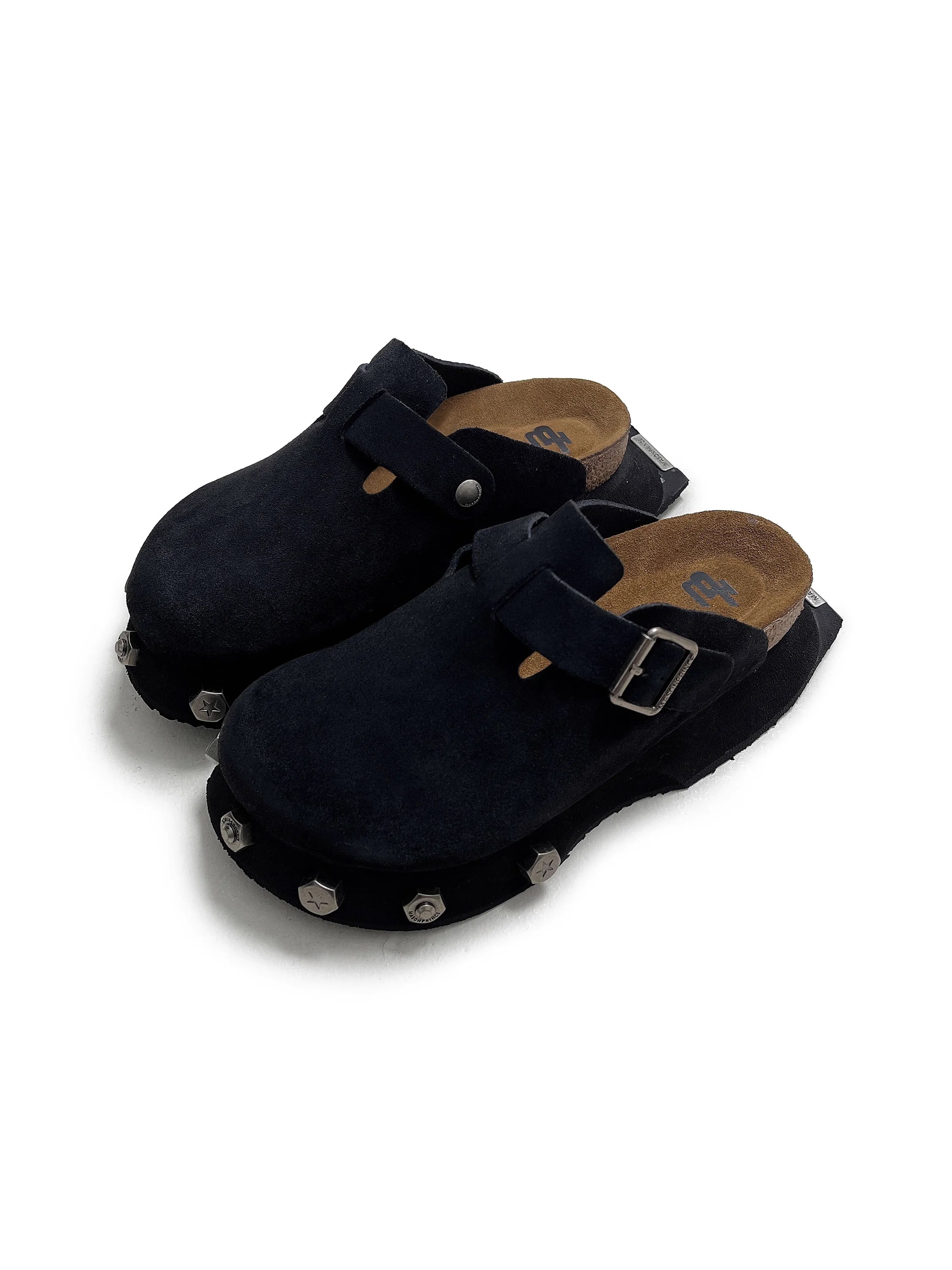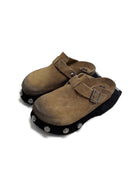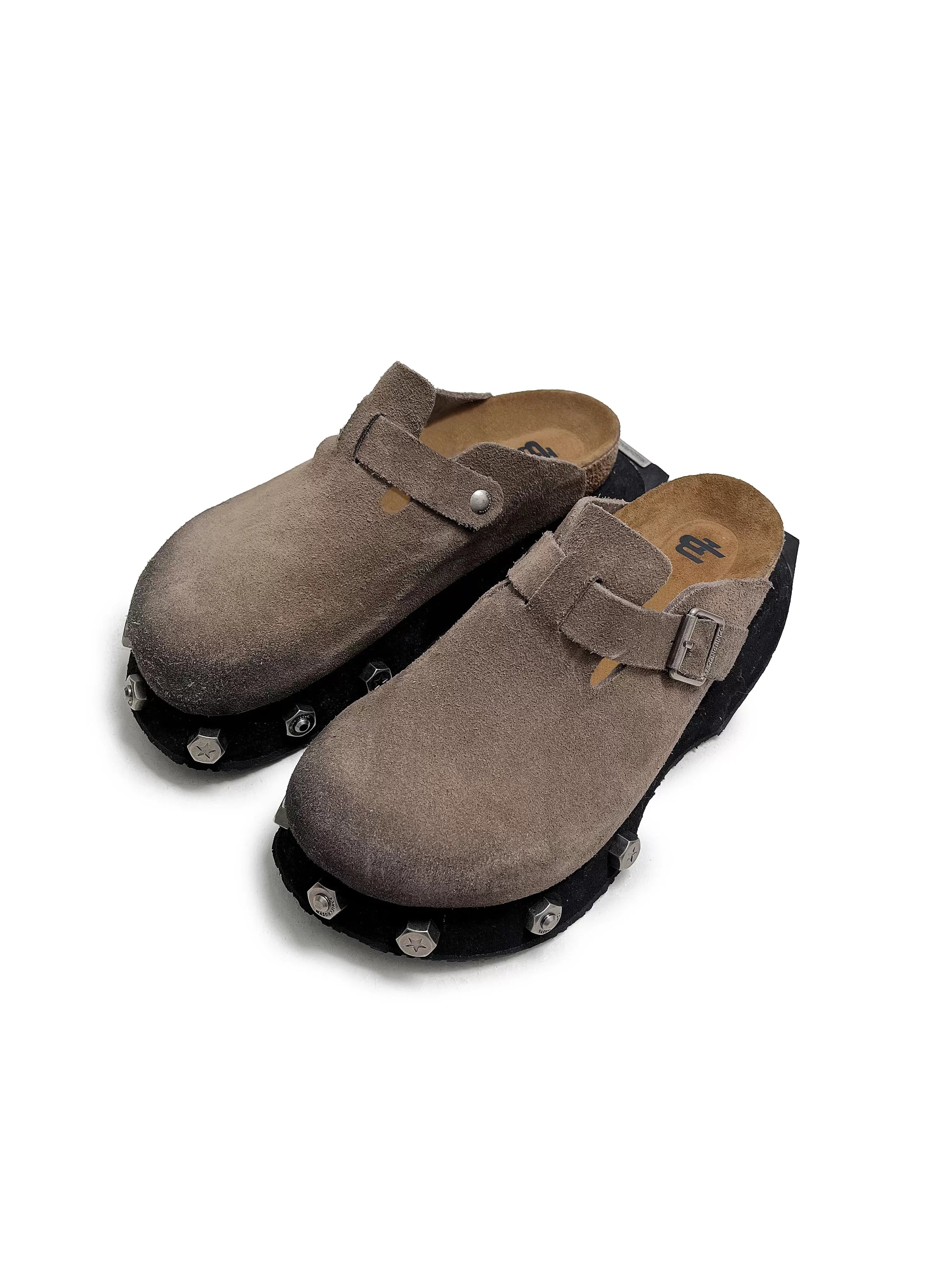 Step into comfort and style with these men's suede chunky platform clog slippers. Designed for year-round wear, these versatile clogs feature a rugged, thick sole that provides exceptional support and a touch of modern edge. The suede upper brings a refined look, while the slip-on design with an adjustable strap ensures a secure and personalized fit. Accented with metallic rivets along the sole's edge, these clogs are ideal for casual outdoor settings and offer both durability and everyday appeal. Perfect for any season, elevate your footwear collection with these stylish and practical clog slippers.