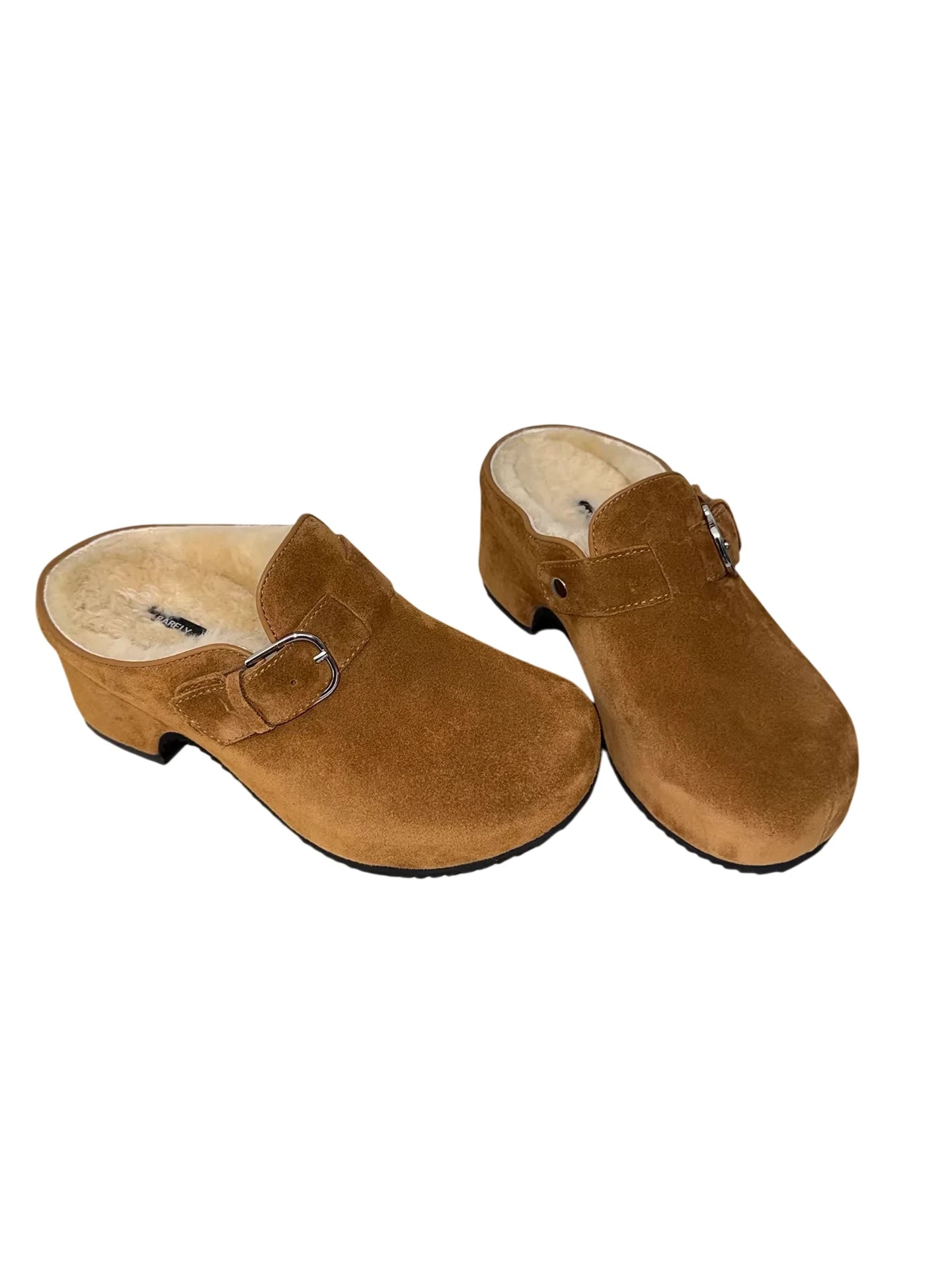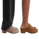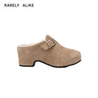RARELY ALIKE Buckle Platform Suede Mules - Grey, Khaki, Black