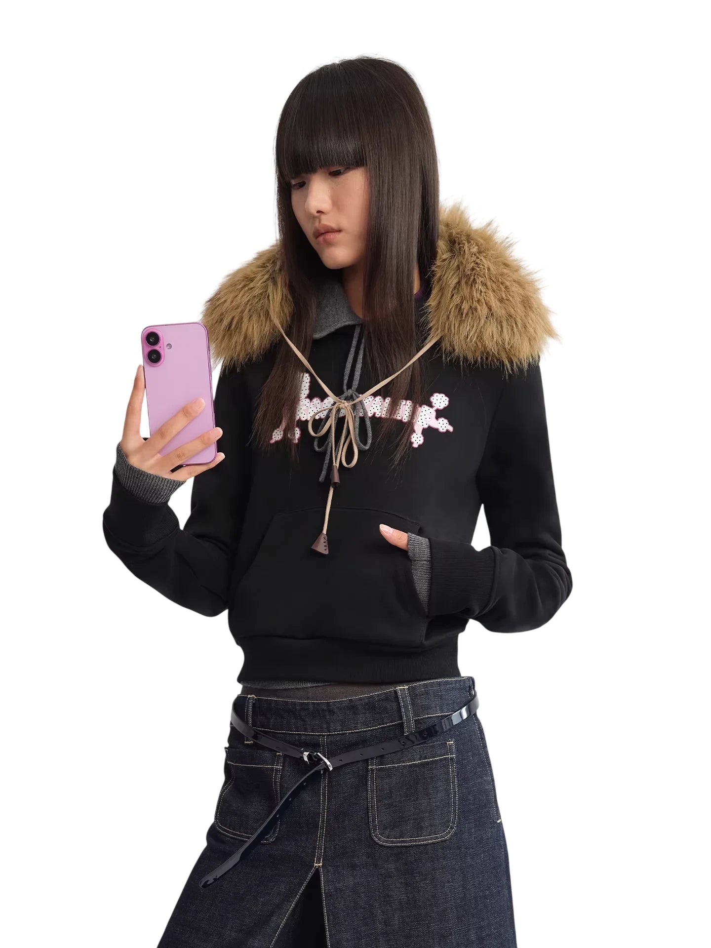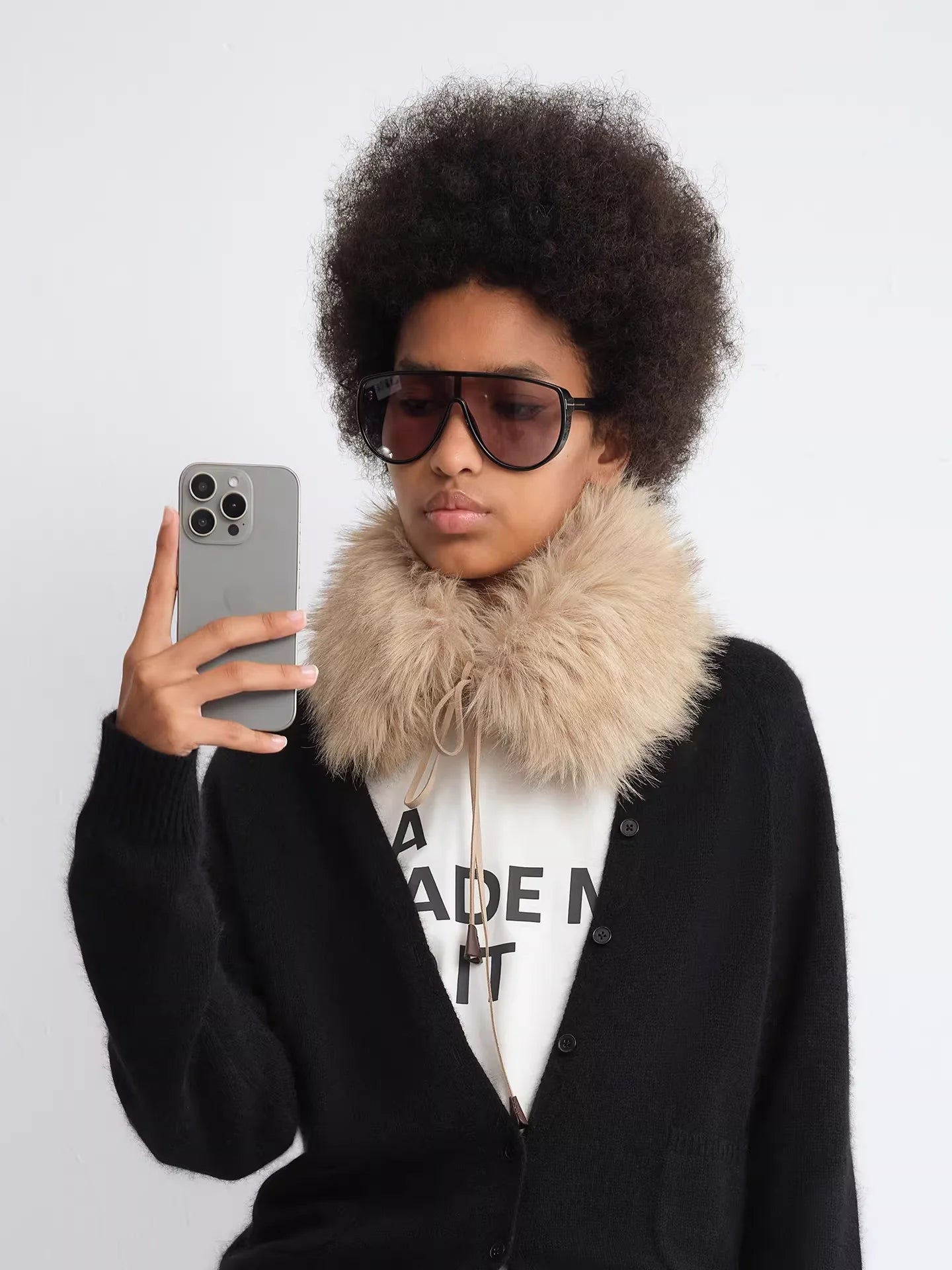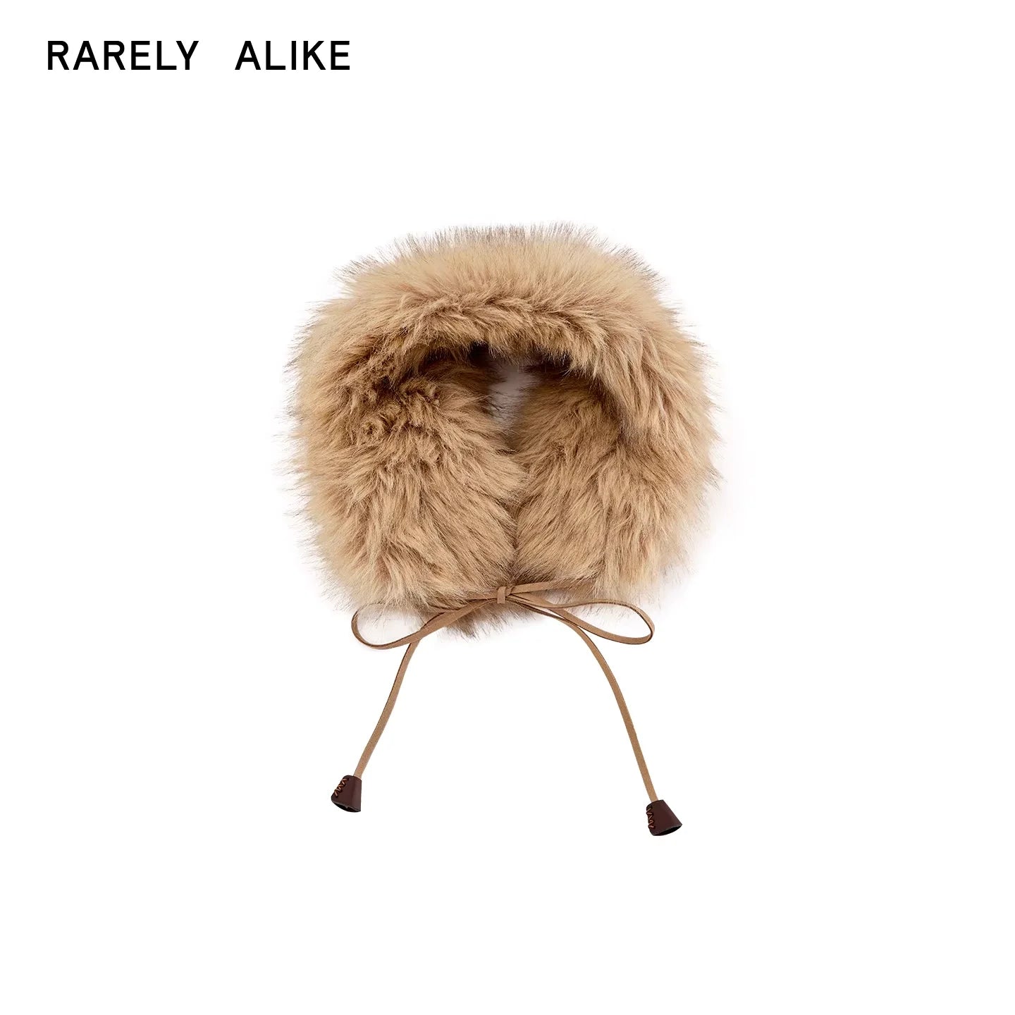 RARELY ALIKE Two-Way Lace-Up Faux Fur Neck Warmer - Beige/Khaki