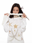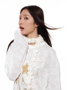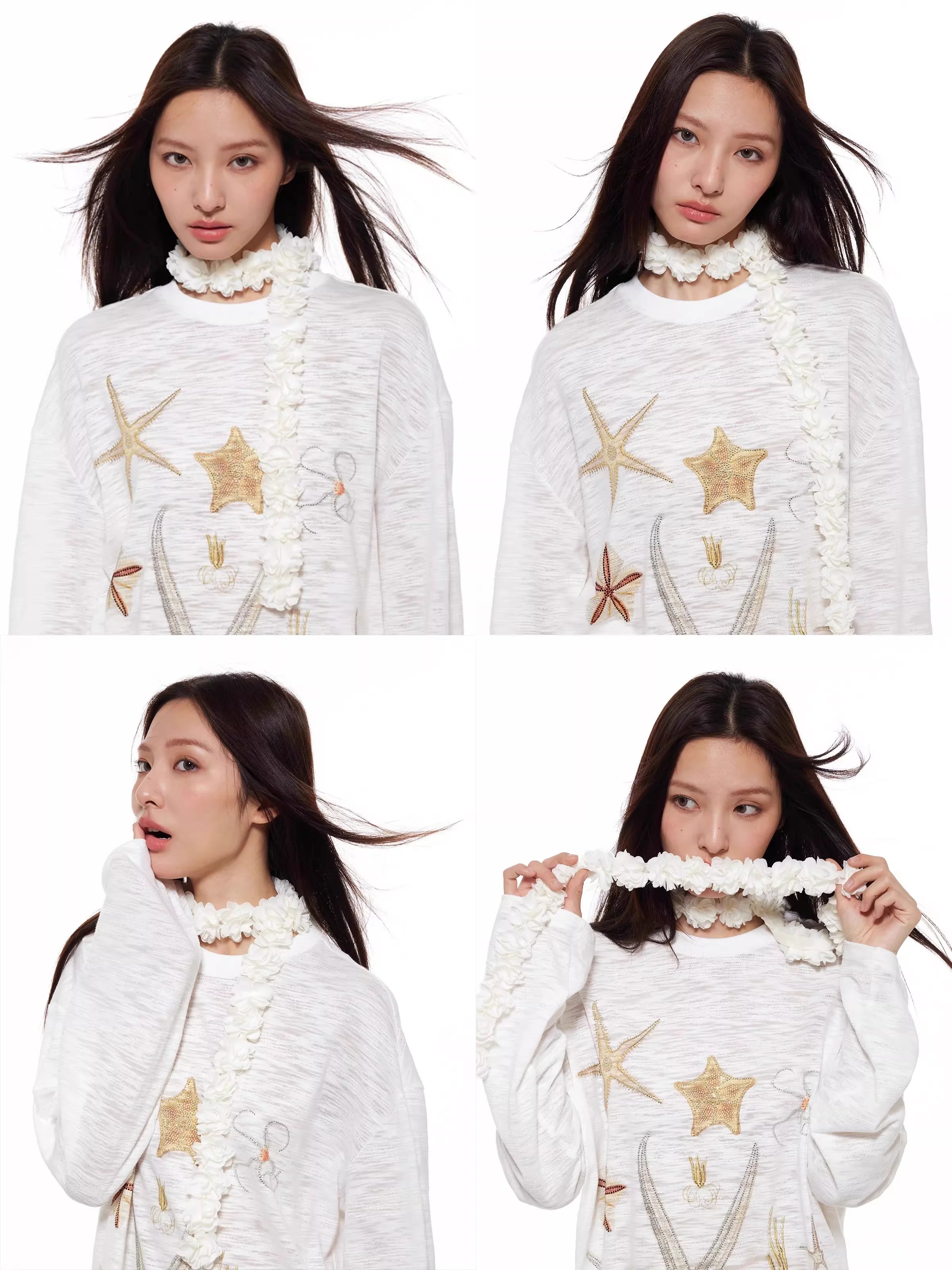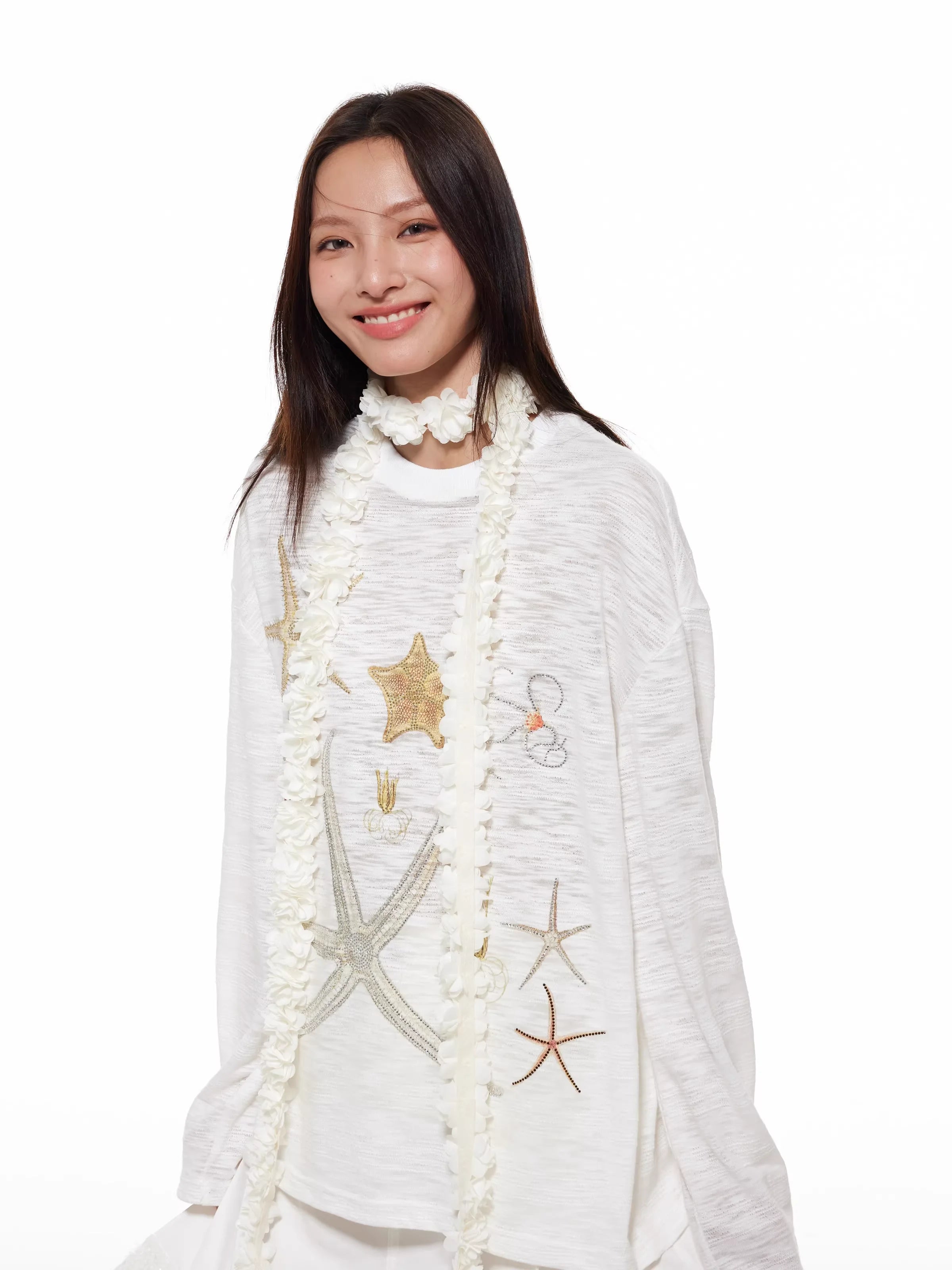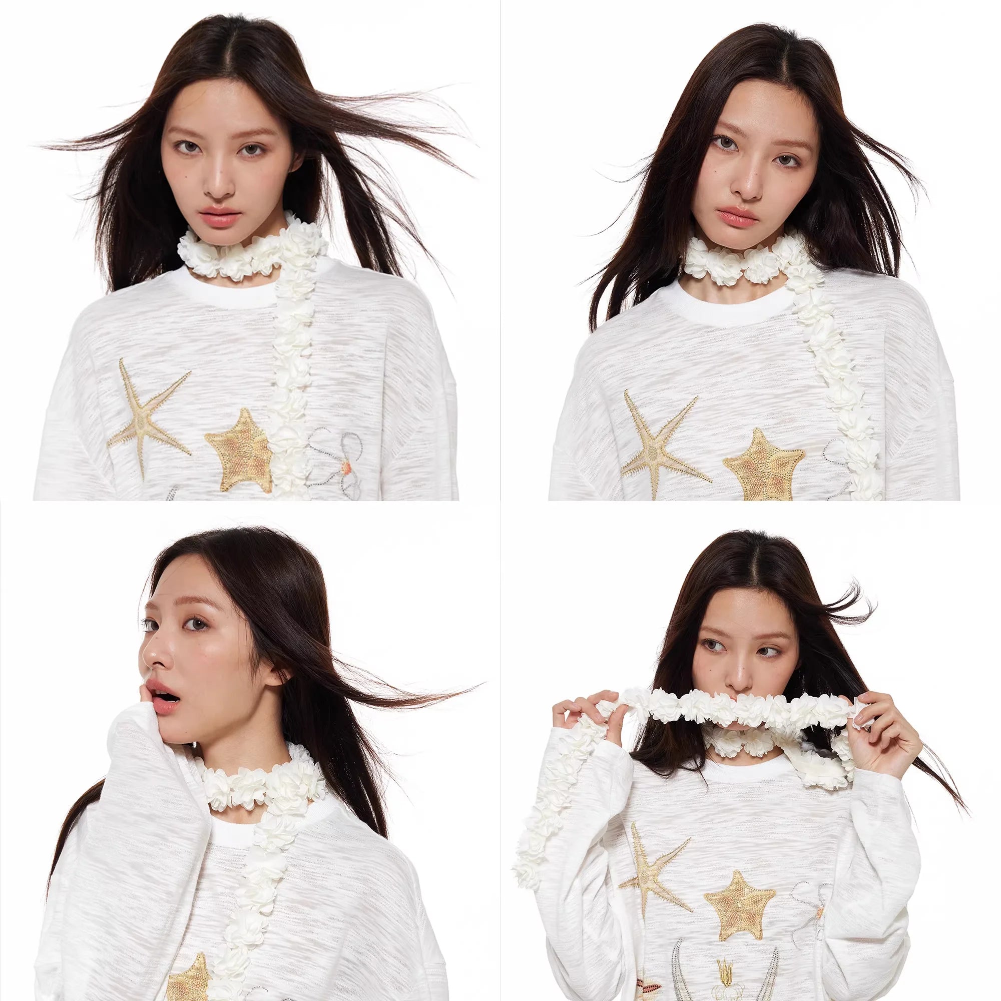 Elevate your look with this elegant three-dimensional floral scarf designed for women. Styled in a romantic French fashion, the scarf features delicate faux blossoms arranged in a garland pattern that wraps around the neck and drapes to one side. Perfect for adding a whimsical, decorative flair to any outfit, this accessory pairs beautifully with casual or dressy attire.